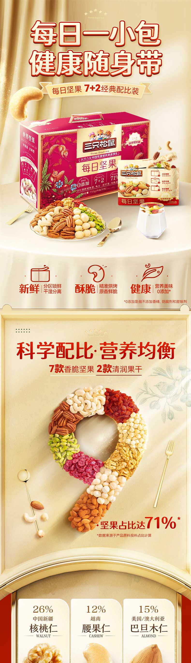 三只松鼠每日坚果750g/30袋 健康混合干果果仁零食礼盒 26年6.21到期