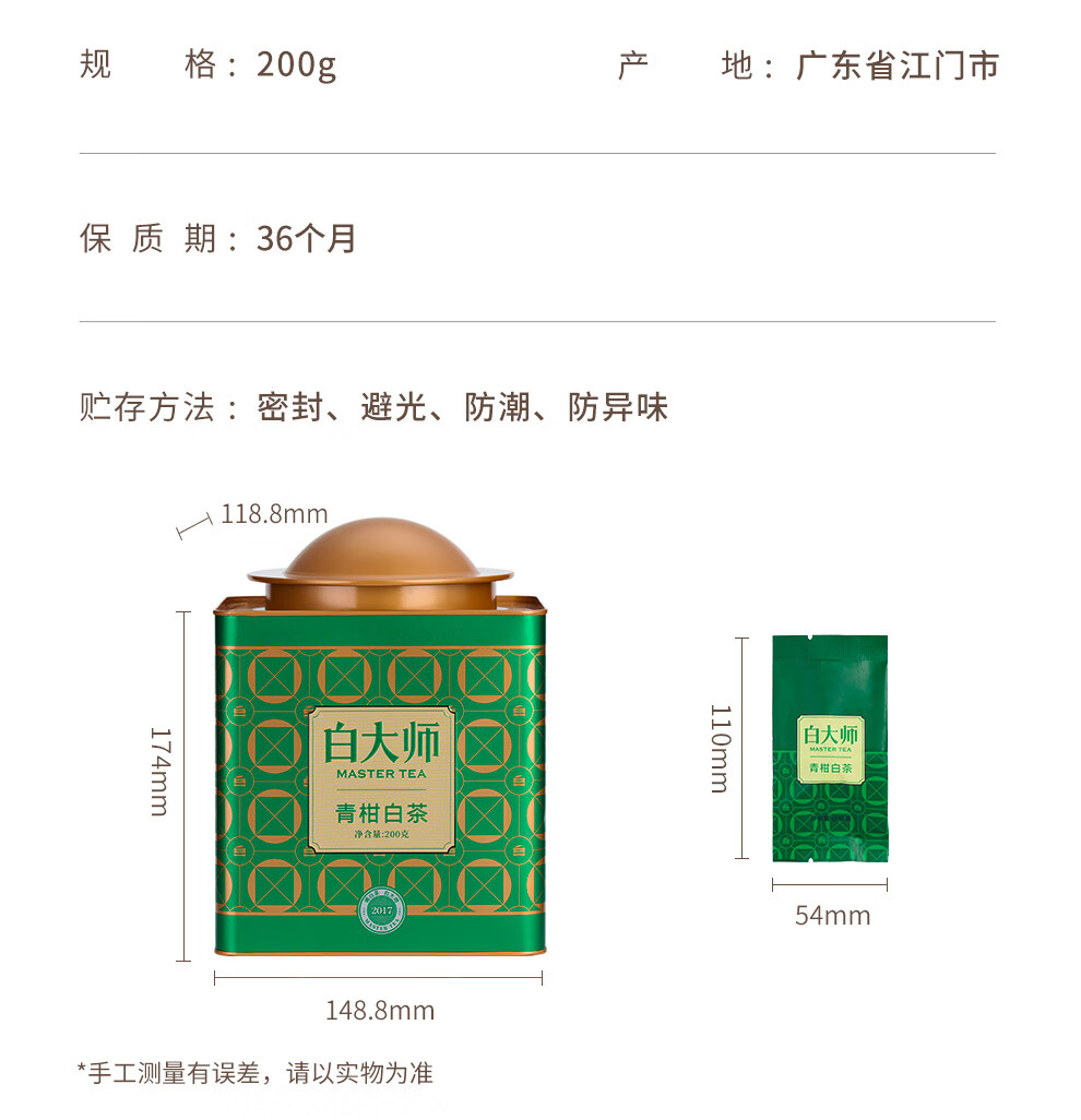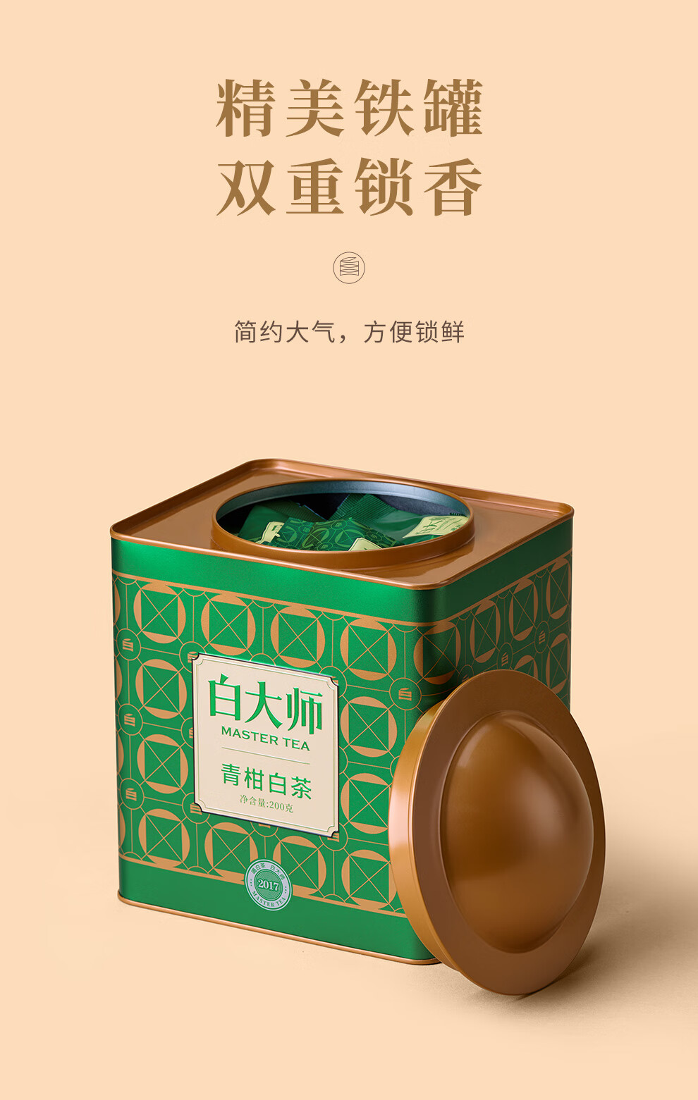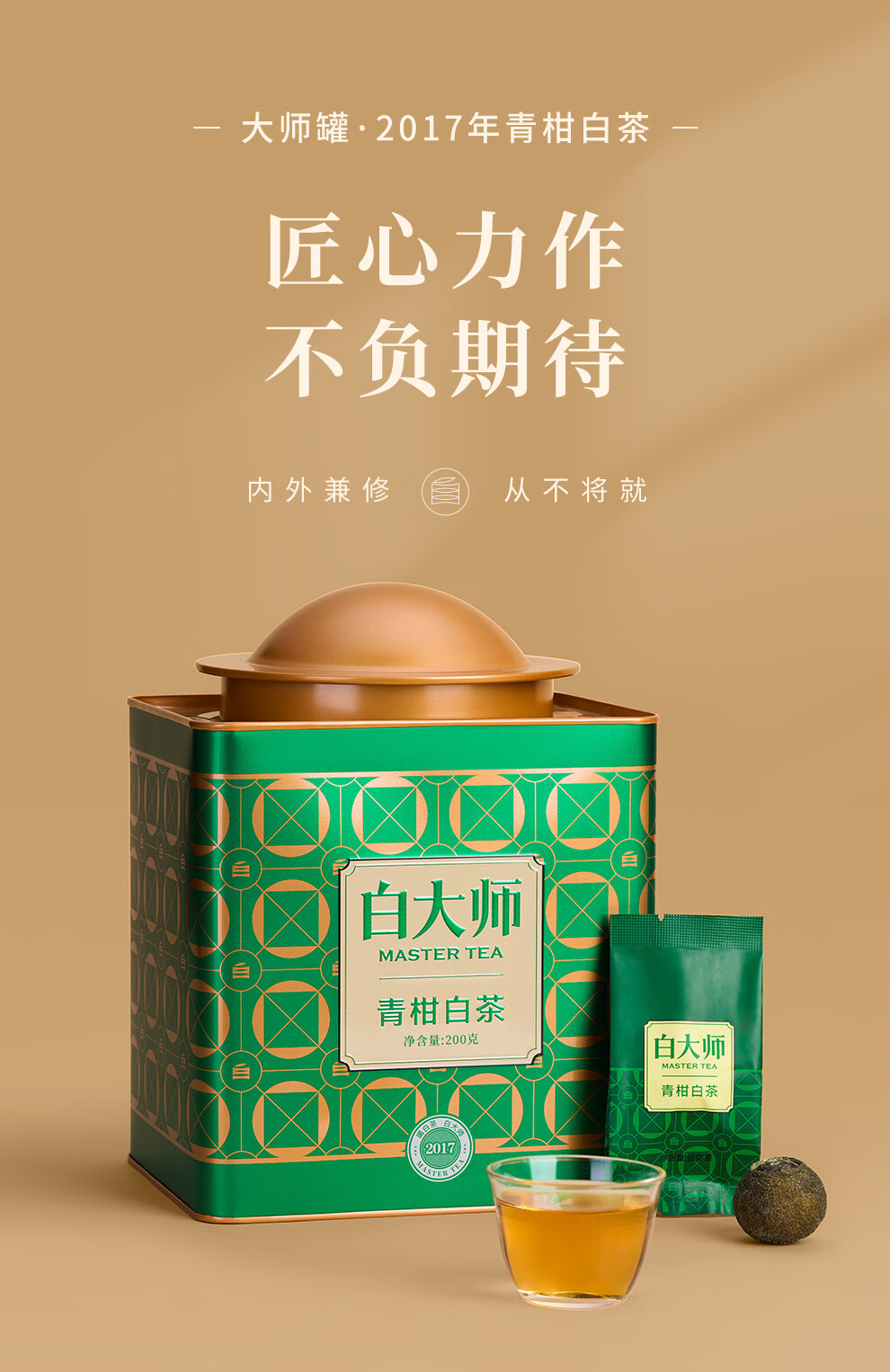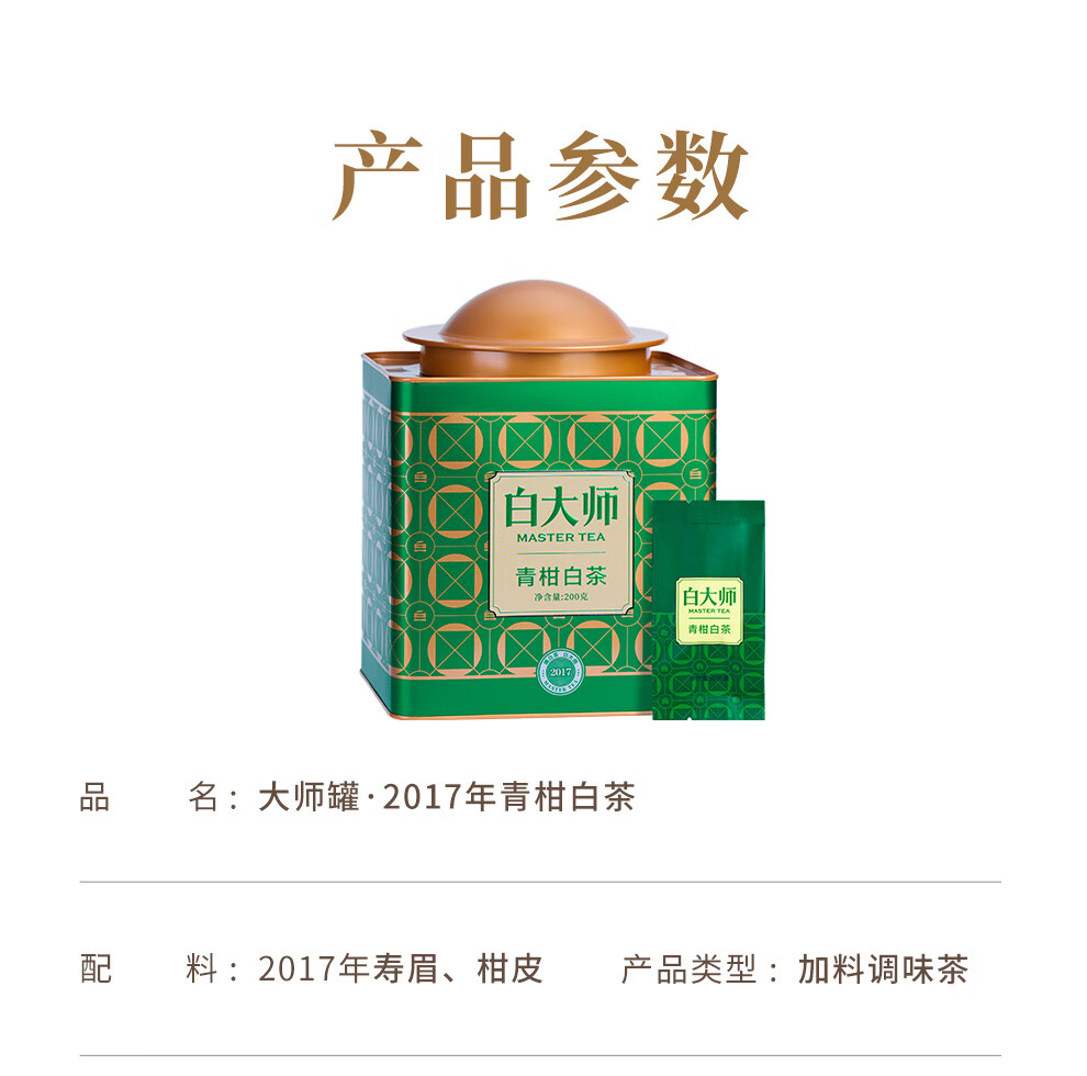 白大师茶叶白茶2017年青柑寿眉白茶福鼎白茶罐装龙珠白茶200g源头直发