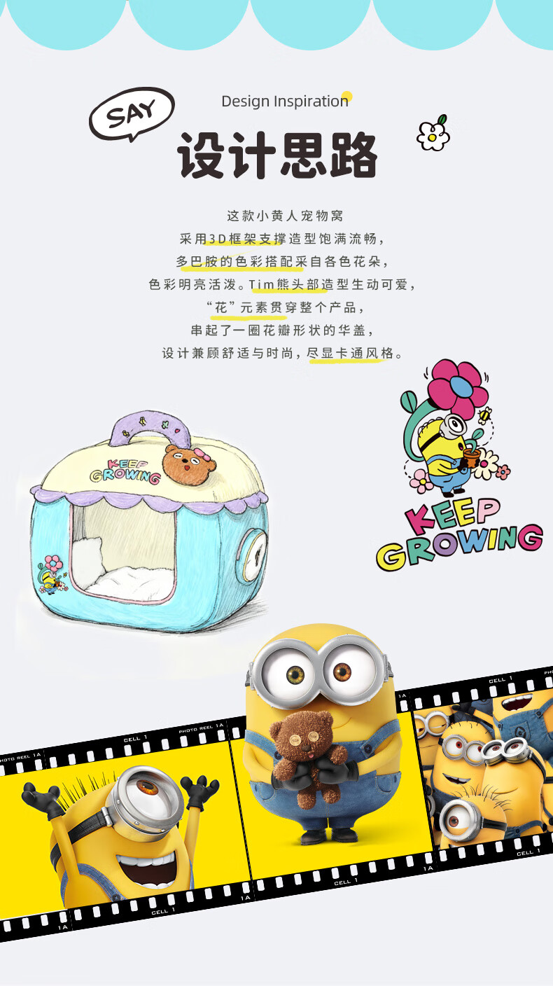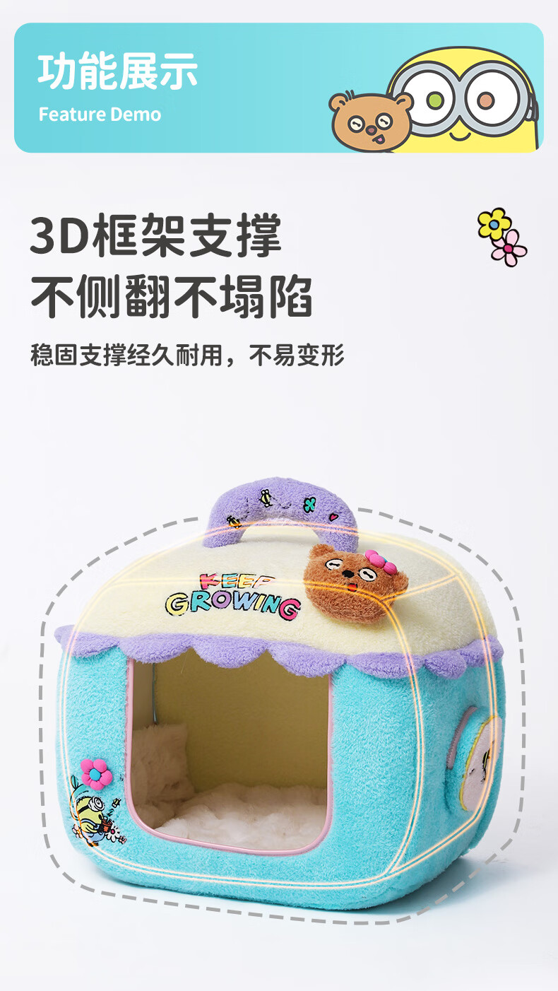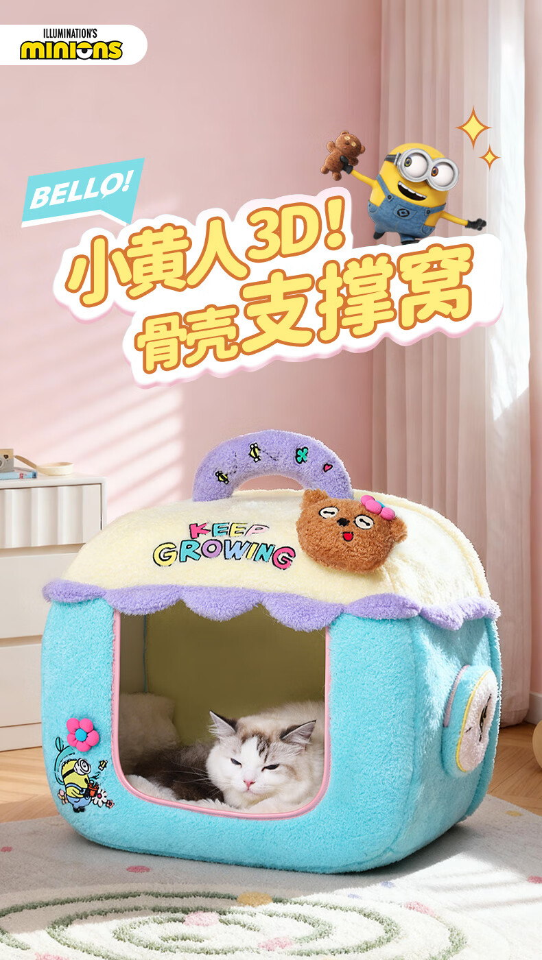 华元宠具(hoopet)小黄人不塌房宠物窝3D骨壳支撑狗狗睡觉窝大号安全感可拆洗小猫用