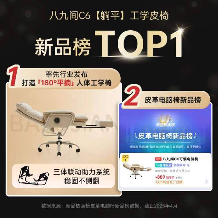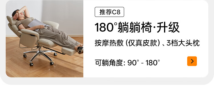八九间C6老板椅办公午睡两用电竞人体工学椅躺电脑椅子 180度后躺