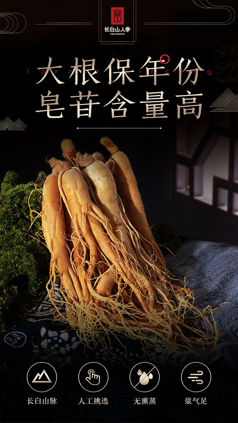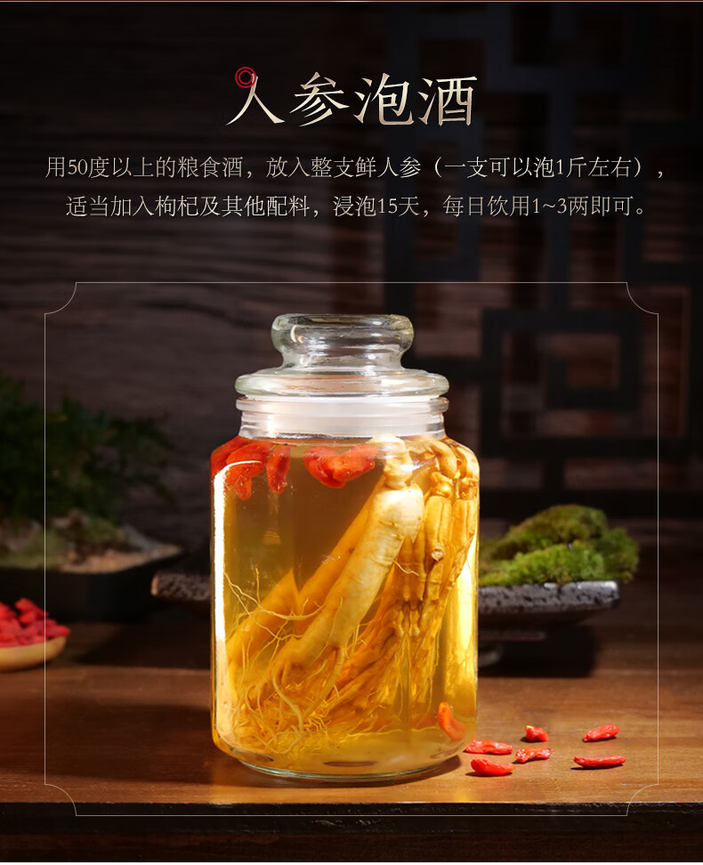 长白山人参鲜人参泡酒药材5年鲜人参泡酒煲汤保鲜参送长辈礼品5支装