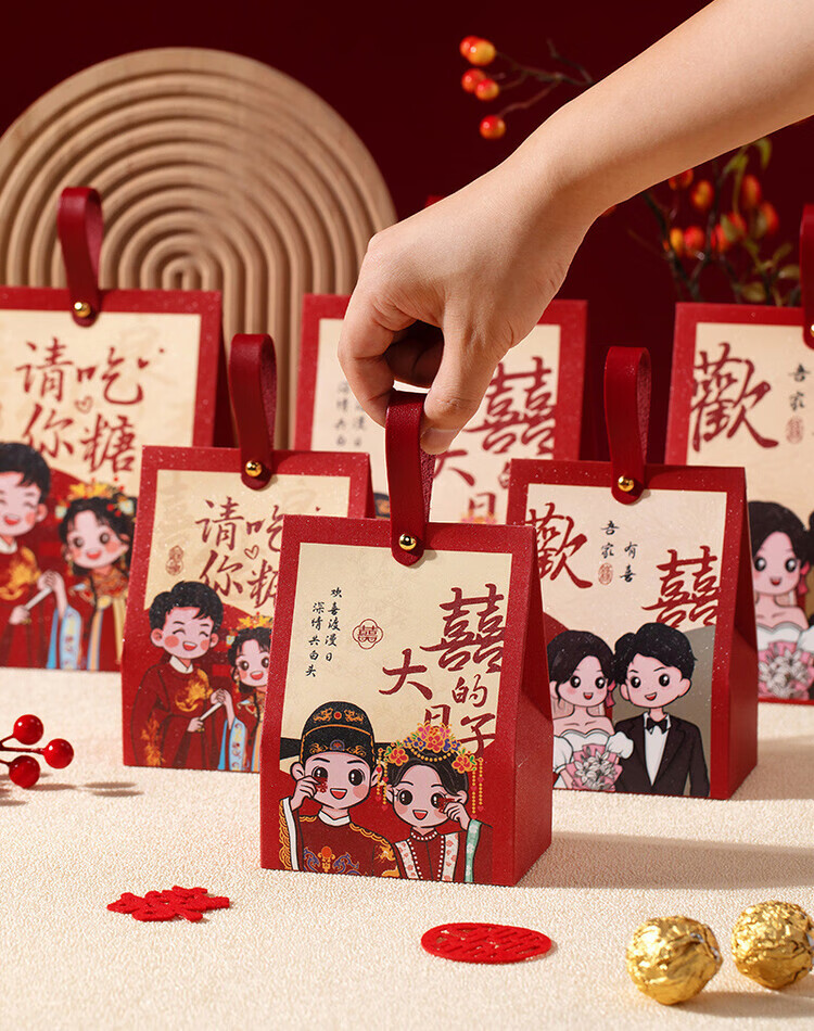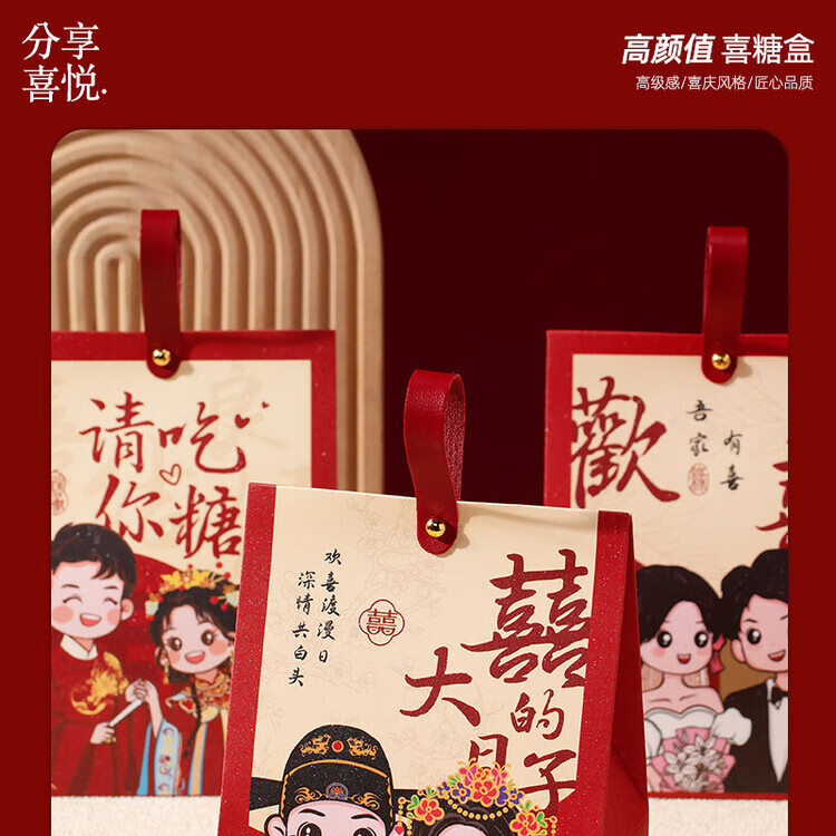 OYKTN喜糖盒子结婚专用批发空盒婚礼高级小众喜糖盒新款卡通订婚宴糖盒 金葱磨砂-请你吃糖 小号20个