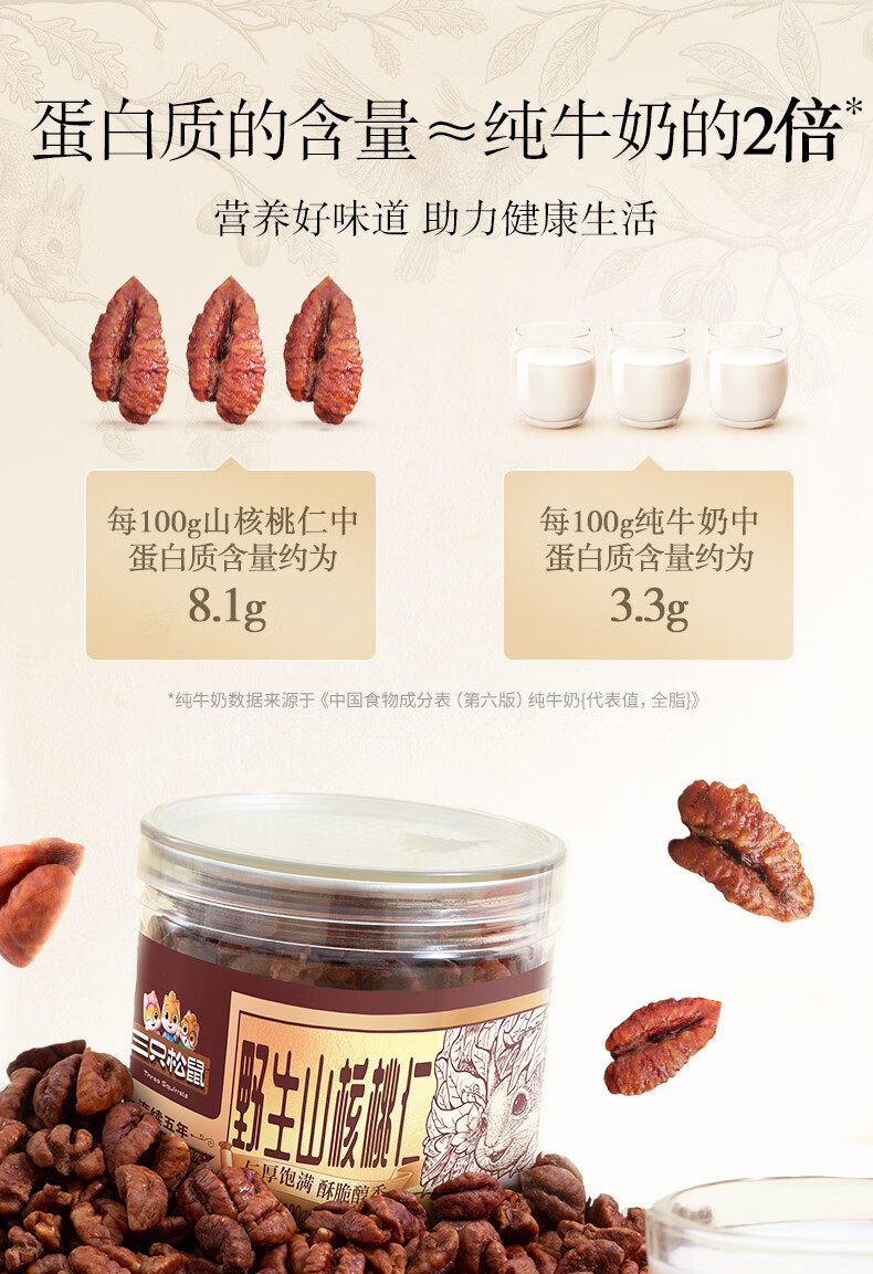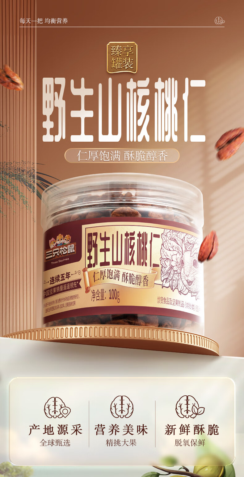 三只松鼠野生山核桃仁 每日坚果炒货休闲零食免剥果仁罐装100g/罐