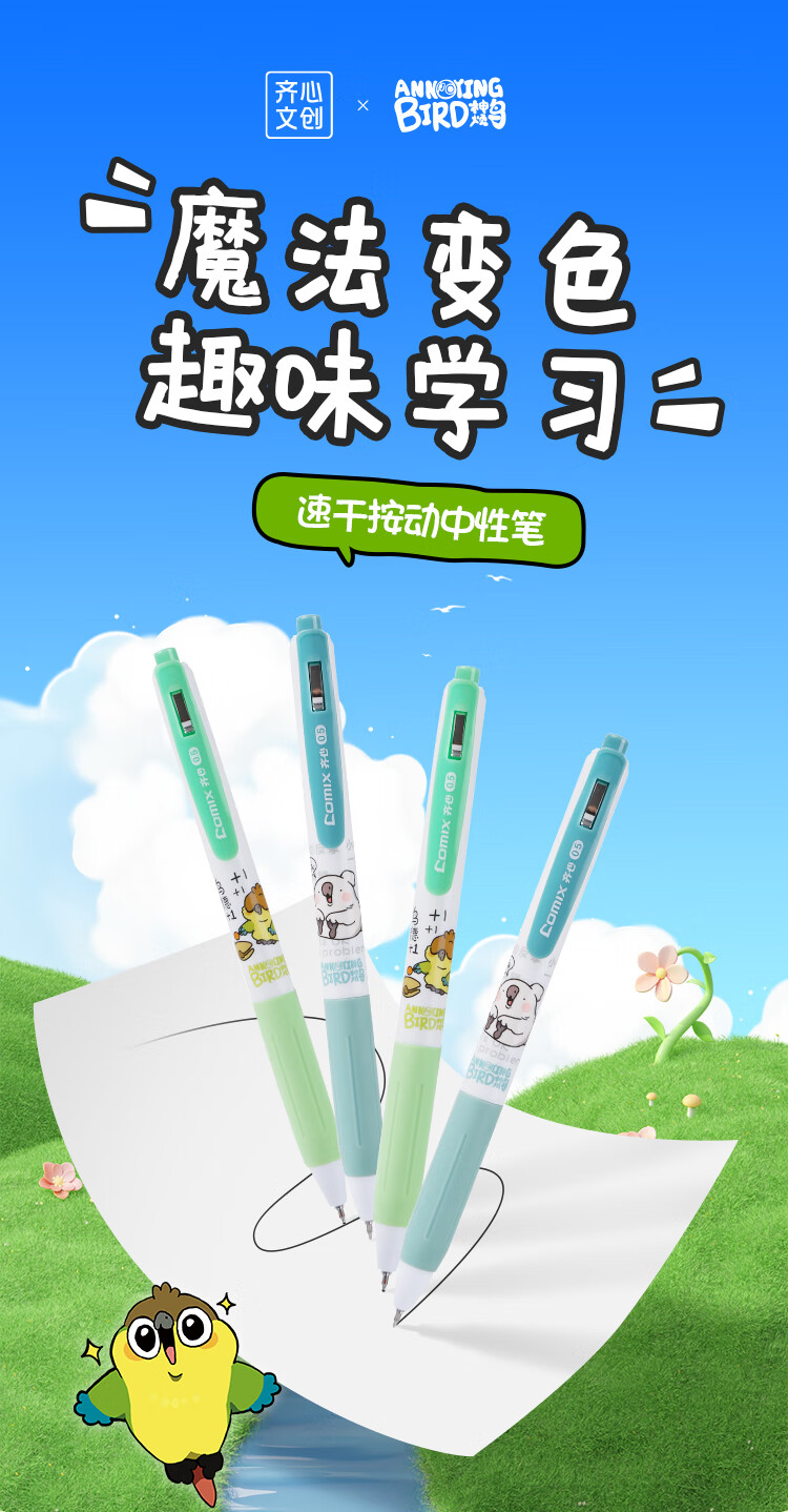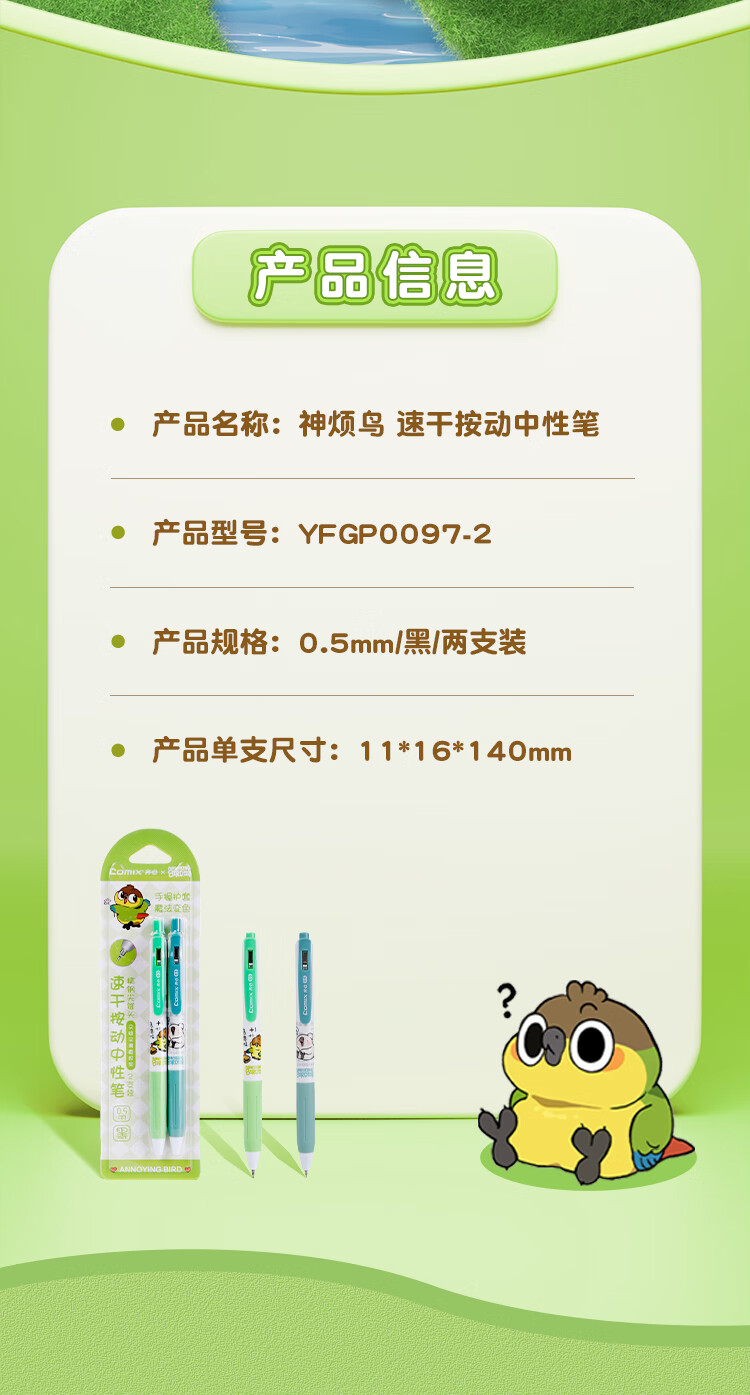 齐心(COMIX)(Comix)顺滑速干中性笔按动签字笔水笔办公文具 0.5mmST笔头 黑色 2支装 YFGP0097-2