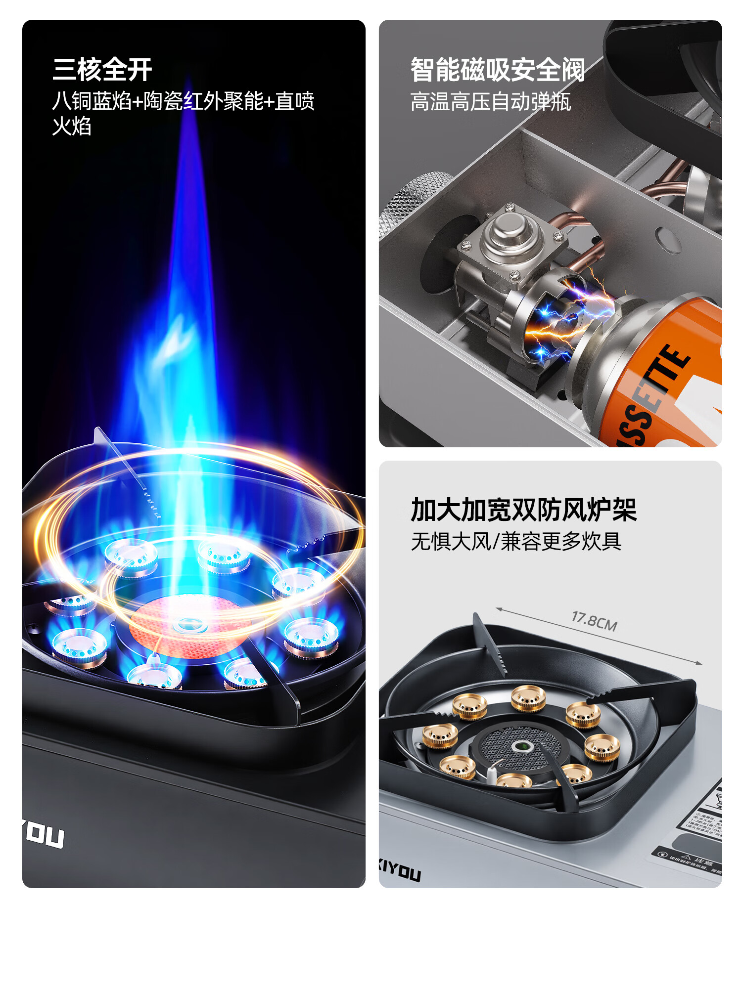 嘻由防爆卡式炉新款户外便携式猛火燃气炉灶露营煮茶炊具家用卡磁炉 【8800W大师级卡式炉】 快银【满载双防炉架/澎湃三核分焰技术】