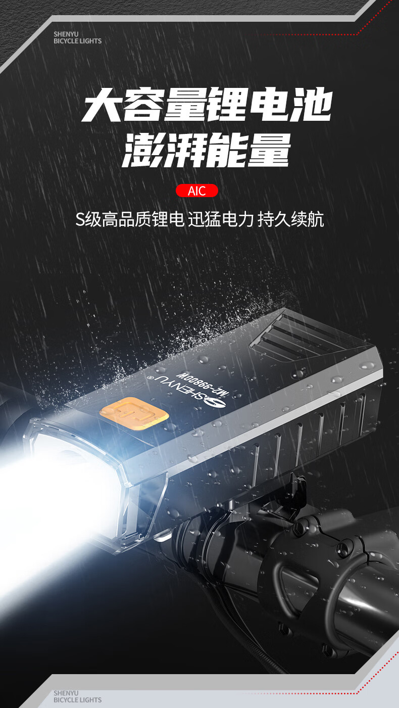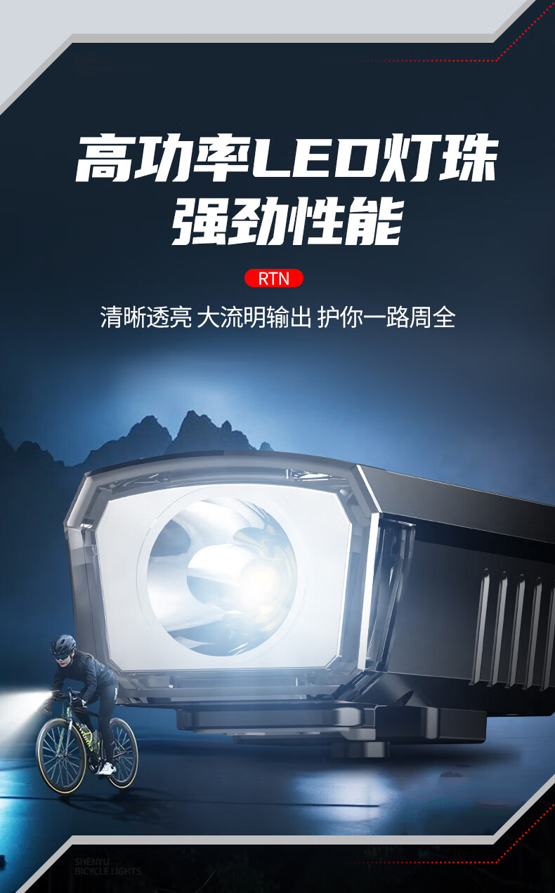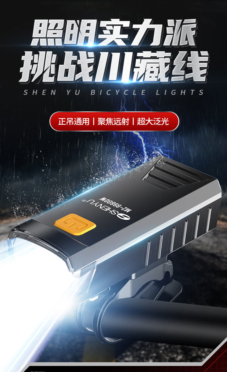 SHENYU自行车灯夜骑前灯山地车公路车骑行装备强光超亮手电筒防雨 超亮远射-持久续航