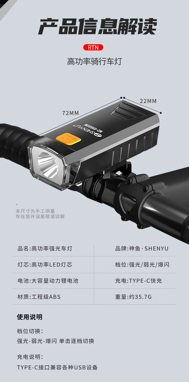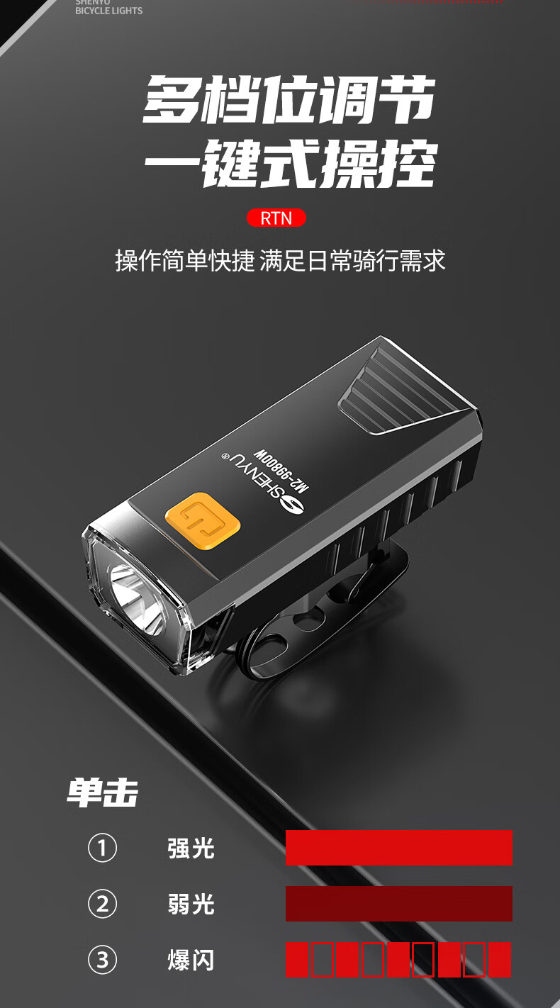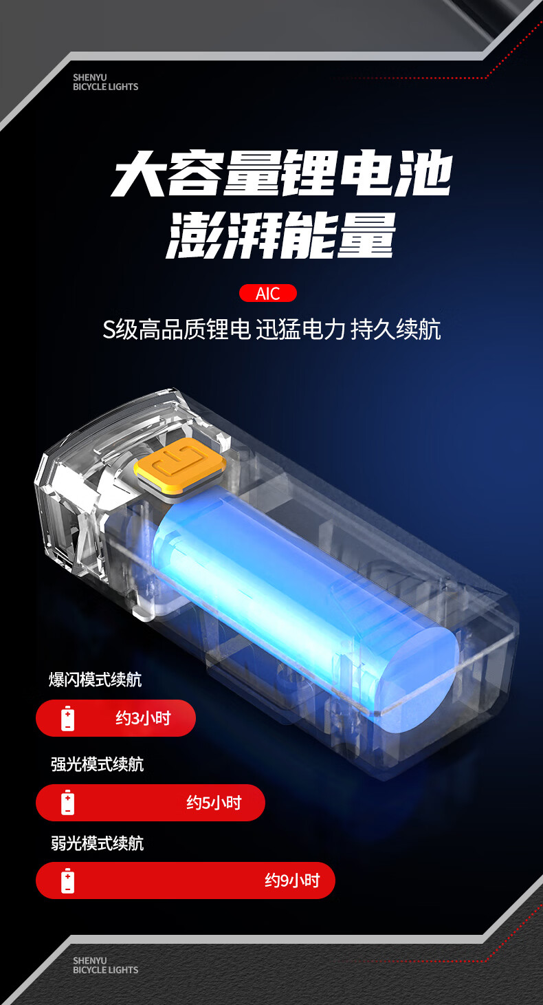 SHENYU自行车灯夜骑前灯山地车公路车骑行装备强光超亮手电筒防雨 超亮远射-持久续航