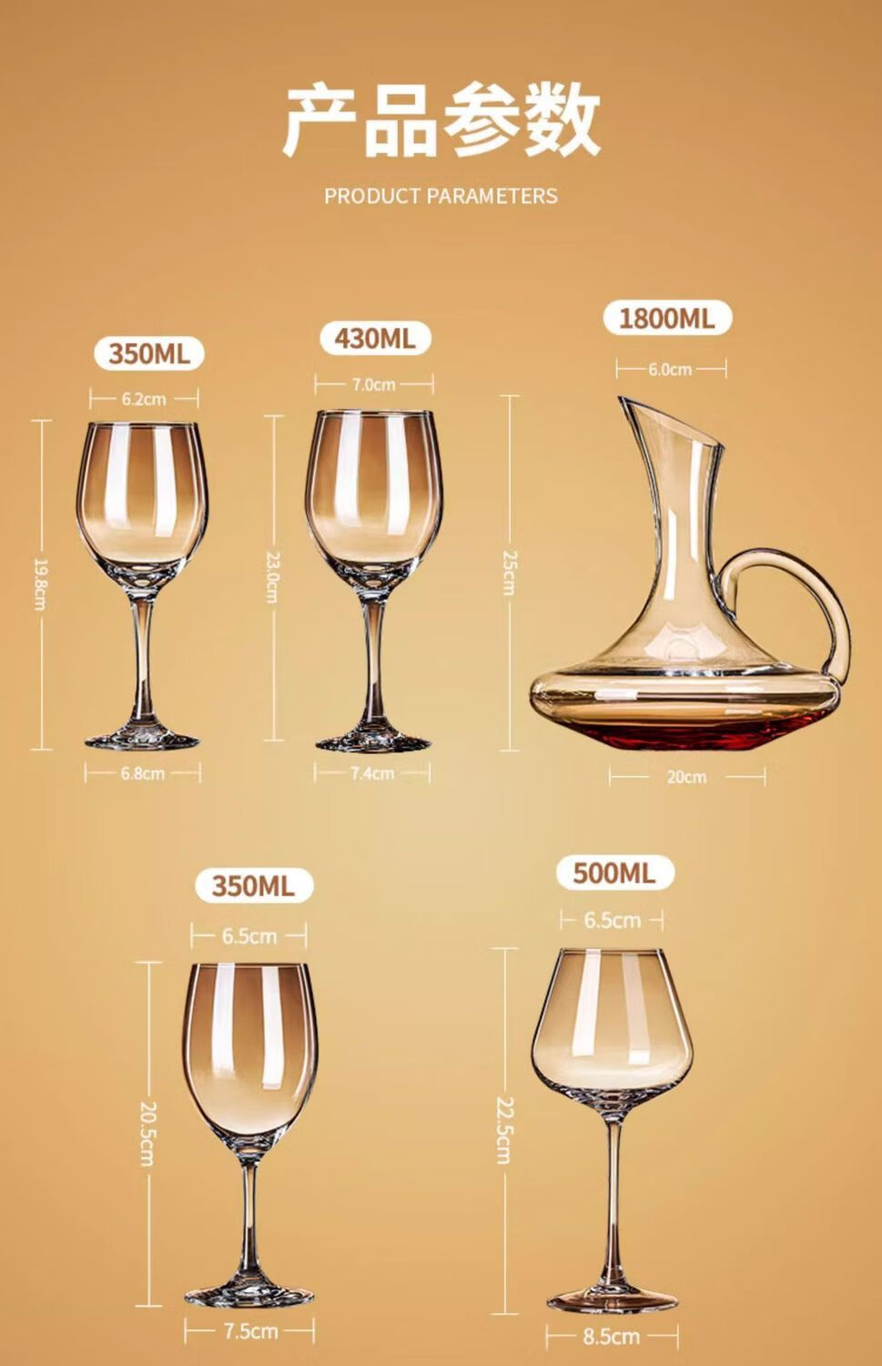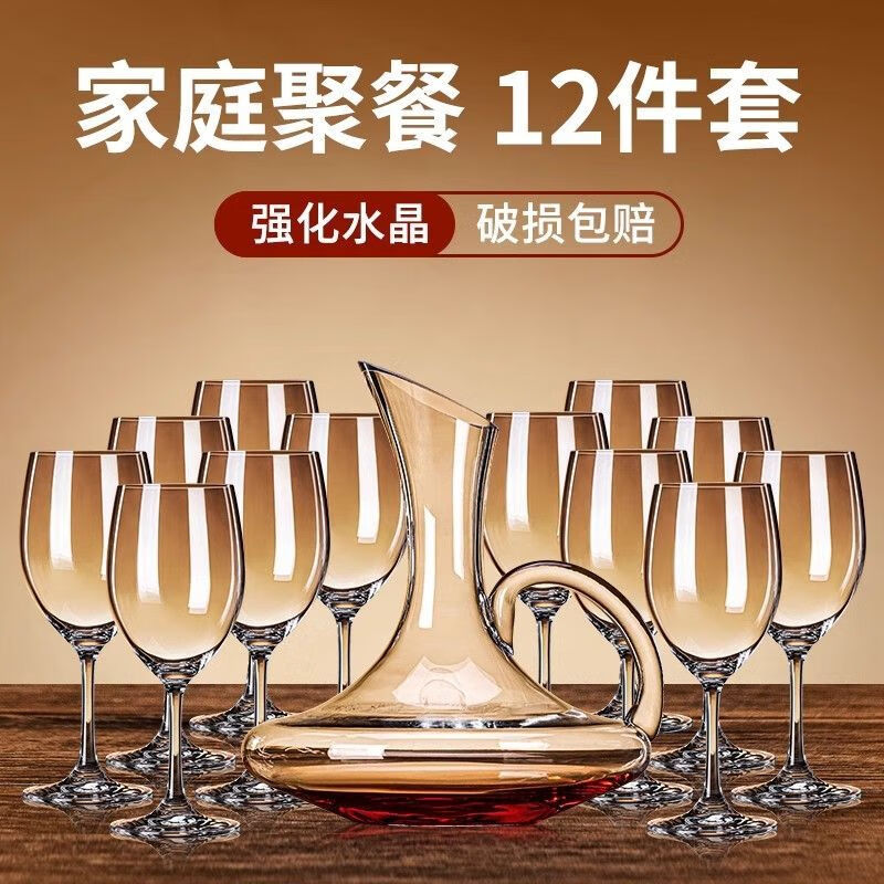 咏夏红酒杯轻奢套装家用勃艮第高脚杯子葡萄酒杯水晶玻璃醒酒器商用架 【强化加厚】350ml 12只
