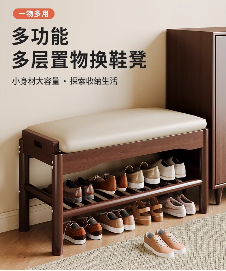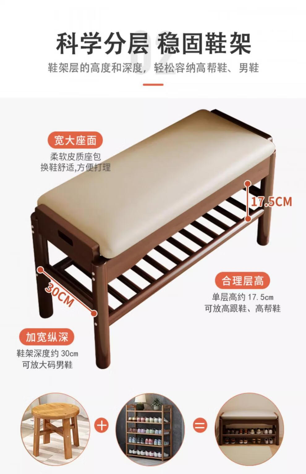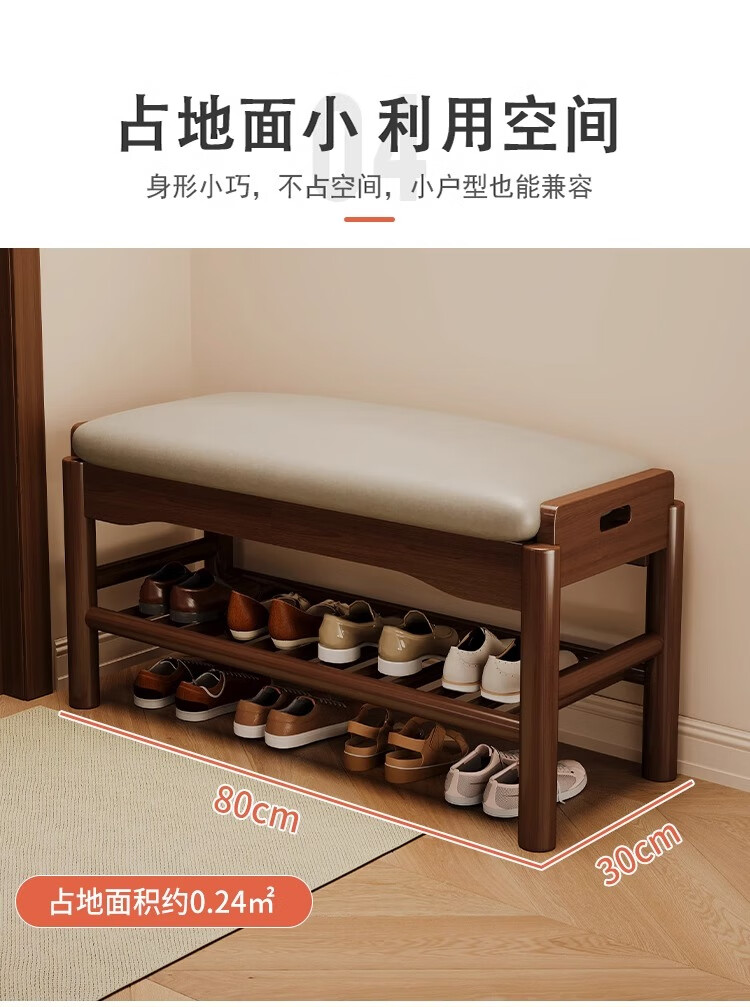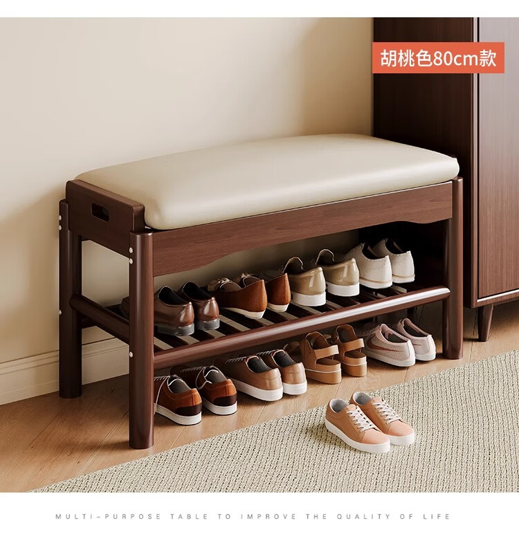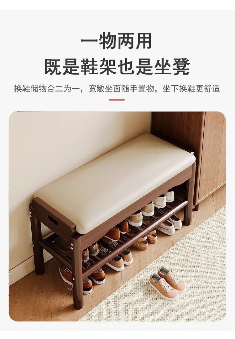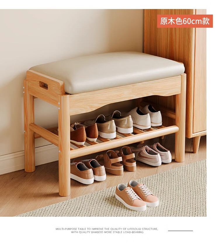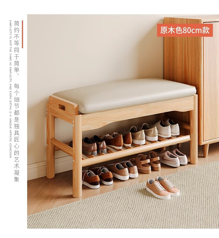 迈途森实木换鞋凳坐凳一体家用进门可坐鞋架长条新款实木穿鞋凳入户鞋柜 【升级加厚】北欧原木色80CM 【用坏包赔】