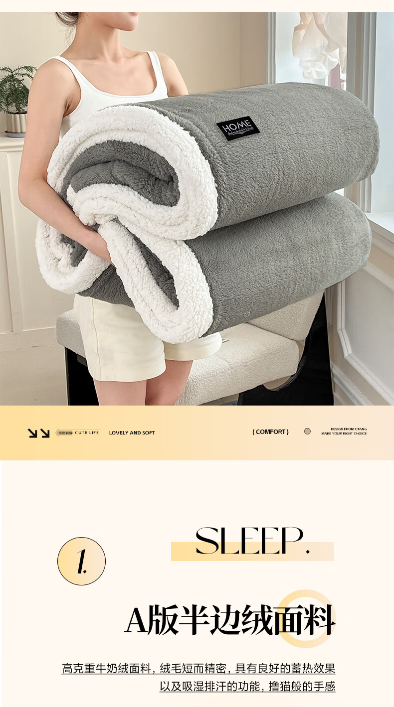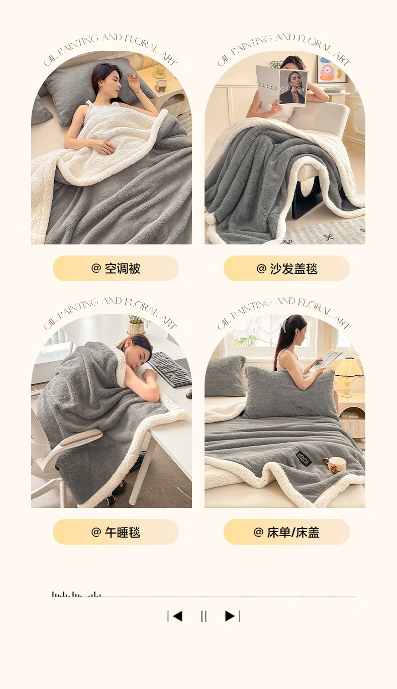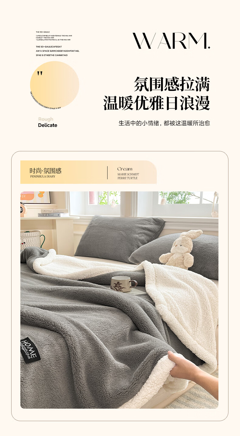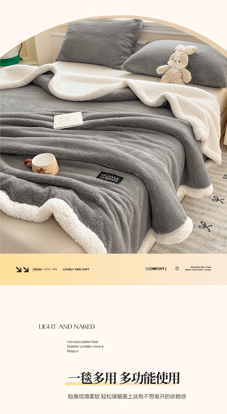 猫人(MiiOW)牛奶绒毛毯毛巾被 办公室午睡毯子加厚盖毯羊羔绒披肩毛毯被子 双层-素雅白 180*200cm