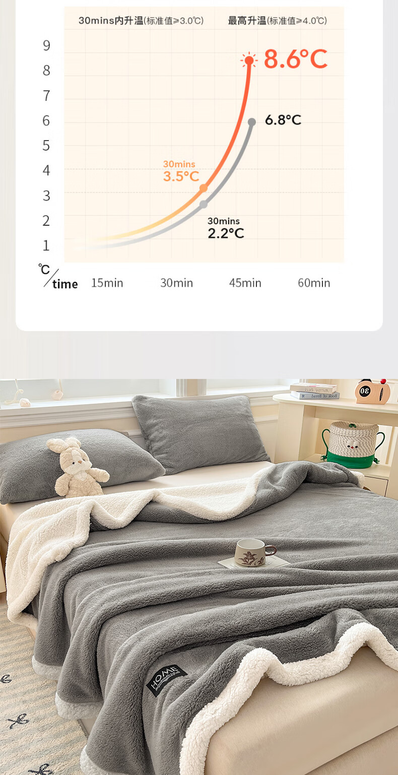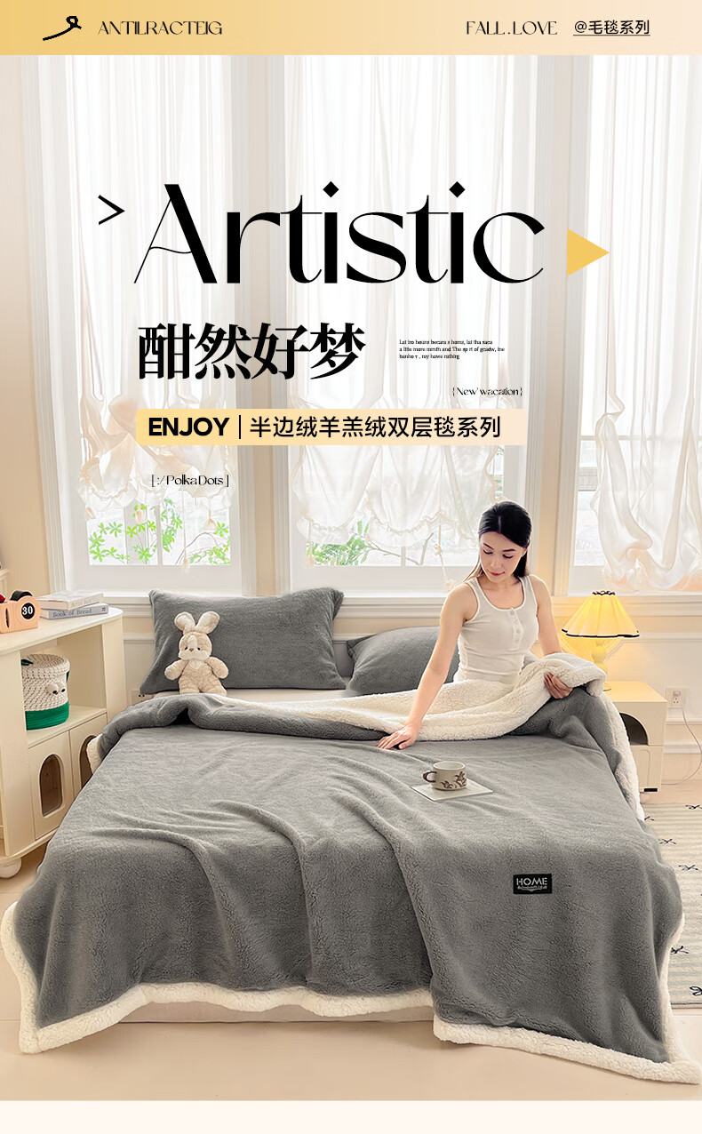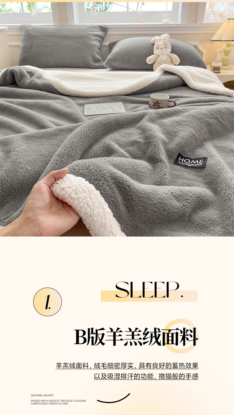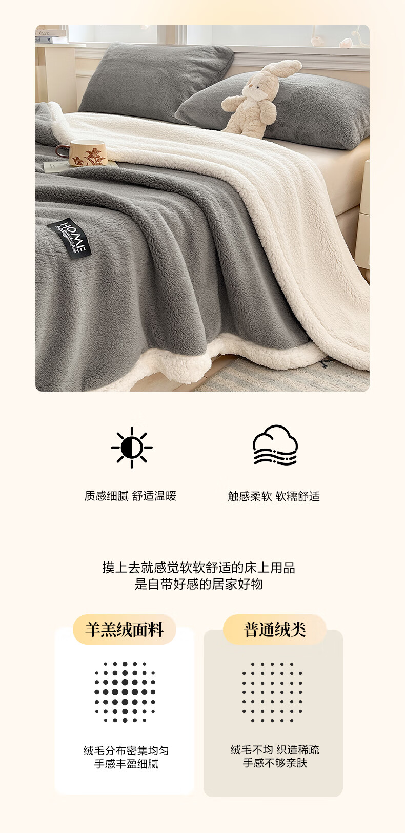 猫人(MiiOW)牛奶绒毛毯毛巾被 办公室午睡毯子加厚盖毯羊羔绒披肩毛毯被子 双层-素雅白 180*200cm