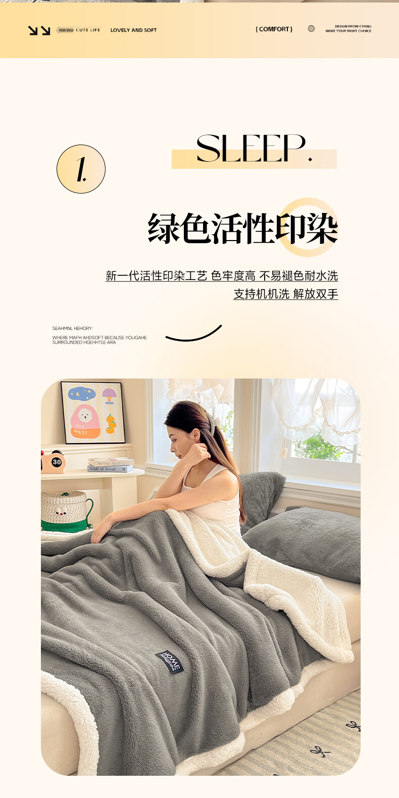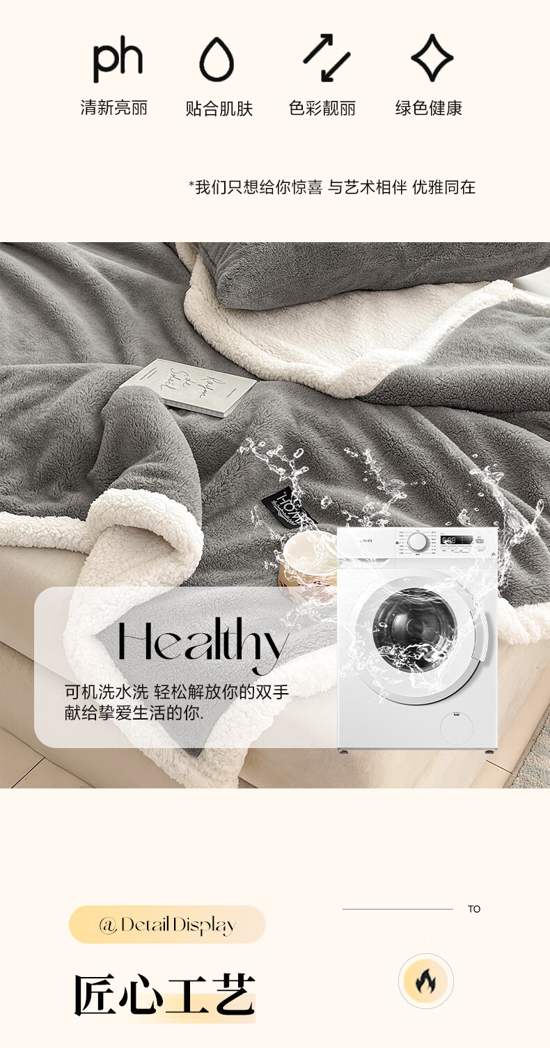 猫人(MiiOW)加厚珊瑚绒毯毛毯子 办公室羊羔绒午睡毯沙发盖毯午休牛奶绒毯 卡其 150*200cm【单人毯】