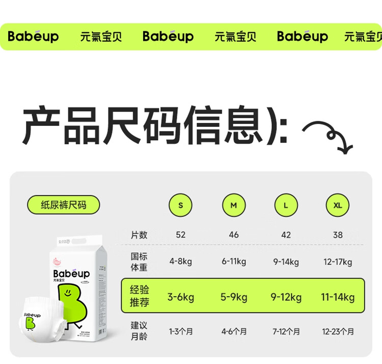 BBG元气宝贝系列纸尿裤L码42片(9-12kg)大码婴儿尿不湿超薄柔软透气