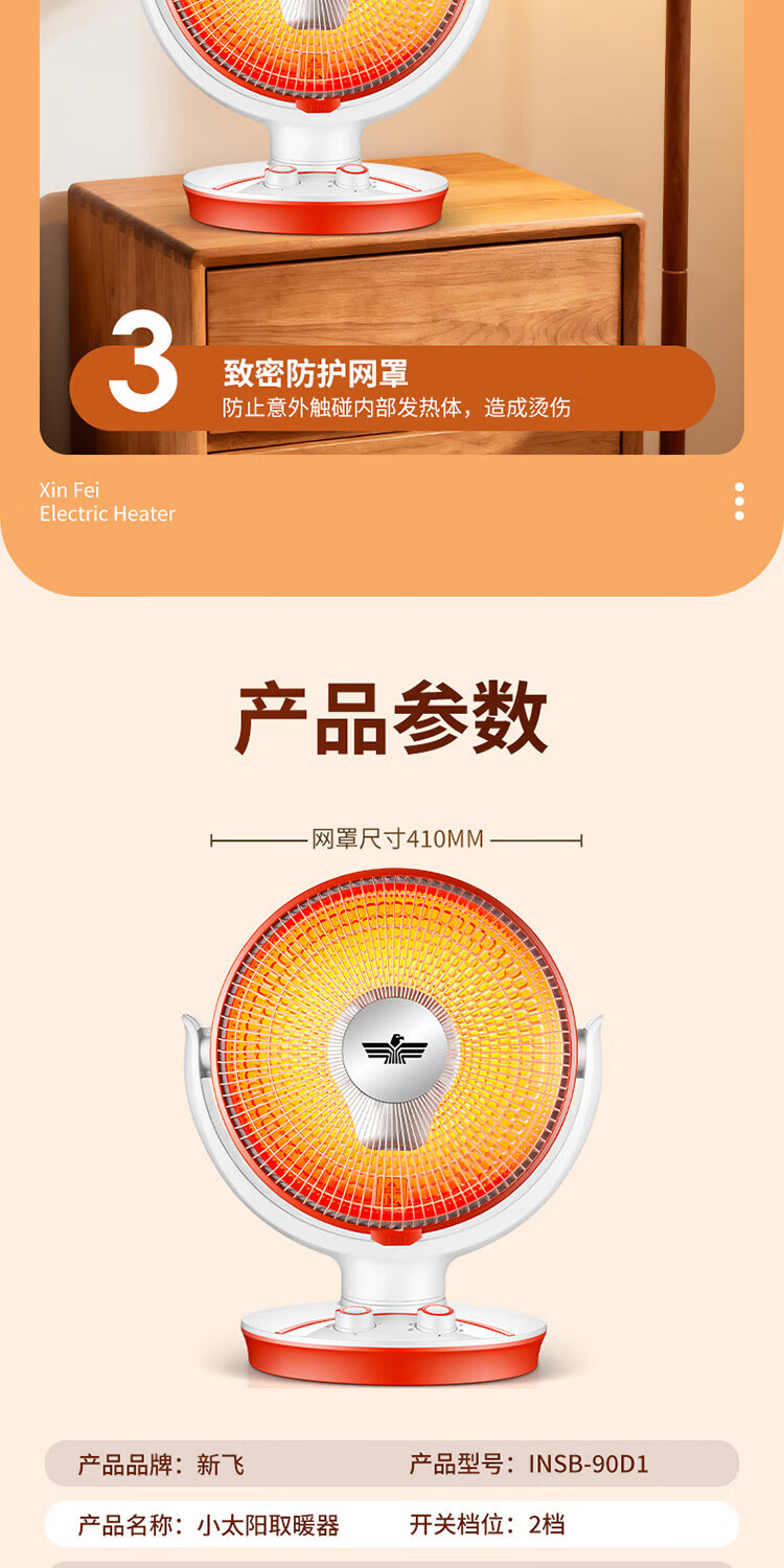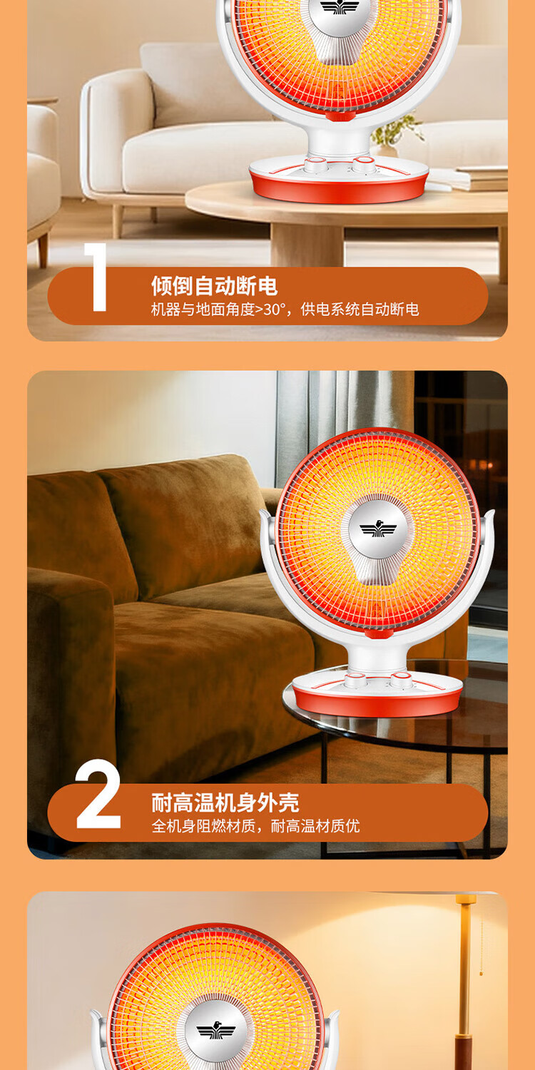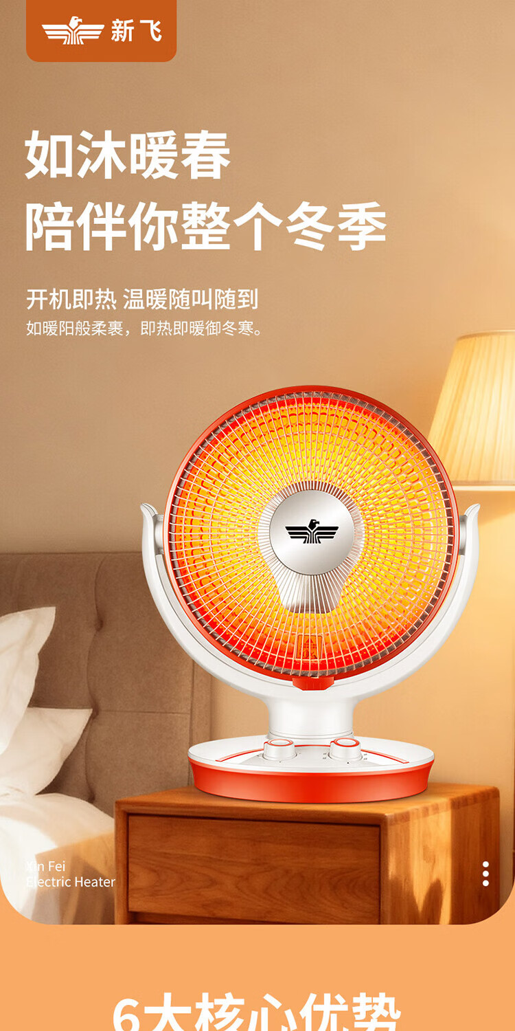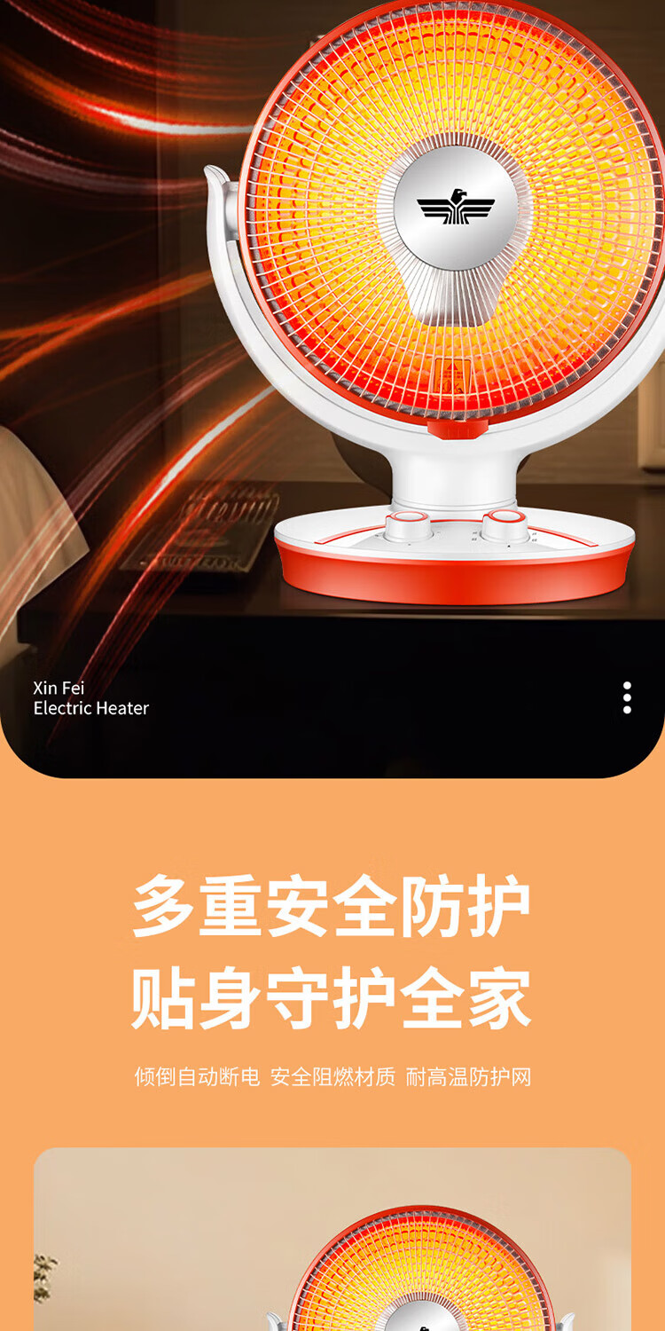 新飞小太阳取暖器家用电暖器办公室桌面暖脚神器台式暖风机浴室小型烤火电暖器电热扇 速热型1000W 中号升级款【可摇头 加厚机身 双旋钮】 A-68/360 咨询客服享优先发货