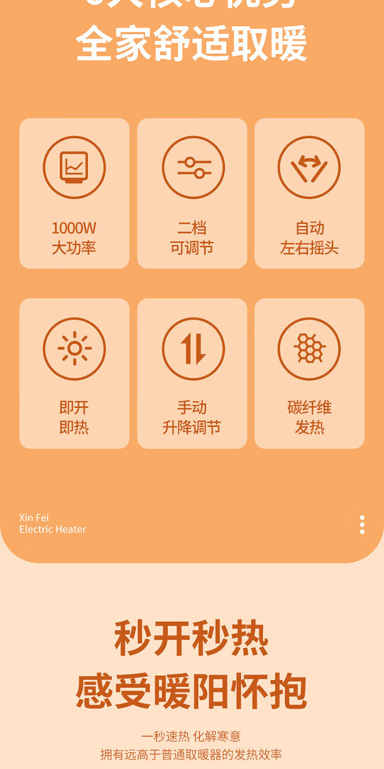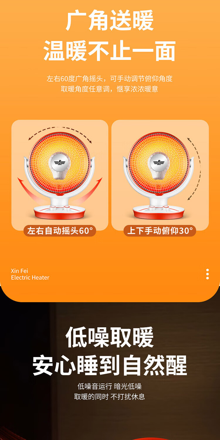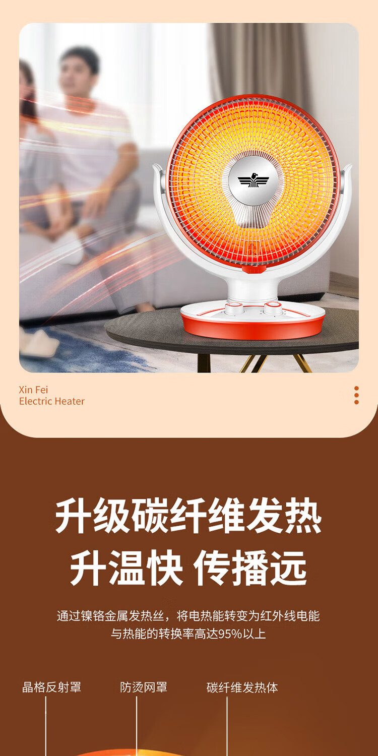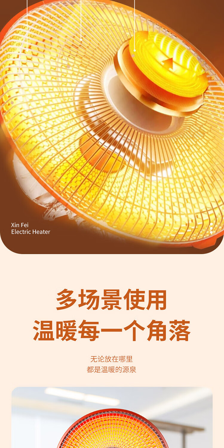 新飞小太阳取暖器家用电暖器办公室桌面暖脚神器台式暖风机浴室小型烤火电暖器电热扇 速热型1000W 中号升级款【可摇头 加厚机身 双旋钮】 A-68/360 咨询客服享优先发货