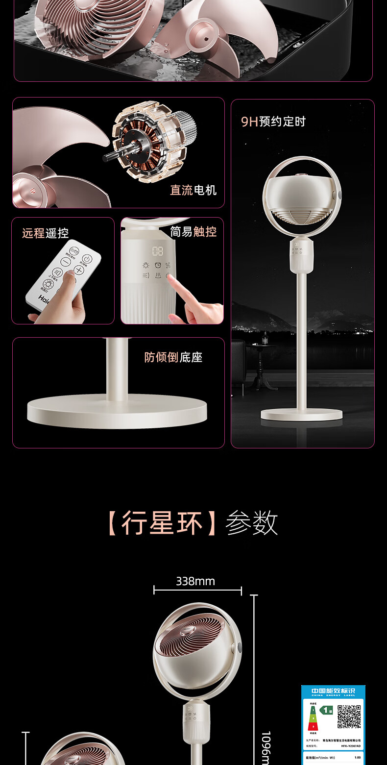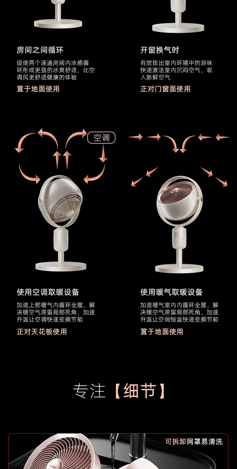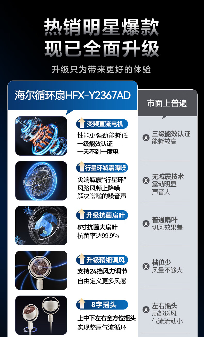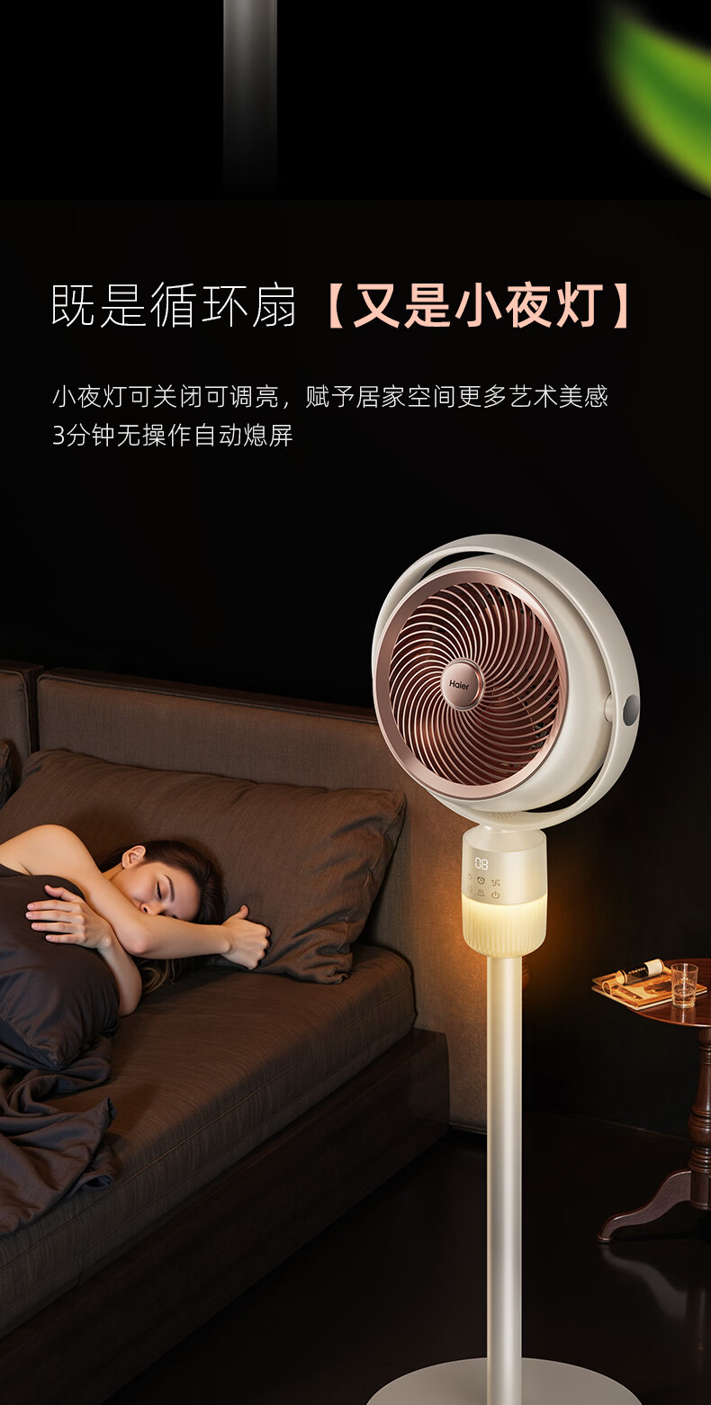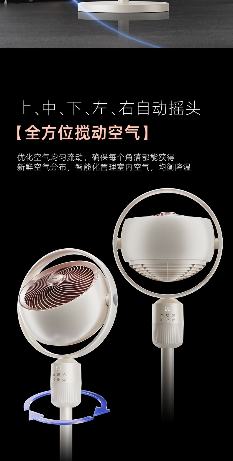 海尔(Haier)空气循环扇大风量摇头电风扇抑菌净化语音风扇家用台式落地扇轻音卧室节能风扇柔风轻羽扇电风扇 【全自动摇头】遥控循环扇HFX-Y2367A
