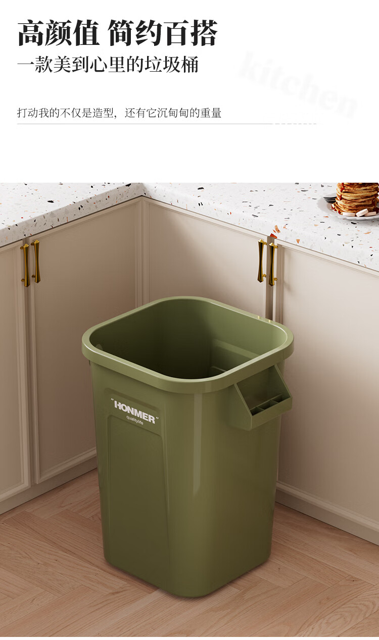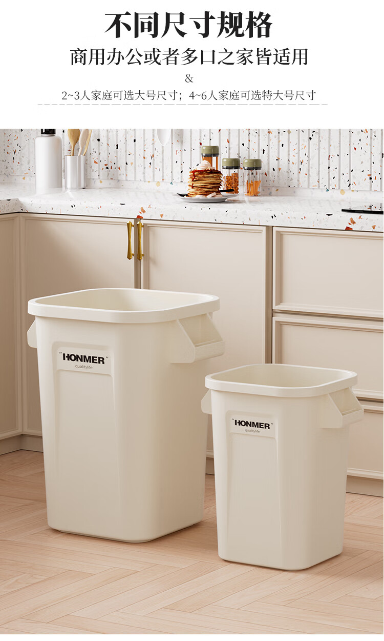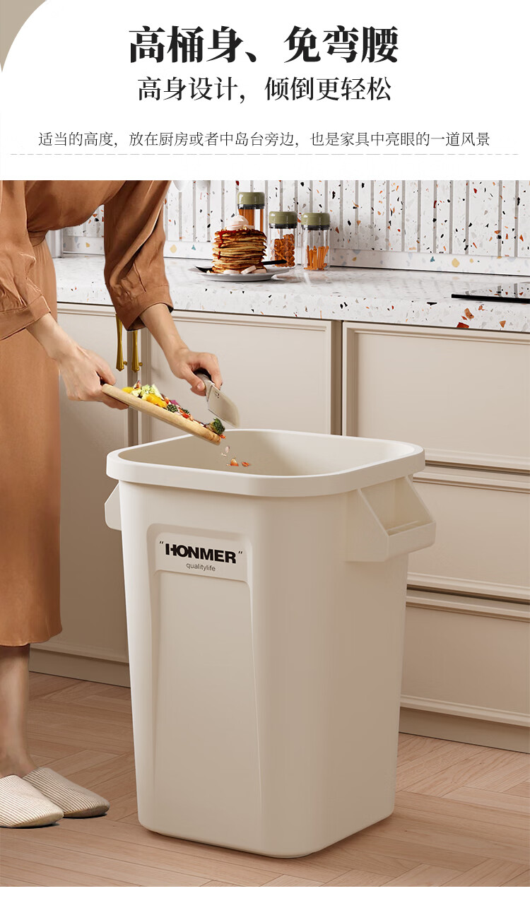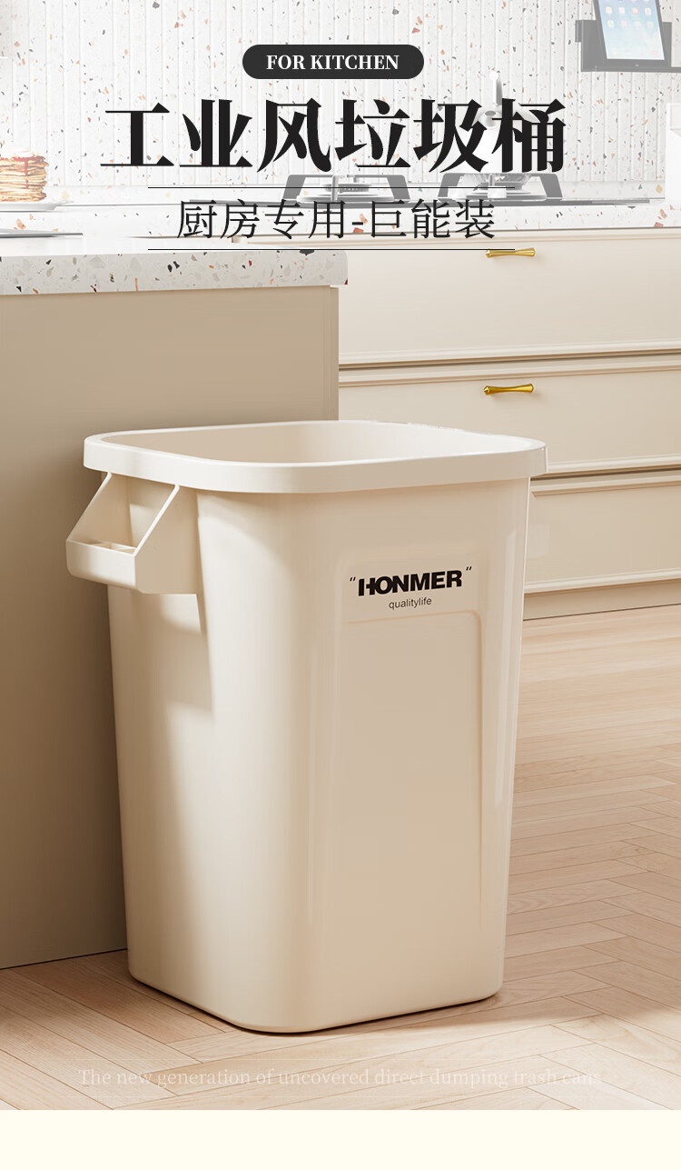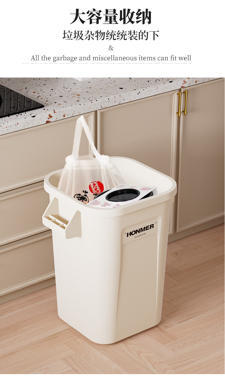 吱凡日本厨房垃圾桶大容量大号家用收纳箱2025新款客厅厨余整理储物桶 奶白色14L-大容量
