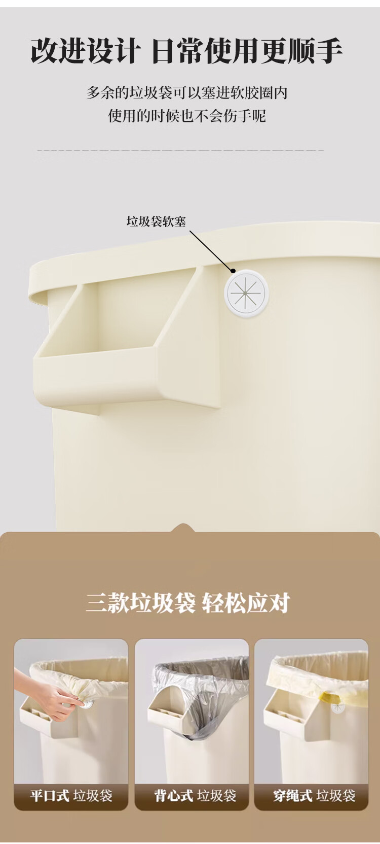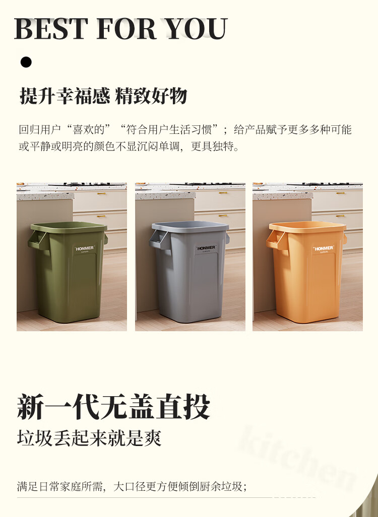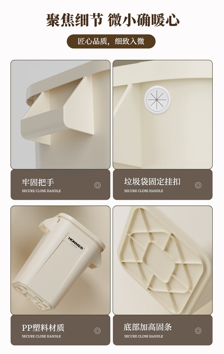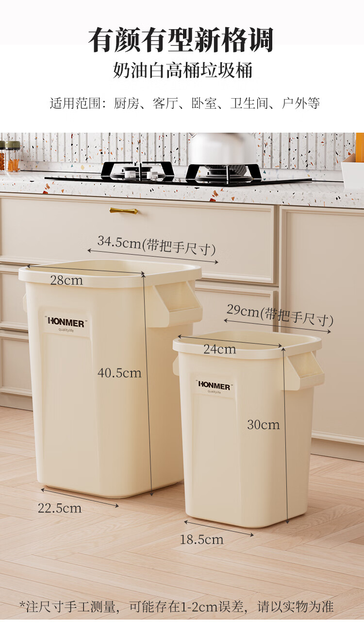 吱凡日本厨房垃圾桶大容量大号家用收纳箱2025新款客厅厨余整理储物桶 奶白色14L-大容量