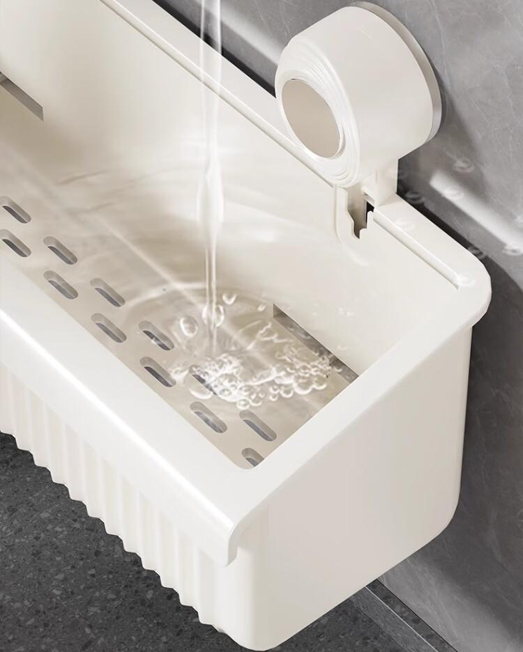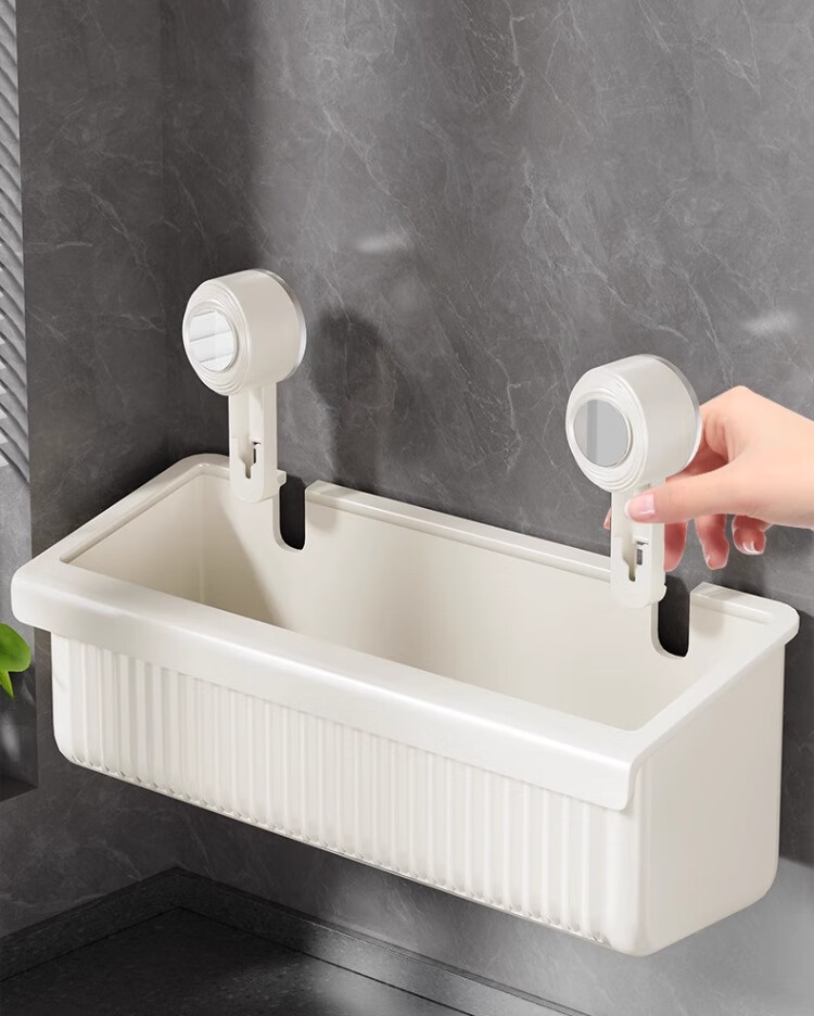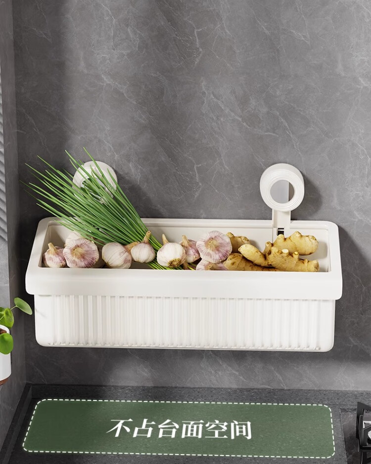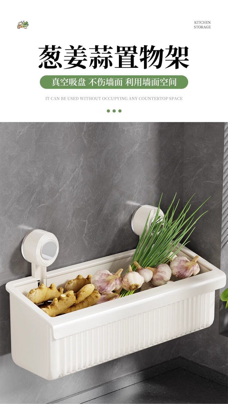 尔思家厨房葱姜蒜收纳筐吸盘置物架壁挂式调料架神器菜篮子免打孔挂篮 象牙白(1个装)