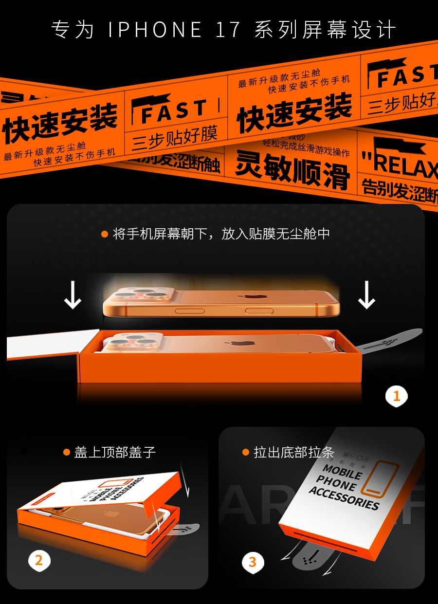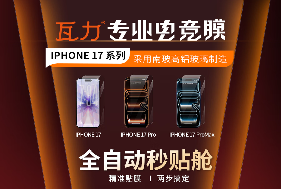 瓦力【专业级电竞钢化膜】适用苹果17promax钢化膜全胶iphone17promax手机膜增透游戏防摔抗指纹无尘舱