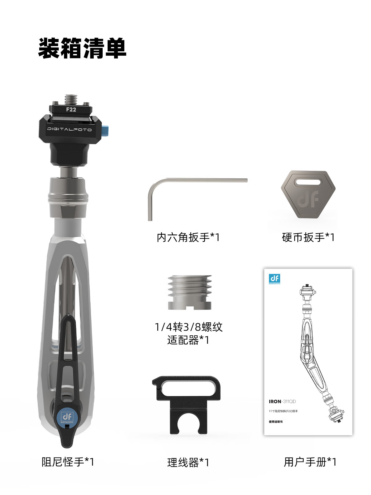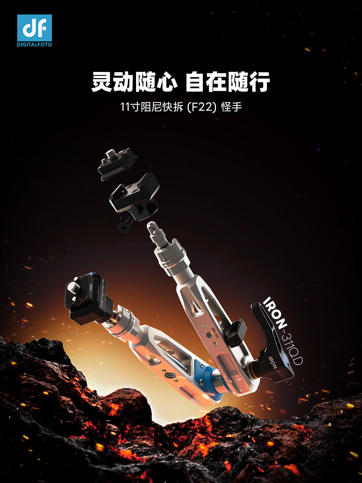 迪影丰DF 阻尼11寸万向怪手 阻尼式魔术臂 可拆卸球形云台带F22快装板ARRI阿莱定位针摄影配件固定架 【含F22快装板】星舰灰