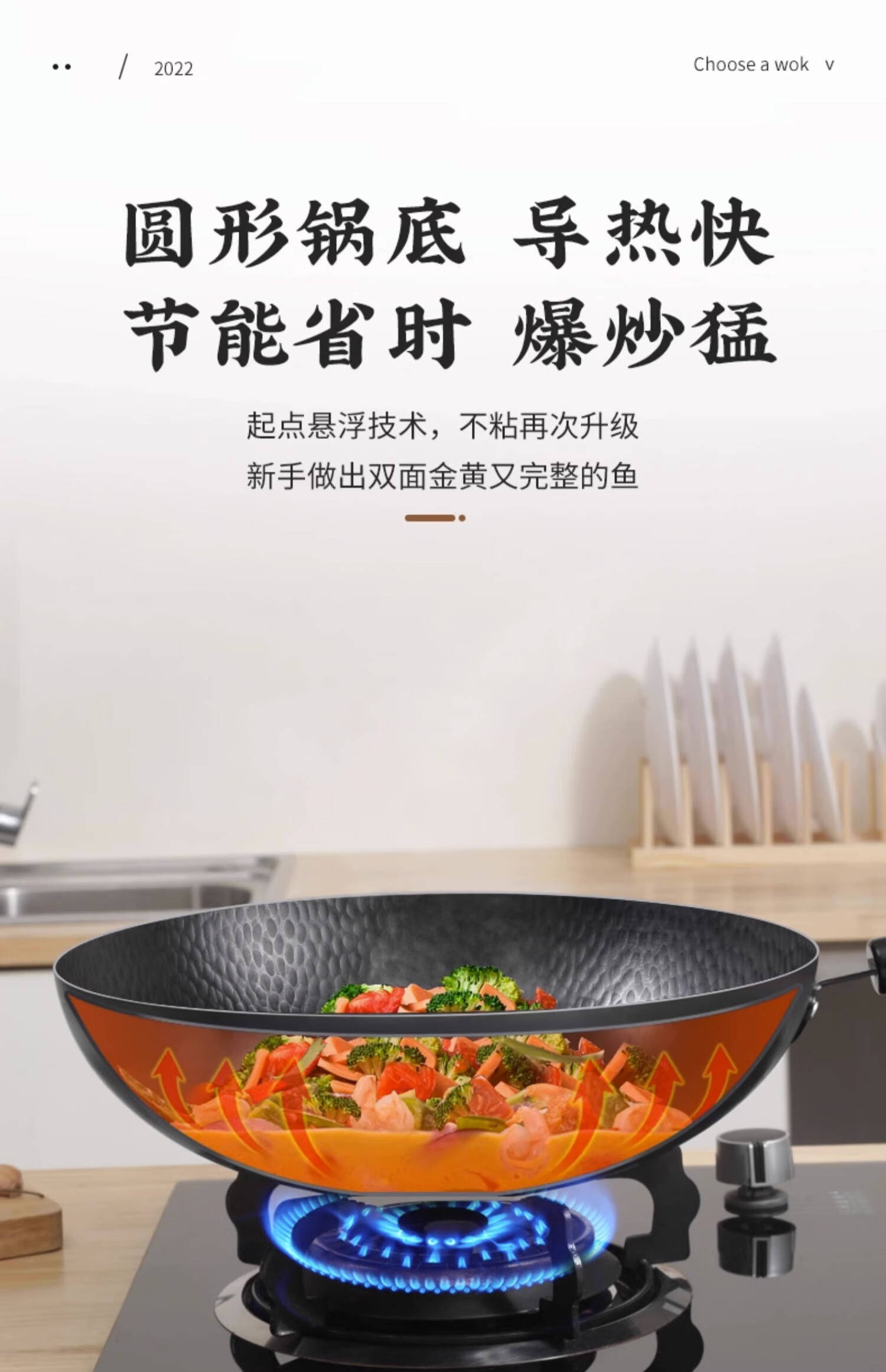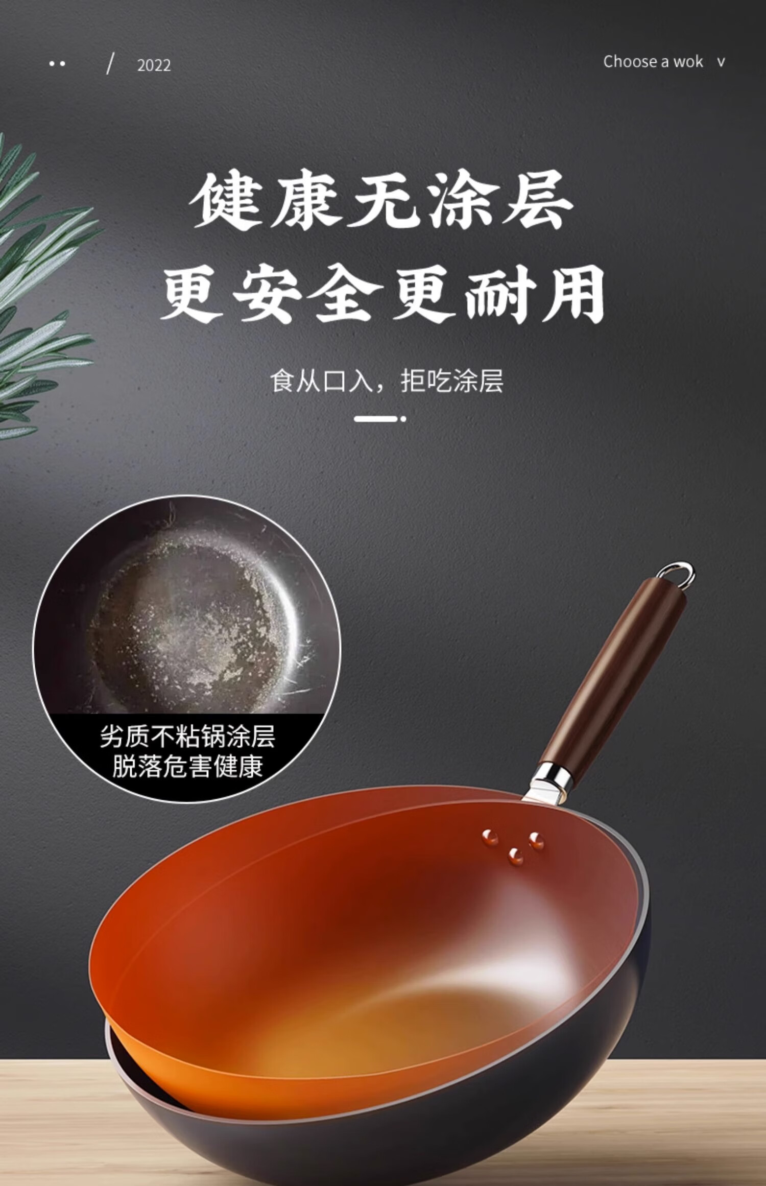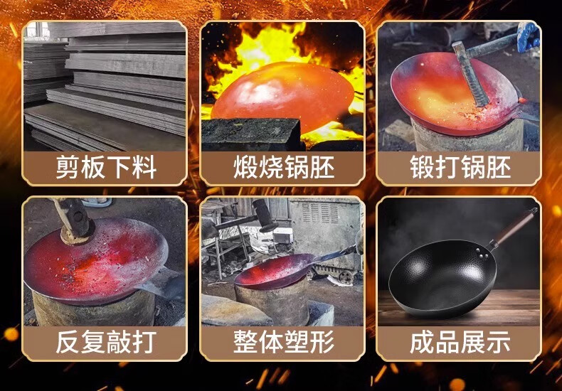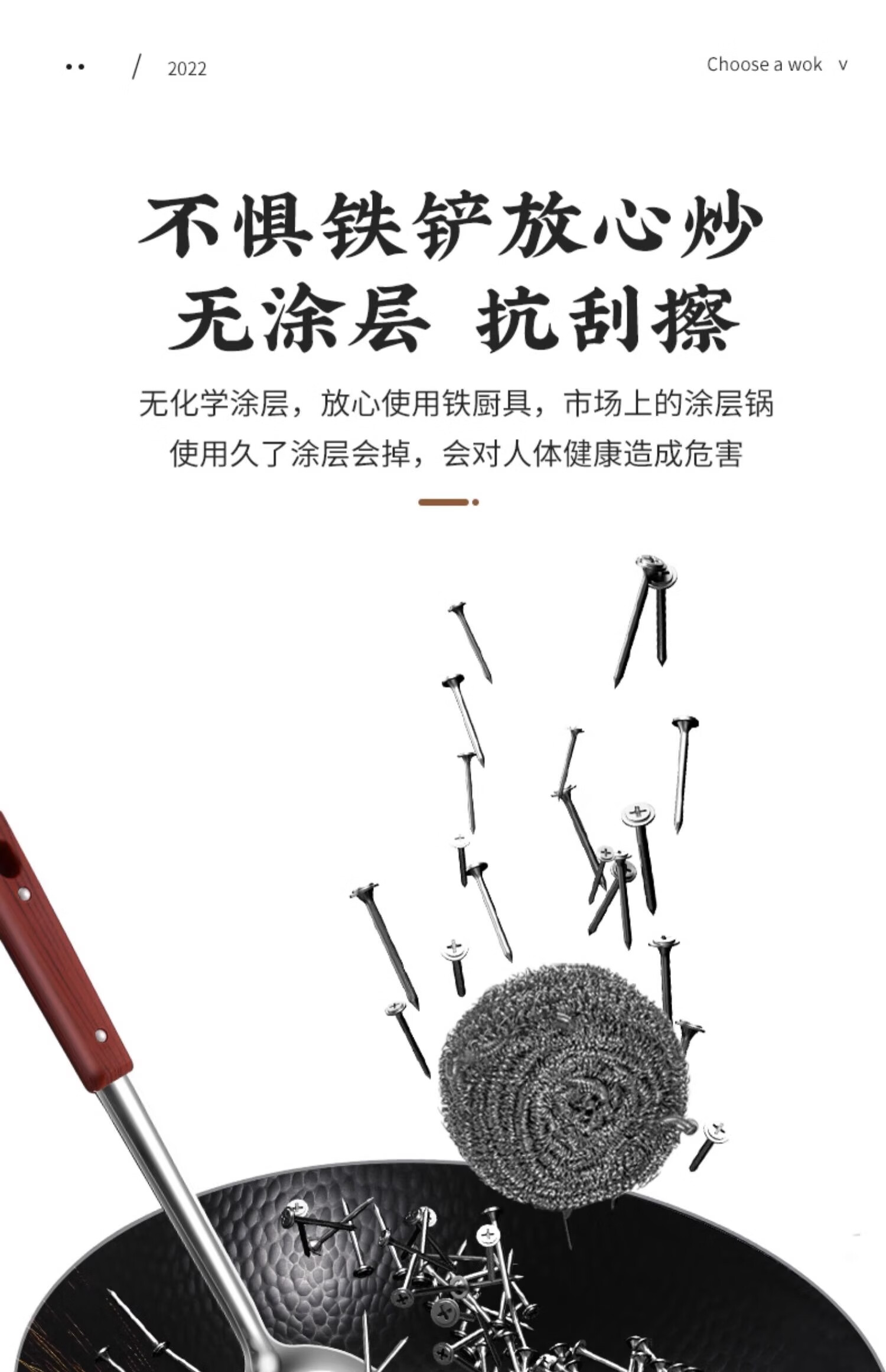 万代传铁锅章丘款炒锅不粘锅锻打无涂层老式炒锅燃气煤气灶通用圆底锅 【4-8人使用】 36cm 手工锻打古法黑锅