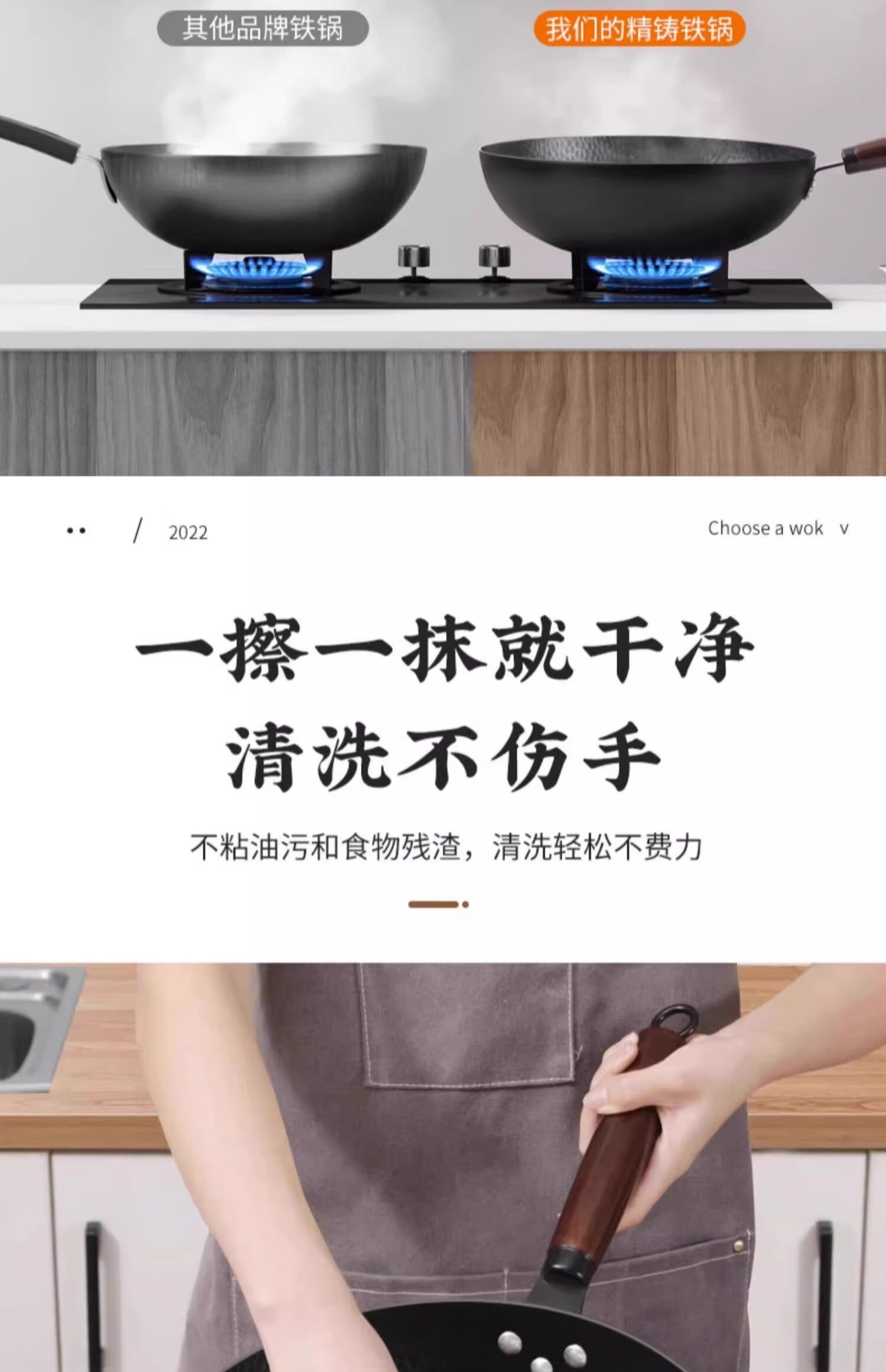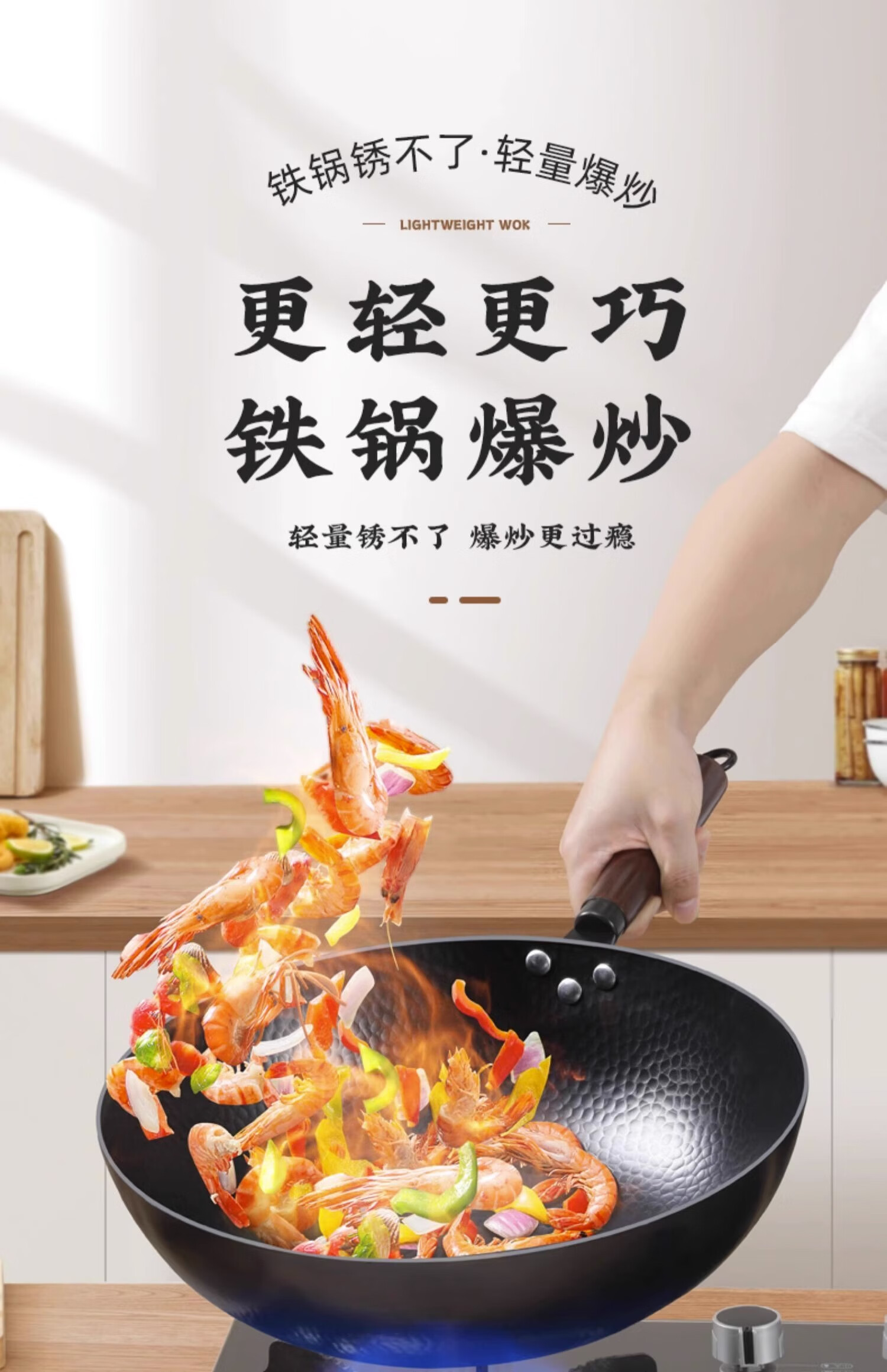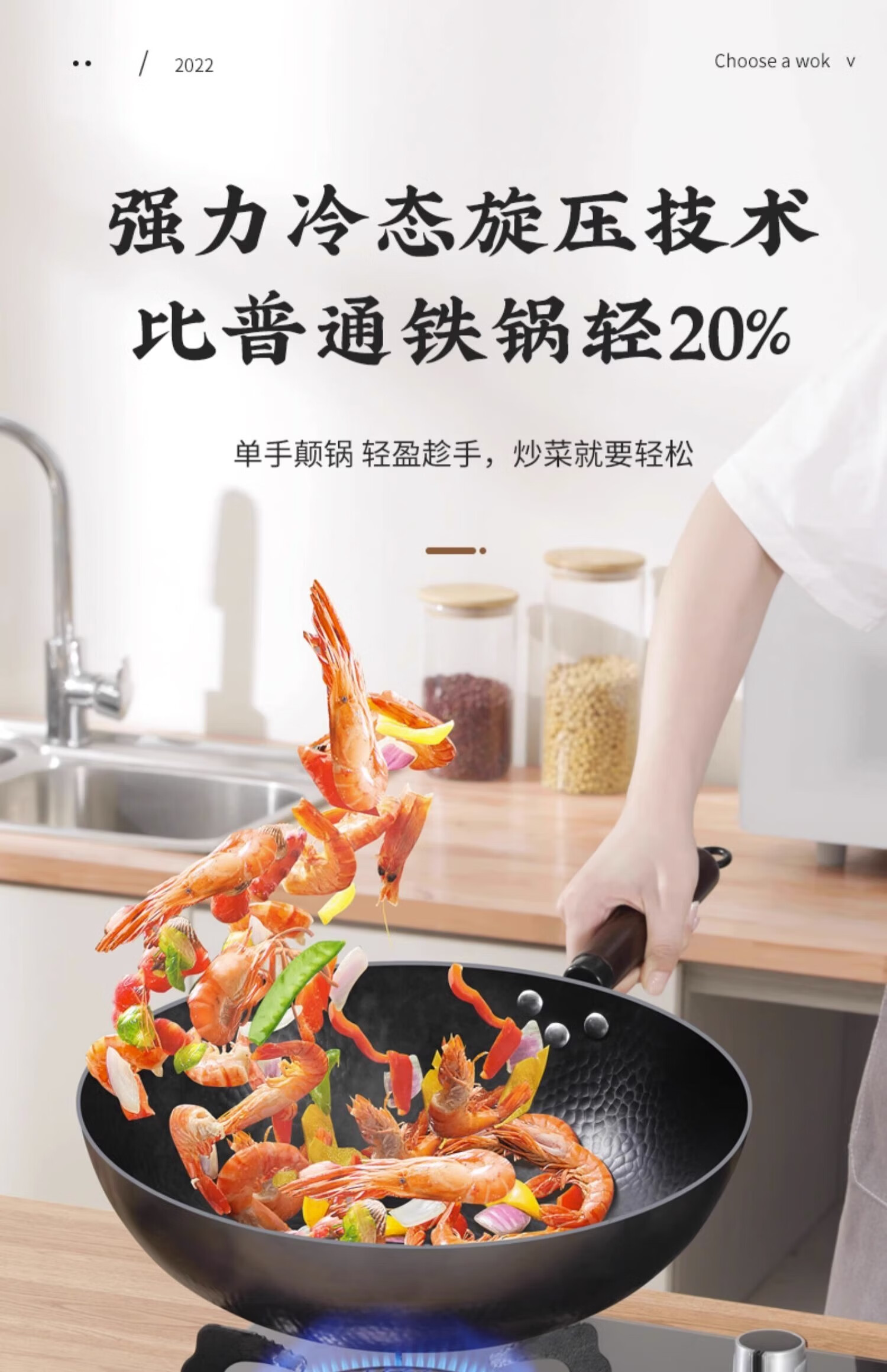 万代传铁锅章丘款炒锅不粘锅锻打无涂层老式炒锅燃气煤气灶通用圆底锅 【4-8人使用】 36cm 手工锻打古法黑锅
