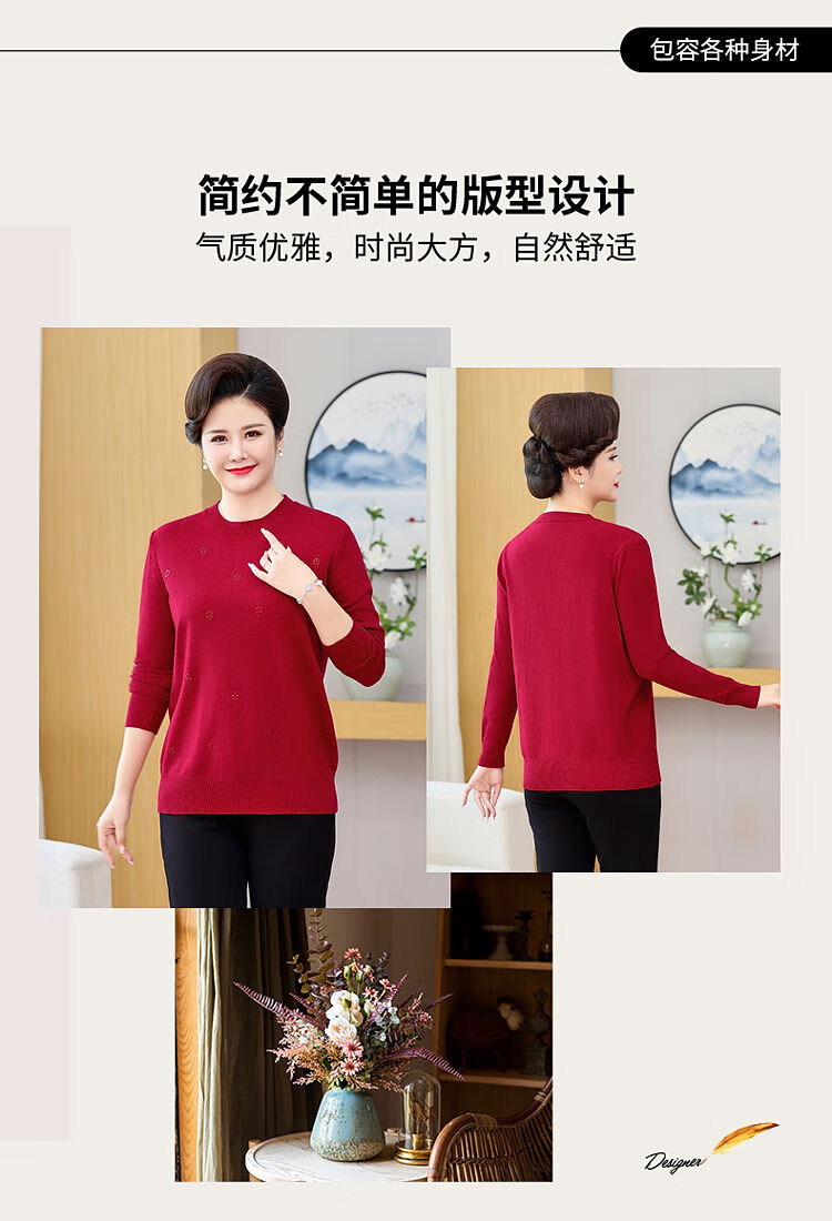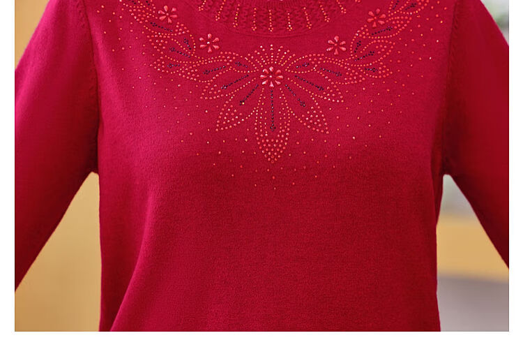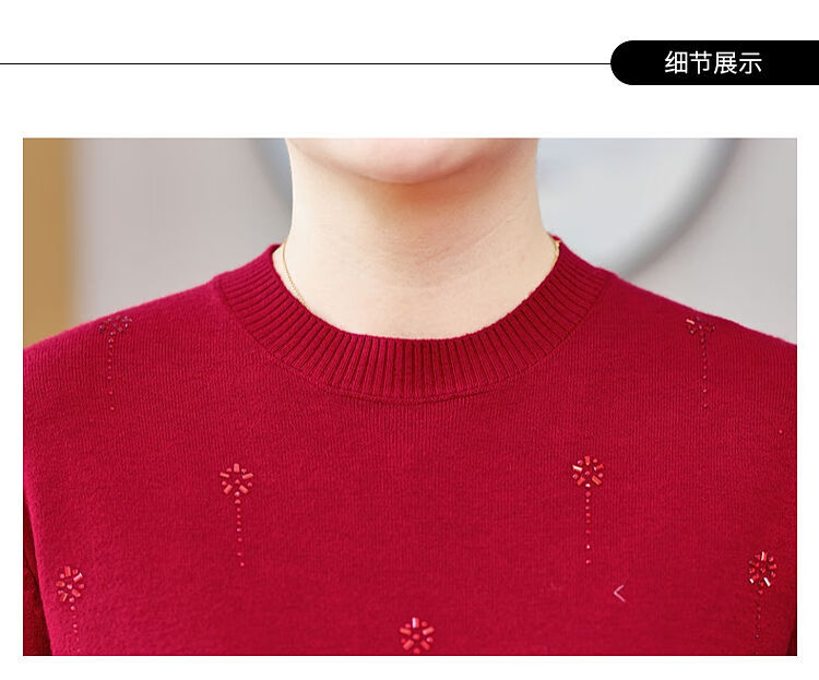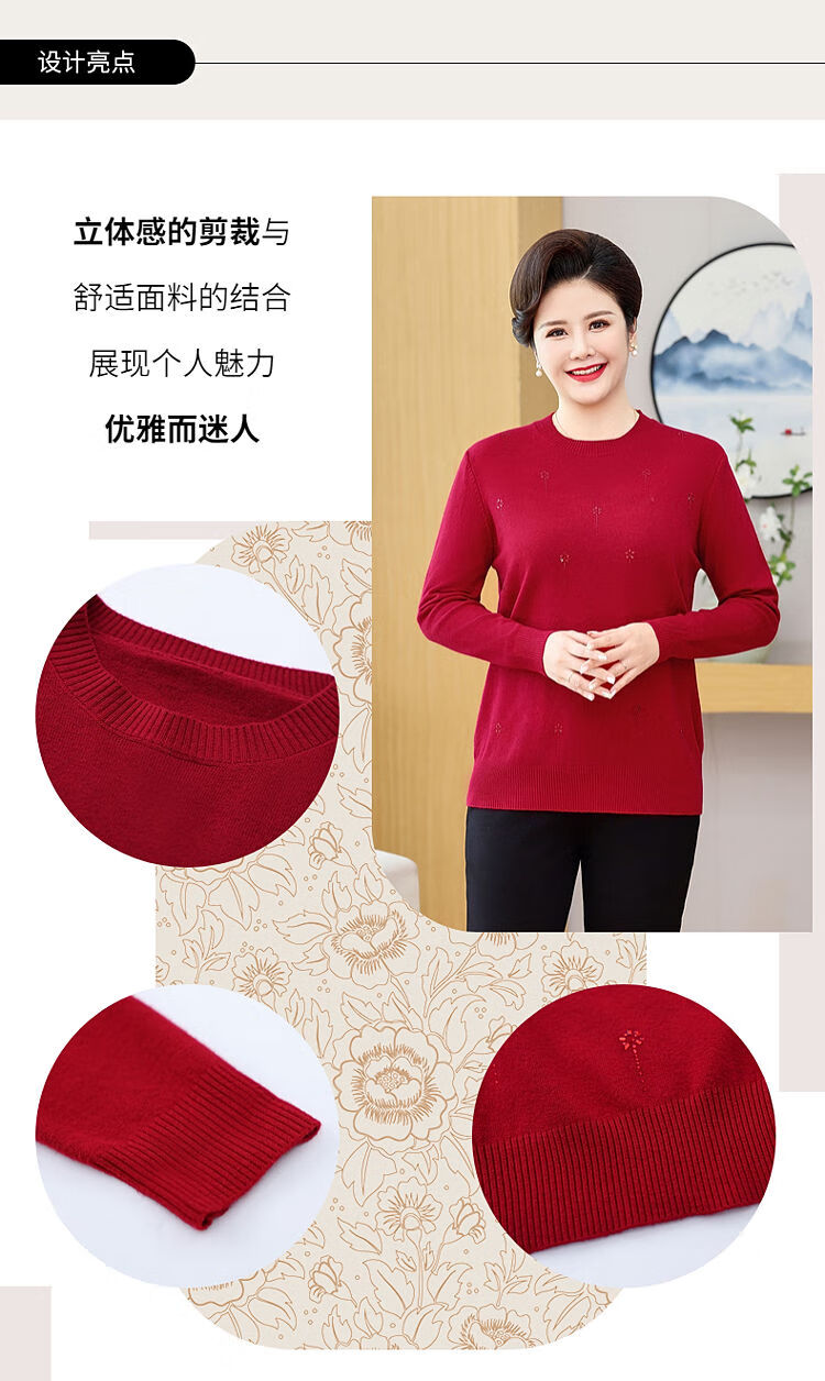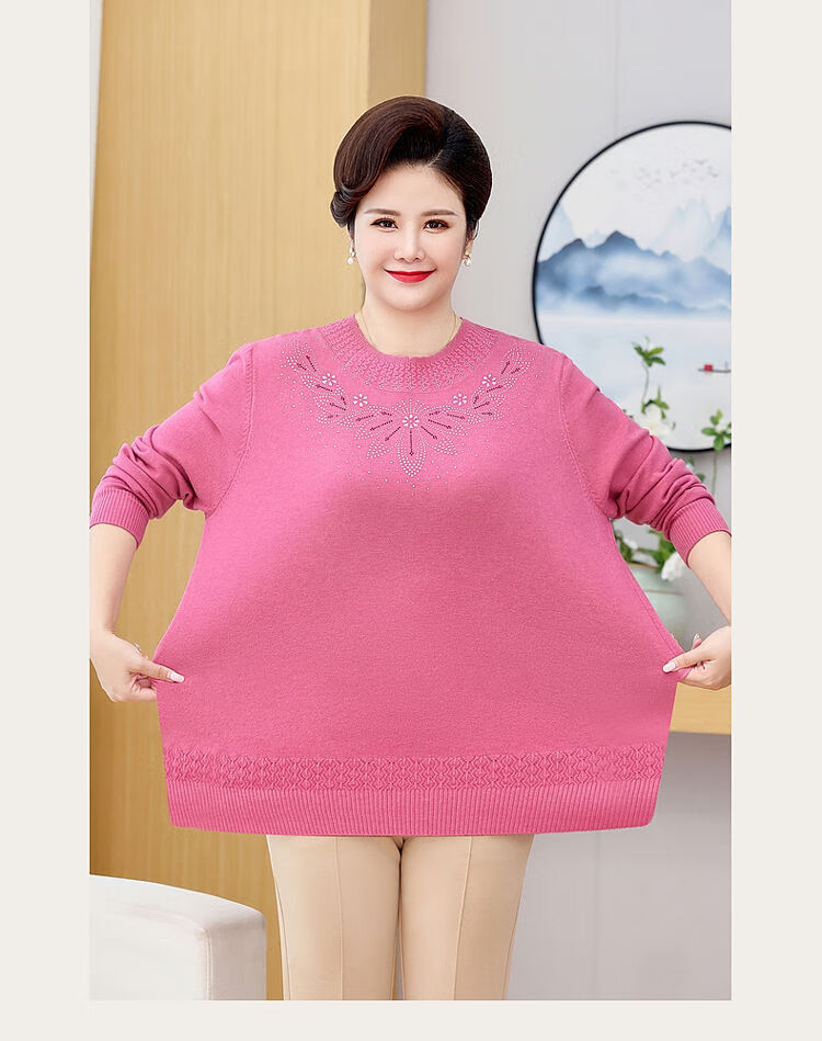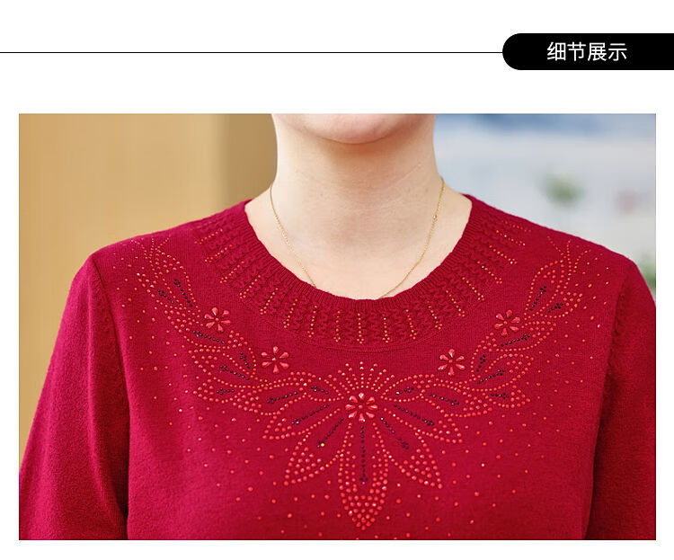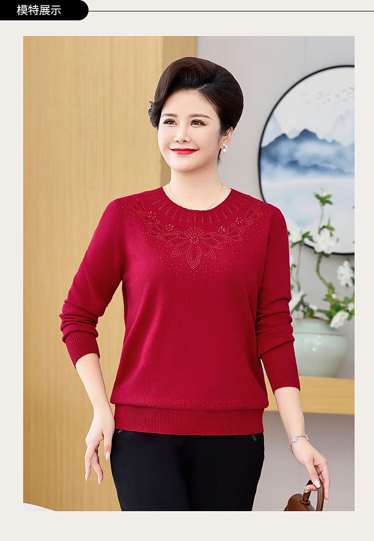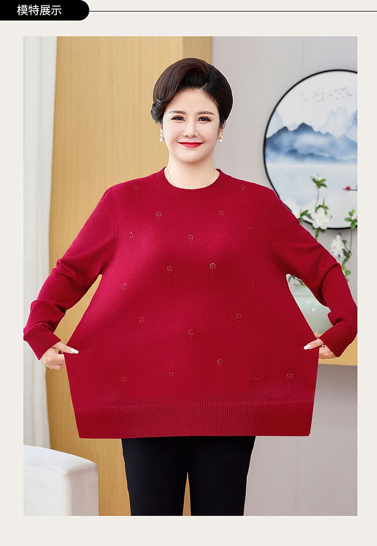 榄舍胖妈妈薄款针织打底女衫秋冬季中老年加肥大码200斤宽松圆领毛衣 红色【A01#】 6XL 建议180-200斤
