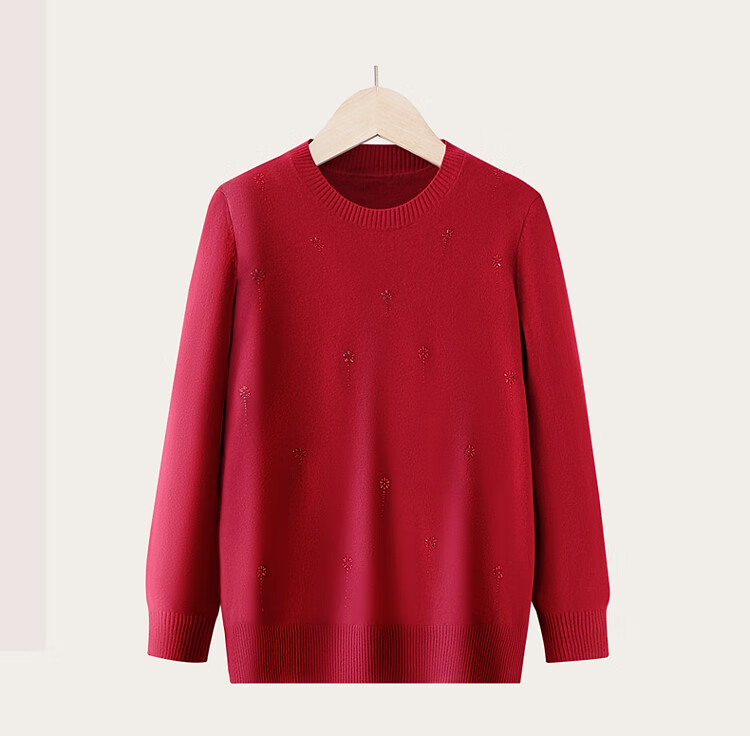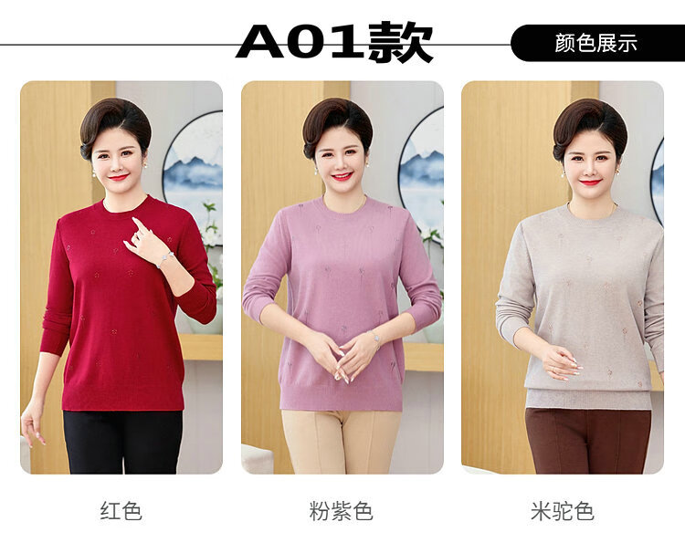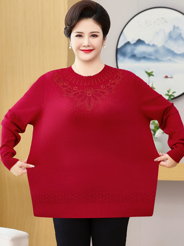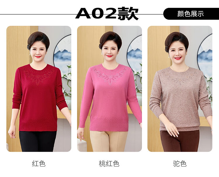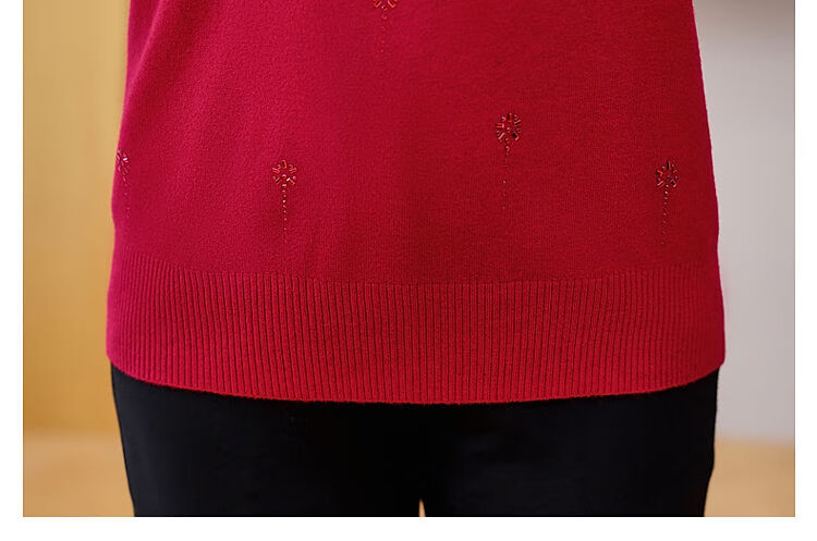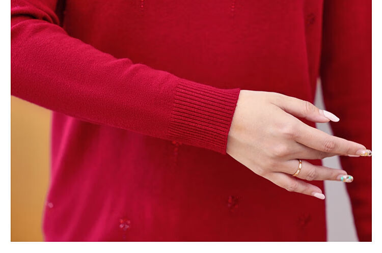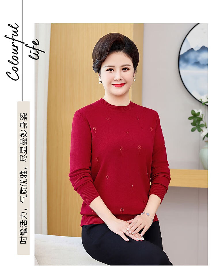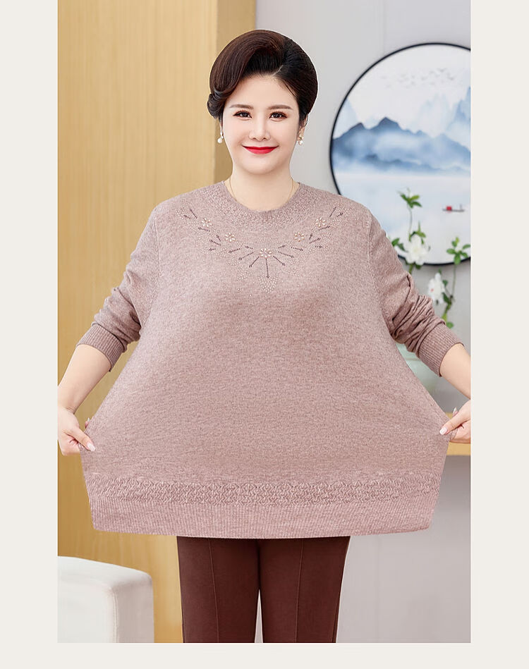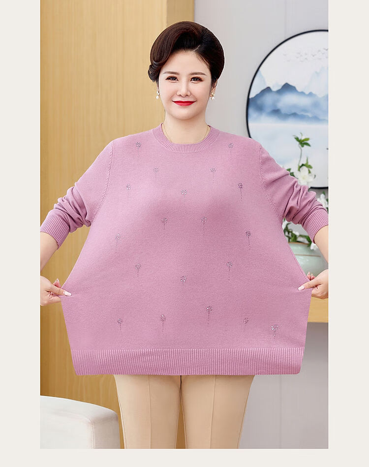 榄舍胖妈妈薄款针织打底女衫秋冬季中老年加肥大码200斤宽松圆领毛衣 红色【A01#】 6XL 建议180-200斤