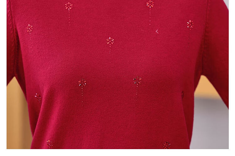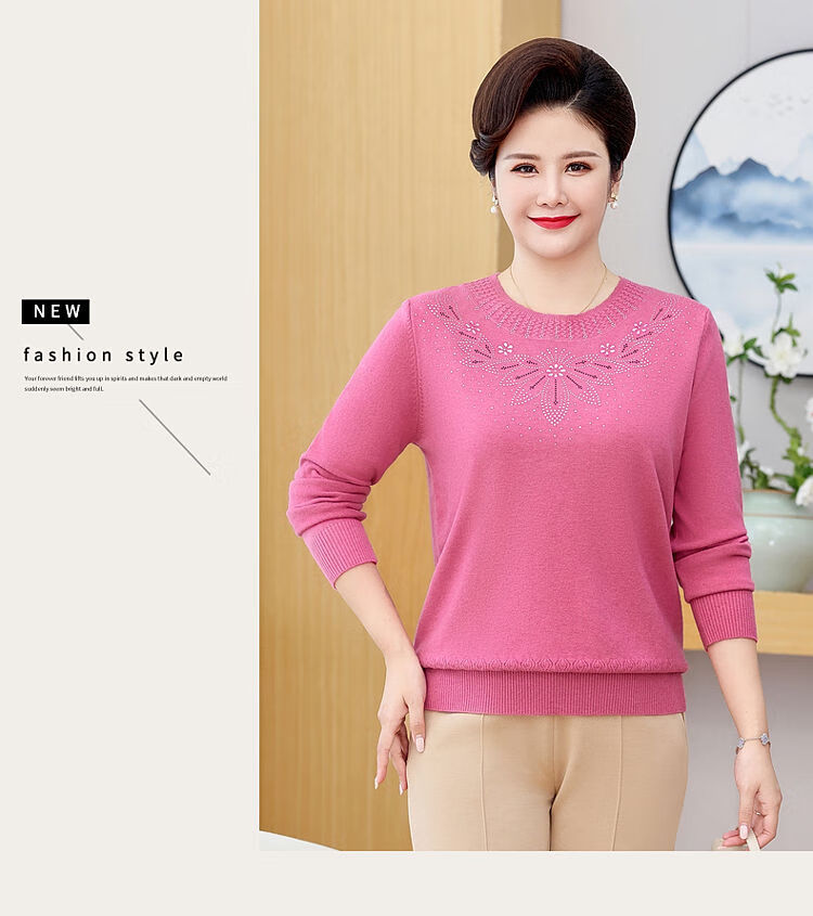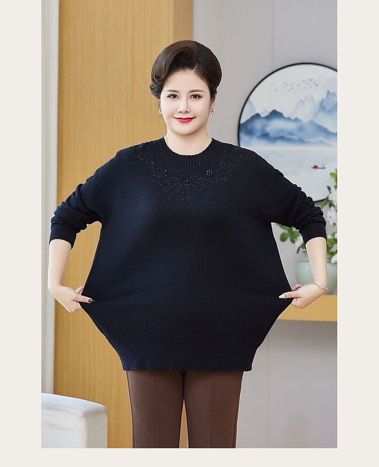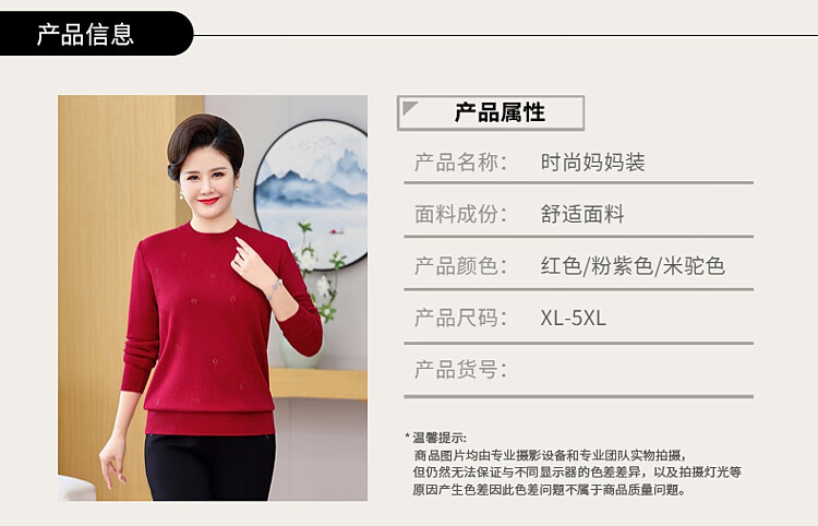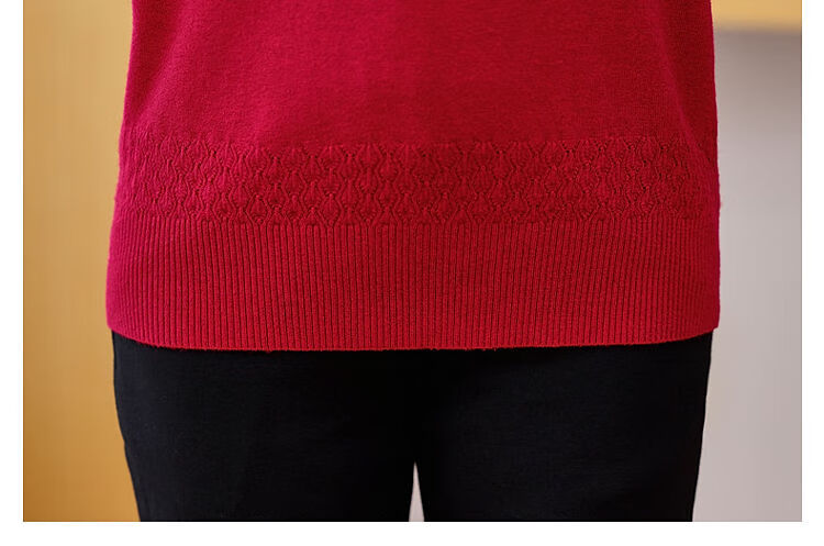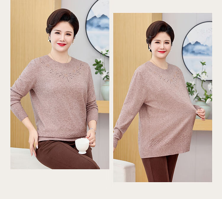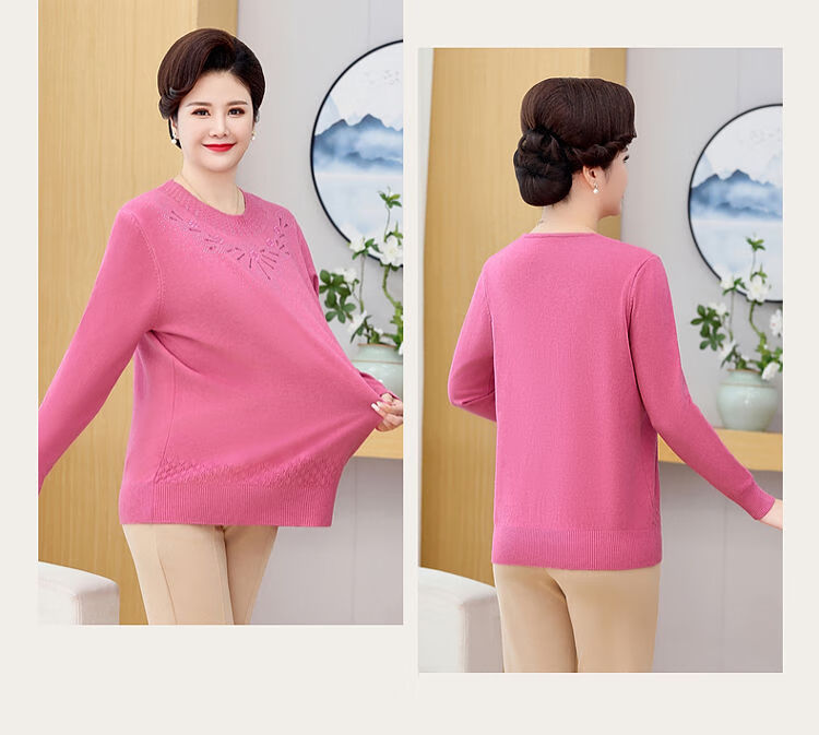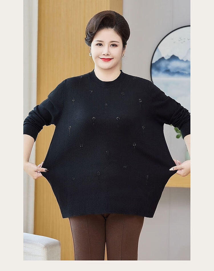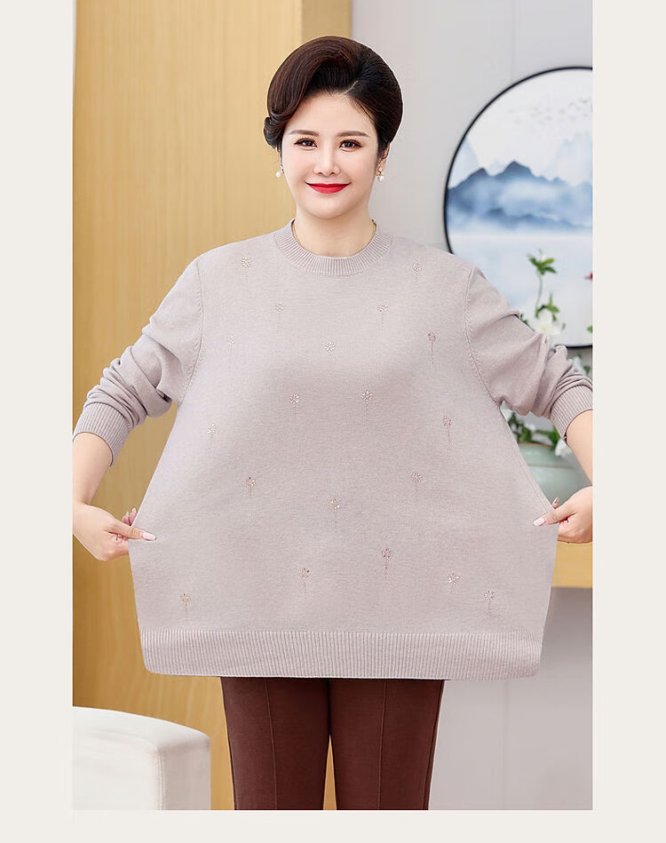 榄舍胖妈妈薄款针织打底女衫秋冬季中老年加肥大码200斤宽松圆领毛衣 红色【A01#】 6XL 建议180-200斤