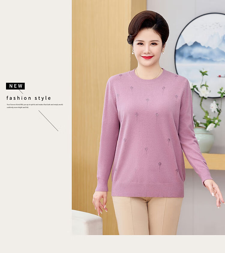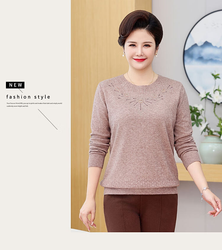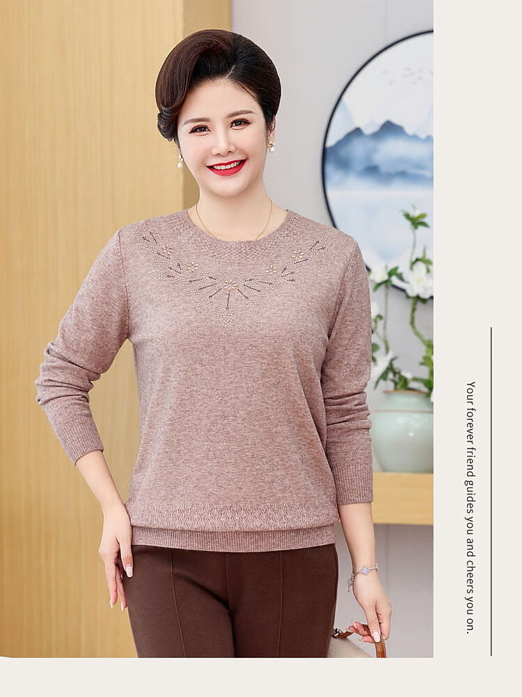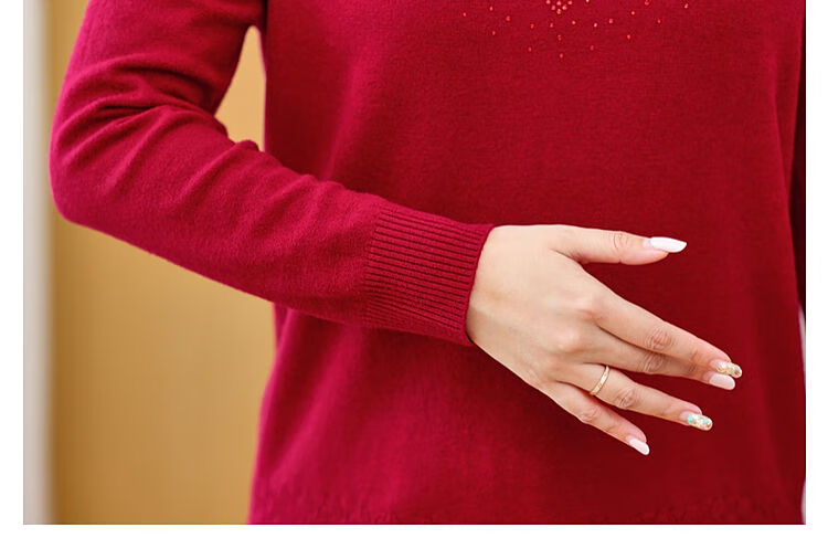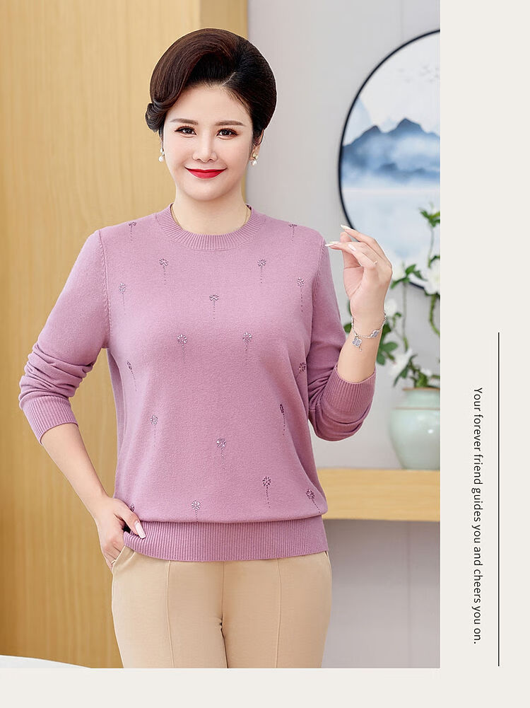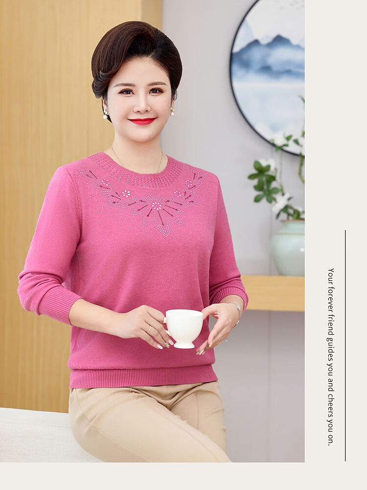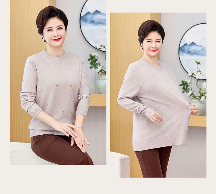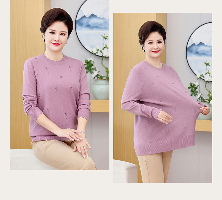 榄舍胖妈妈薄款针织打底女衫秋冬季中老年加肥大码200斤宽松圆领毛衣 红色【A01#】 6XL 建议180-200斤