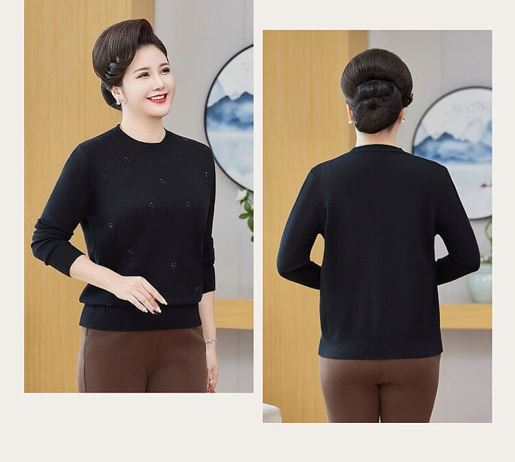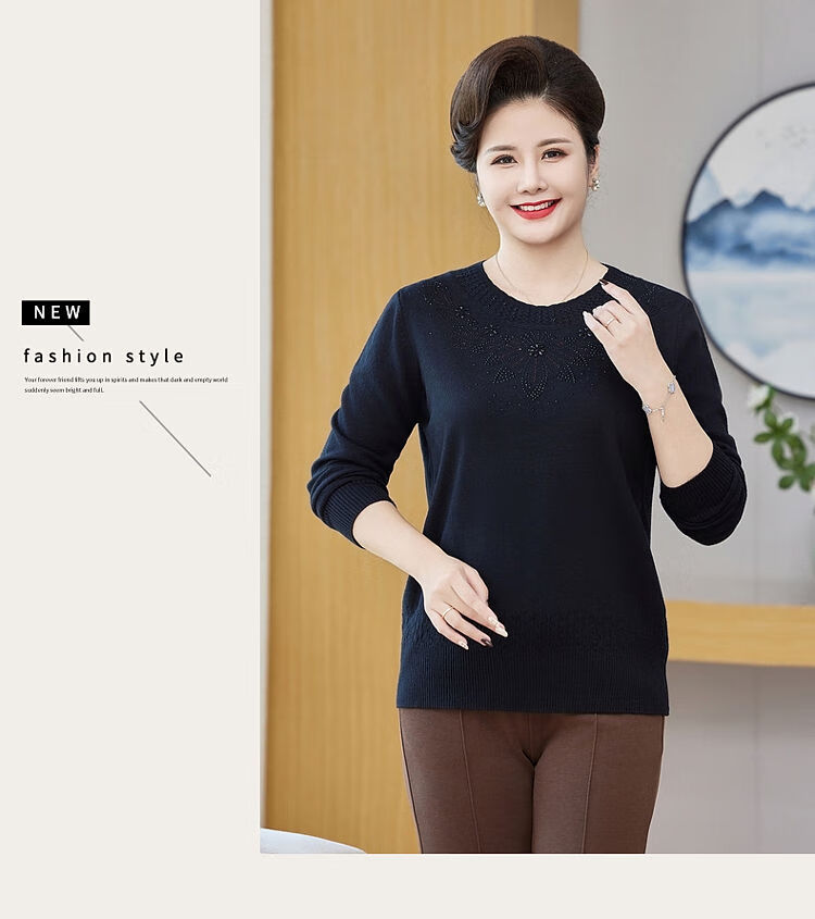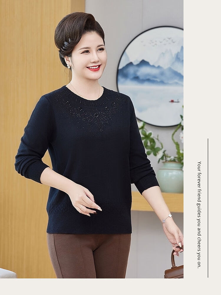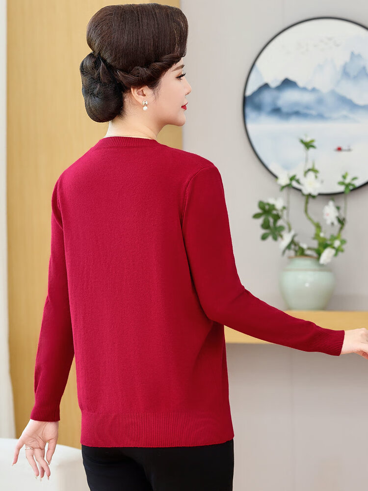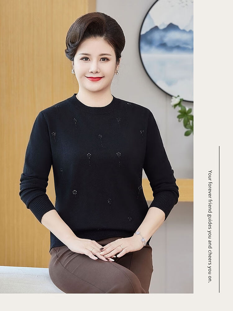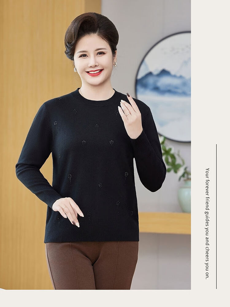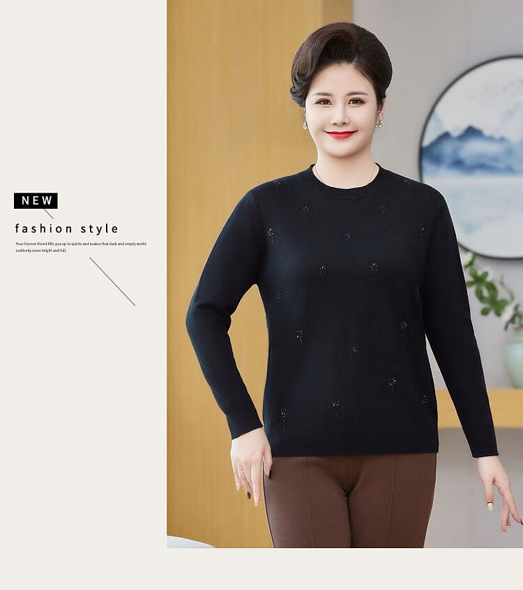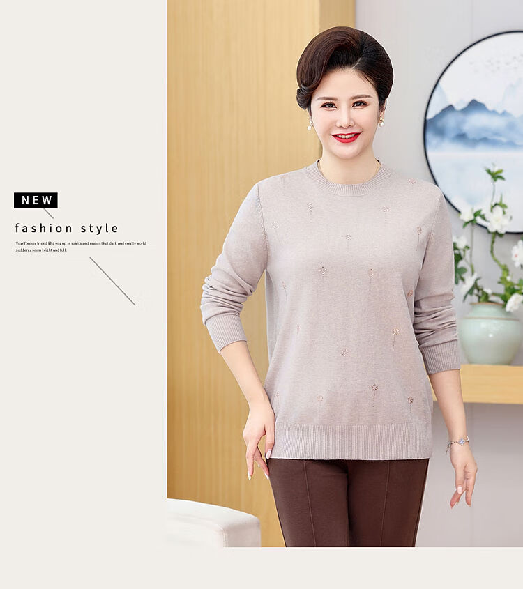 榄舍胖妈妈薄款针织打底女衫秋冬季中老年加肥大码200斤宽松圆领毛衣 红色【A01#】 6XL 建议180-200斤