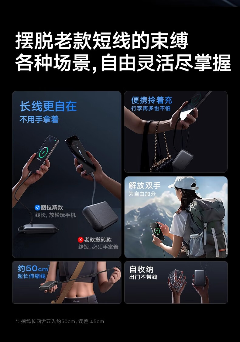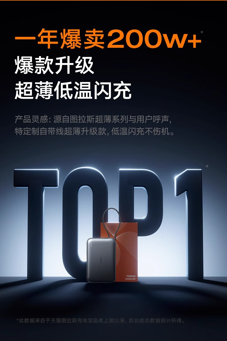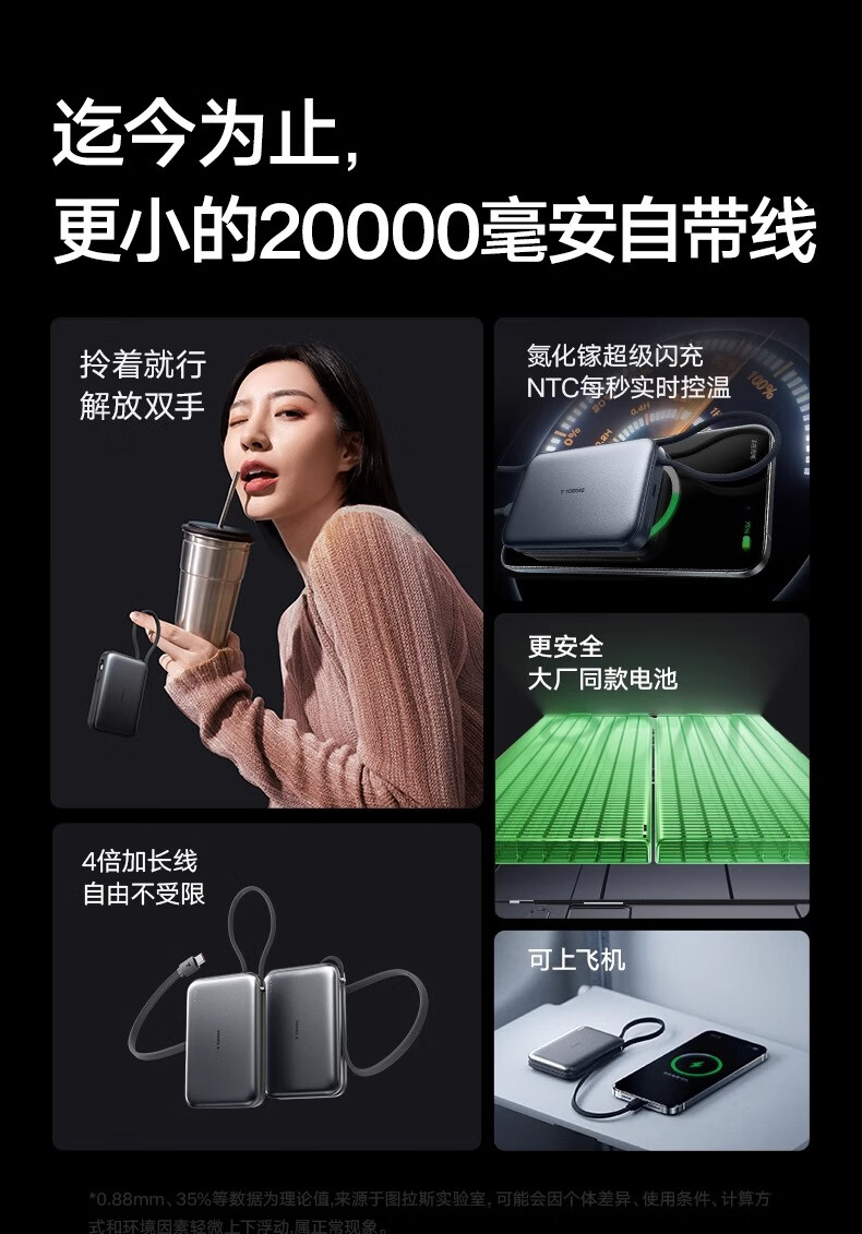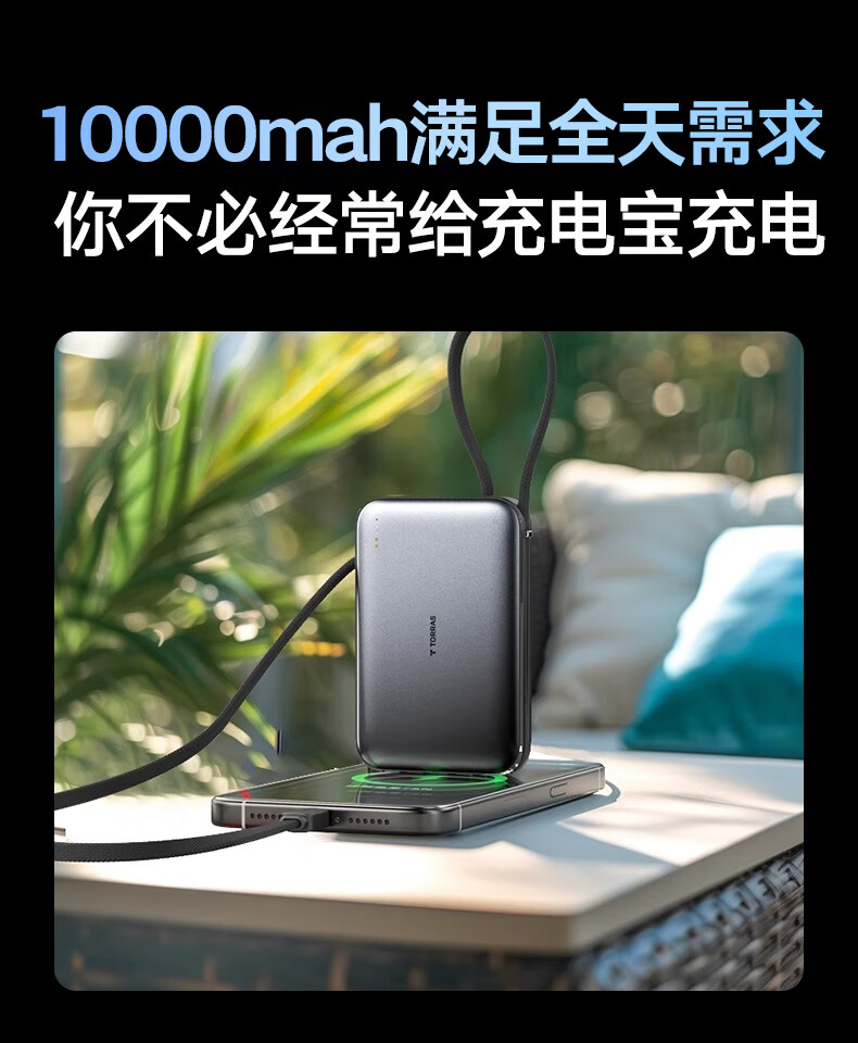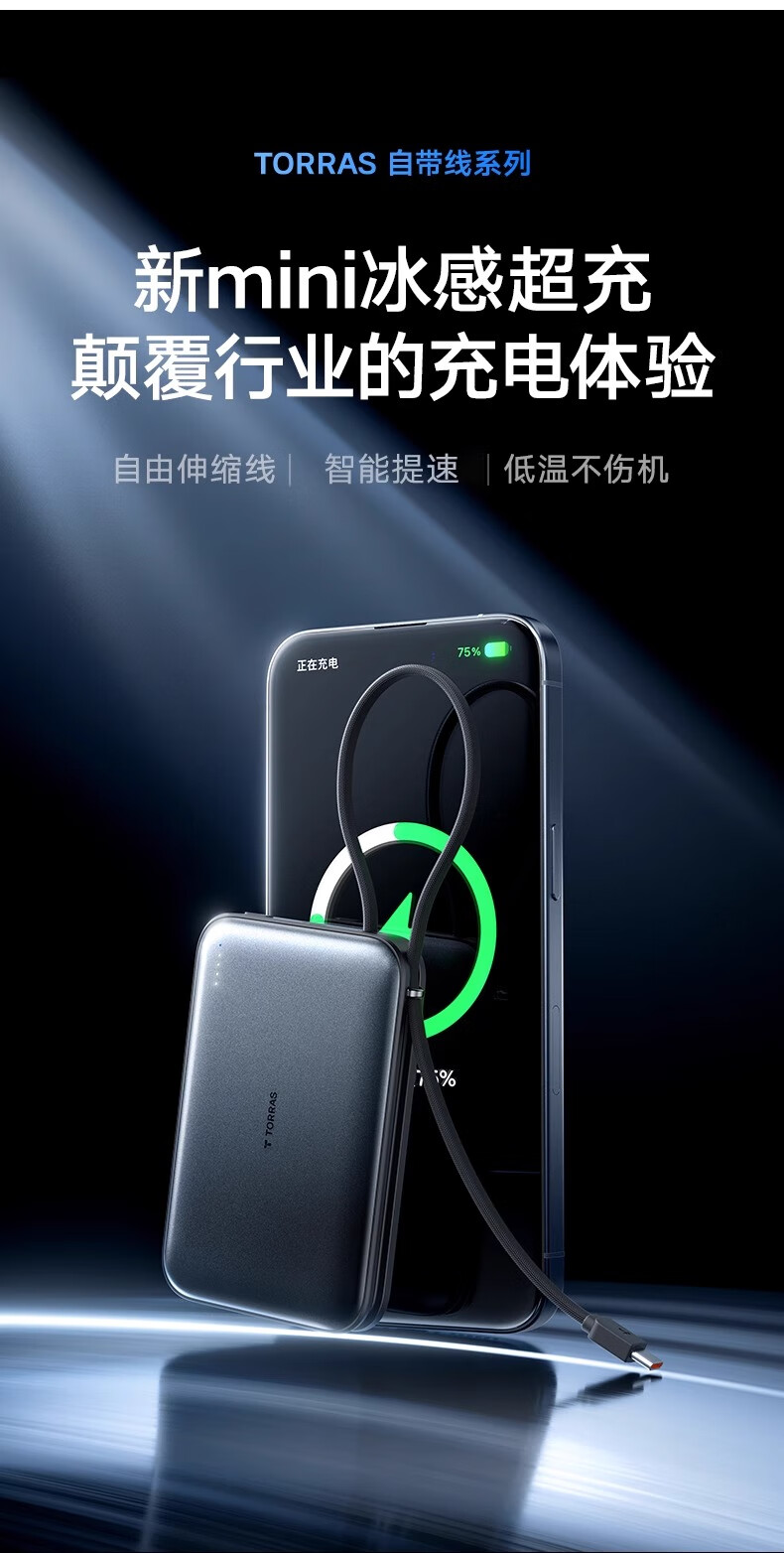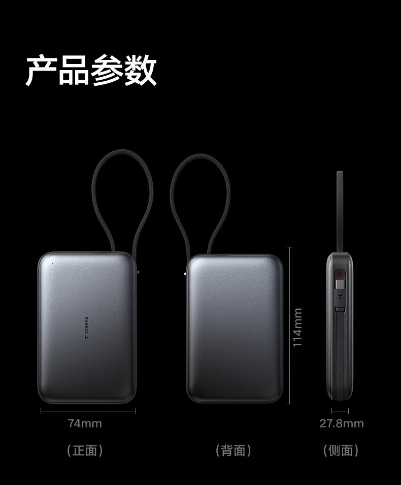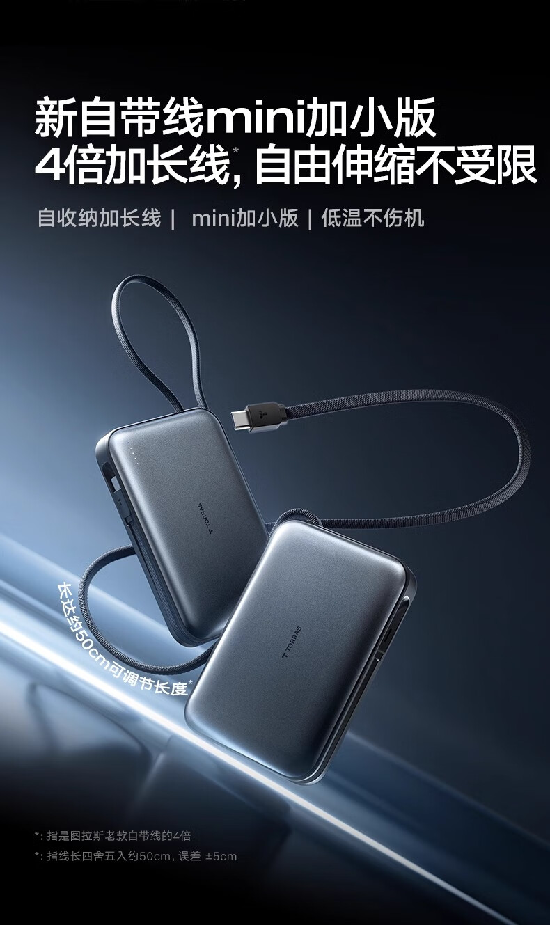 图拉斯自带线充电宝【新国标3C认证】超薄20000毫安小巧便携适用华为苹果17 16 15 14Promax可上飞机 雪山白丨35W快充丨2W毫安 【新国标3C安全认证丨大容量超快充】