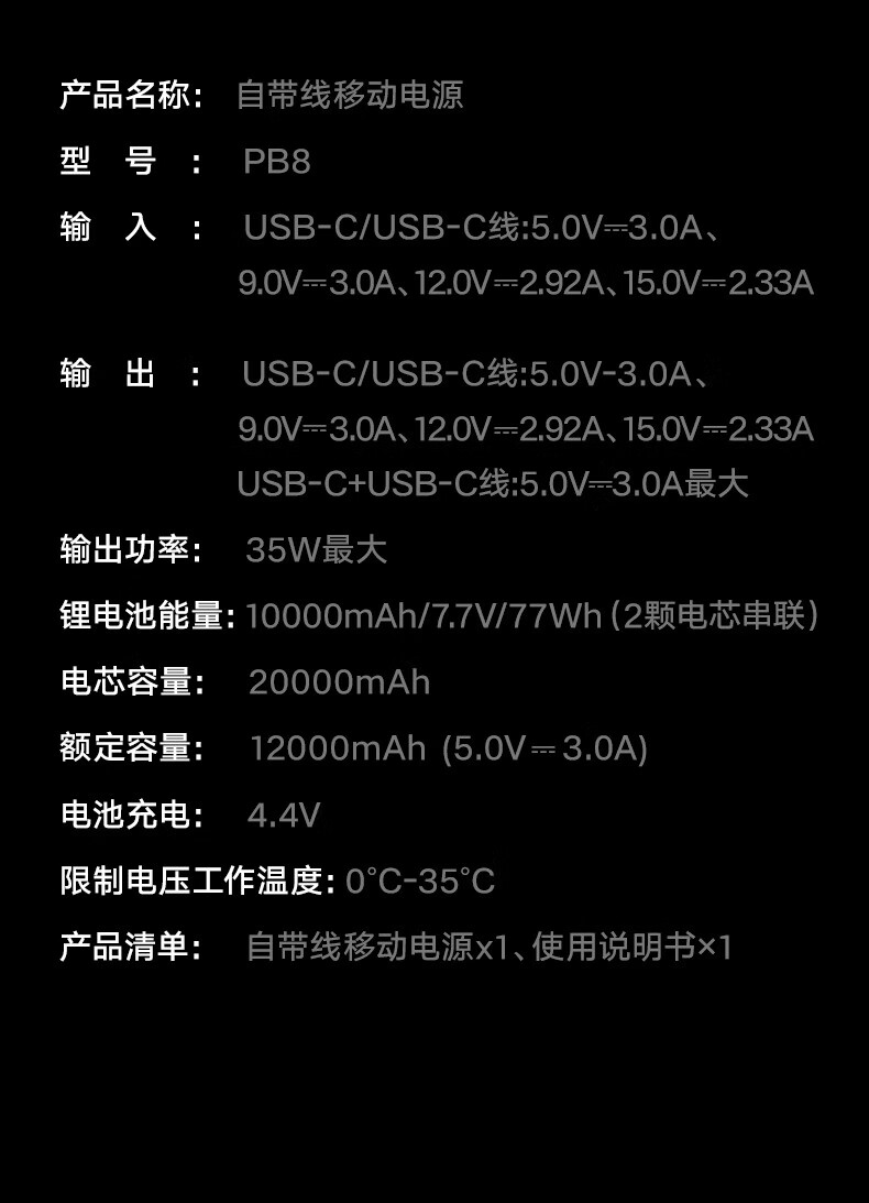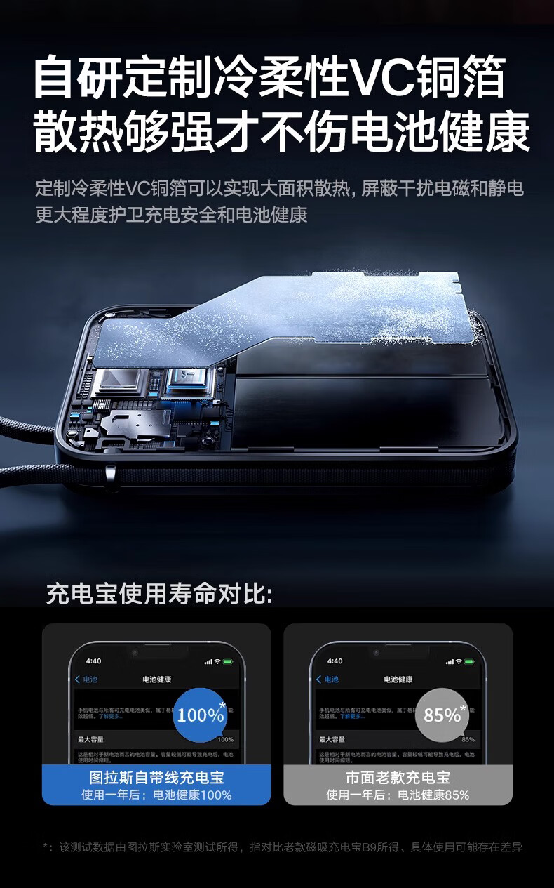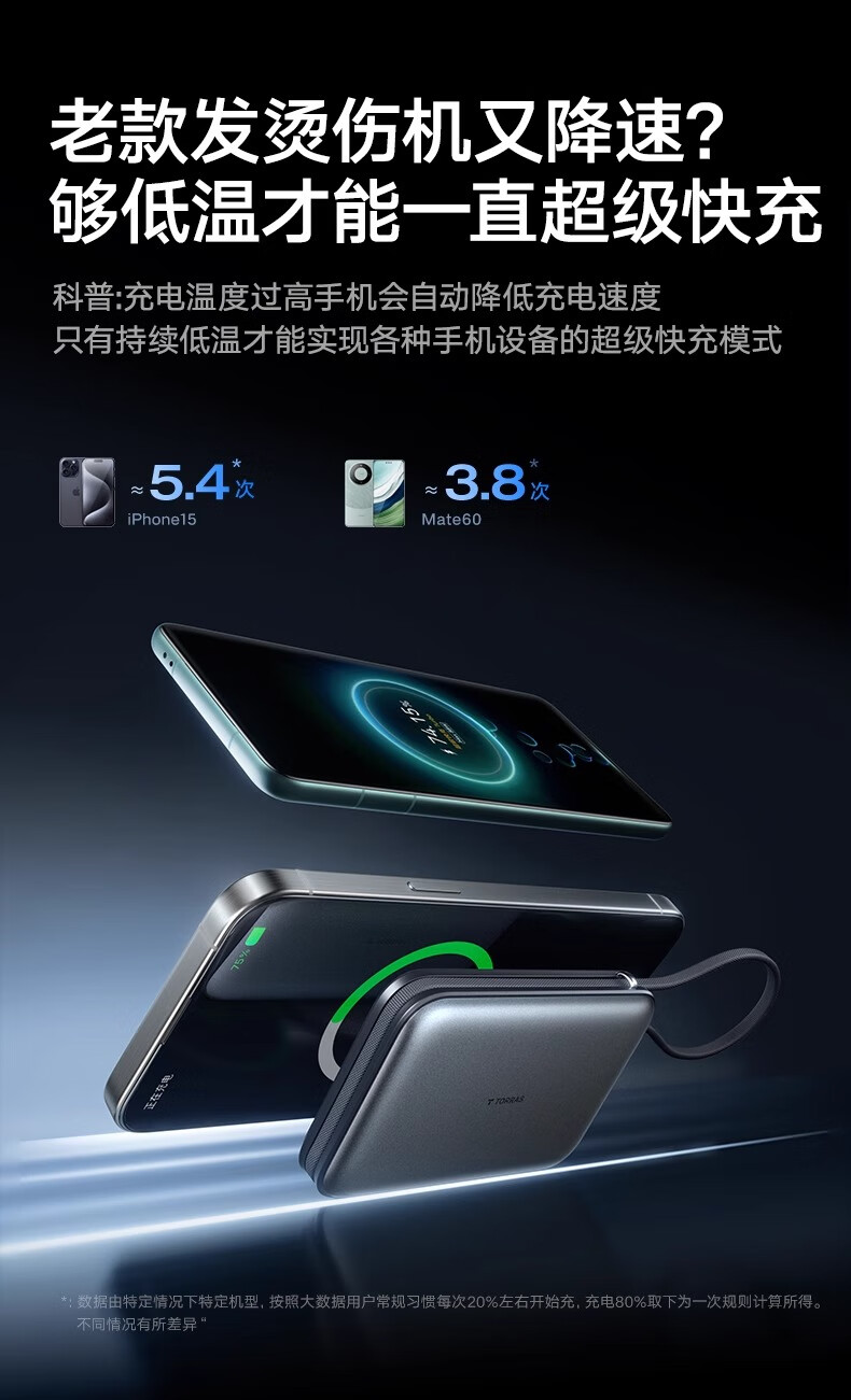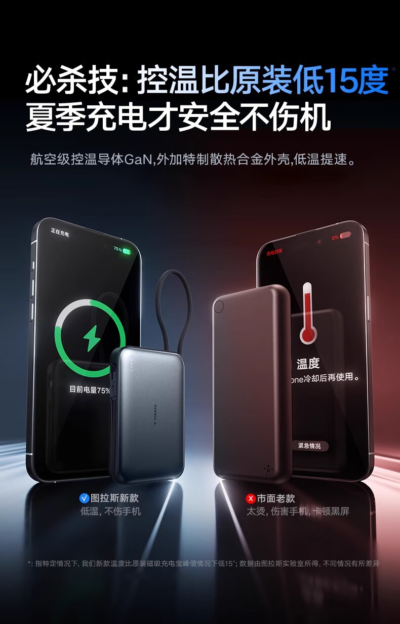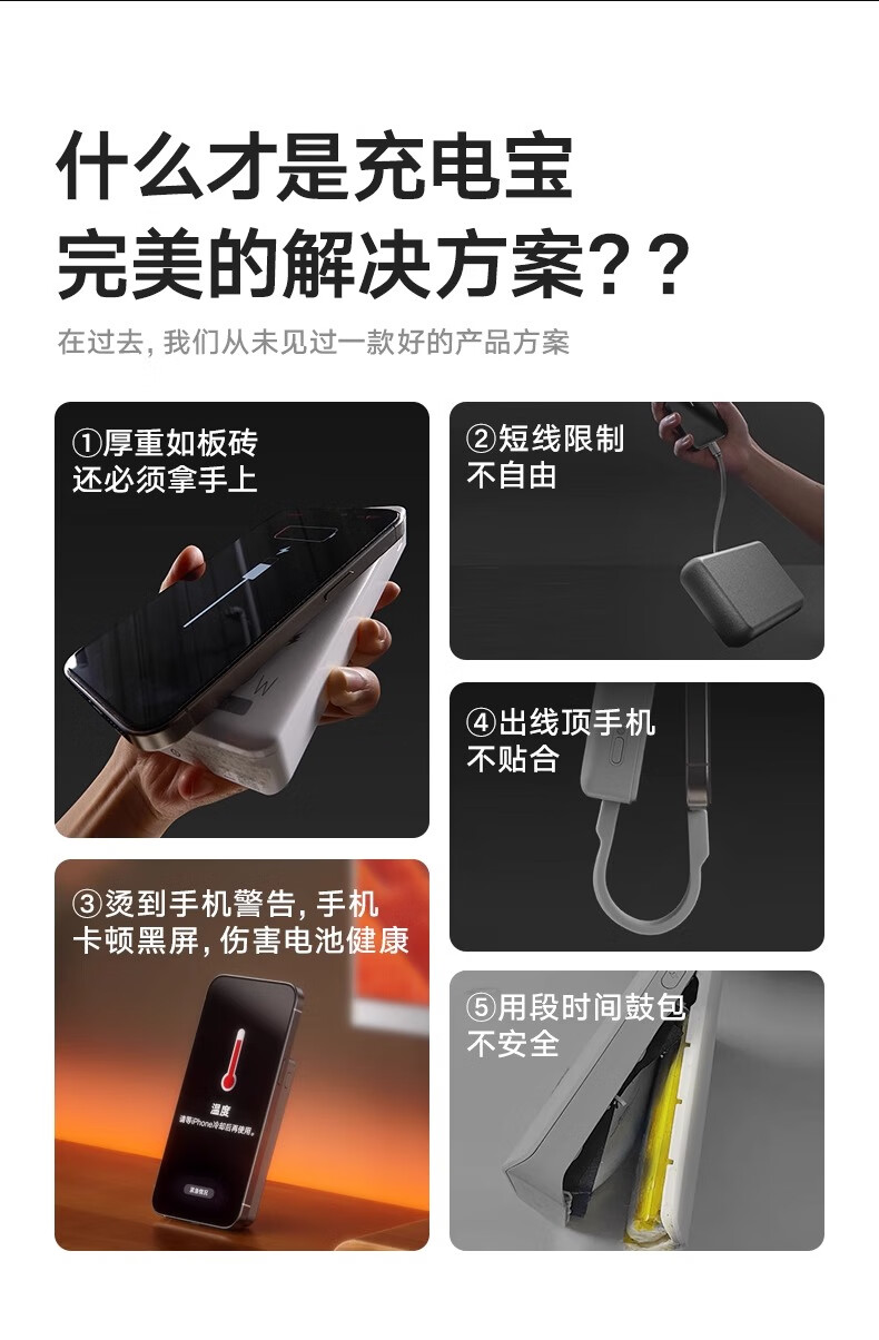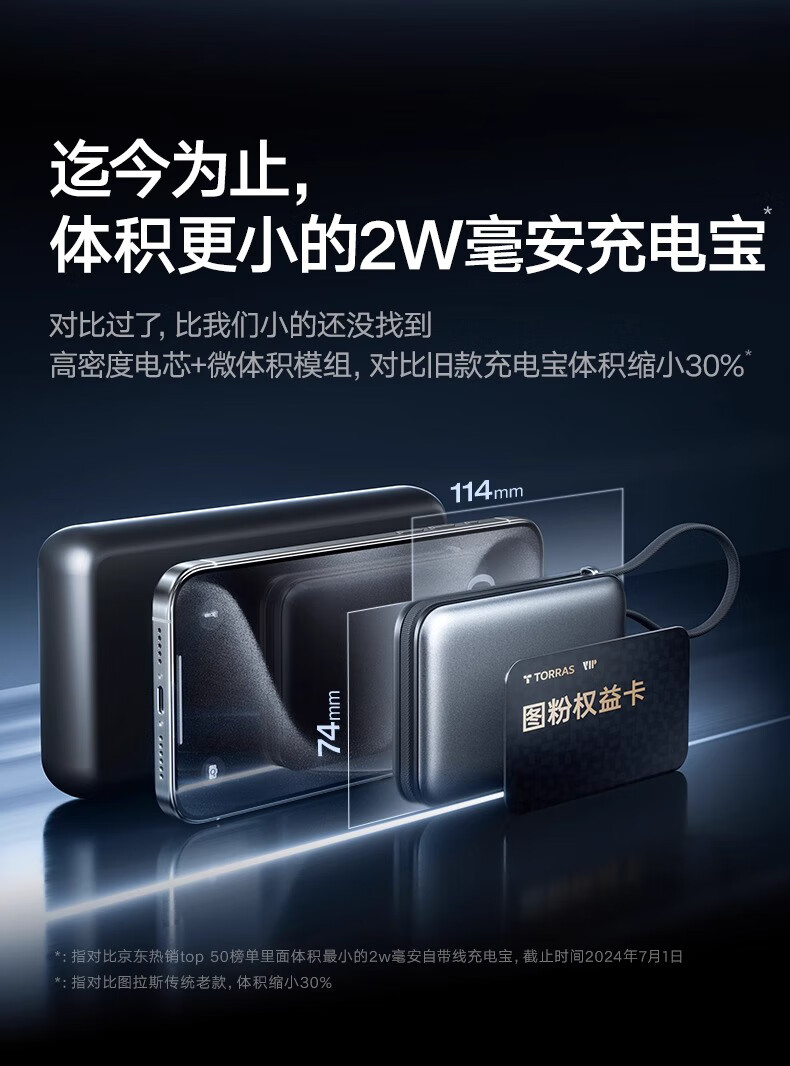 图拉斯自带线充电宝【新国标3C认证】超薄20000毫安小巧便携适用华为苹果17 16 15 14Promax可上飞机 雪山白丨35W快充丨2W毫安 【新国标3C安全认证丨大容量超快充】