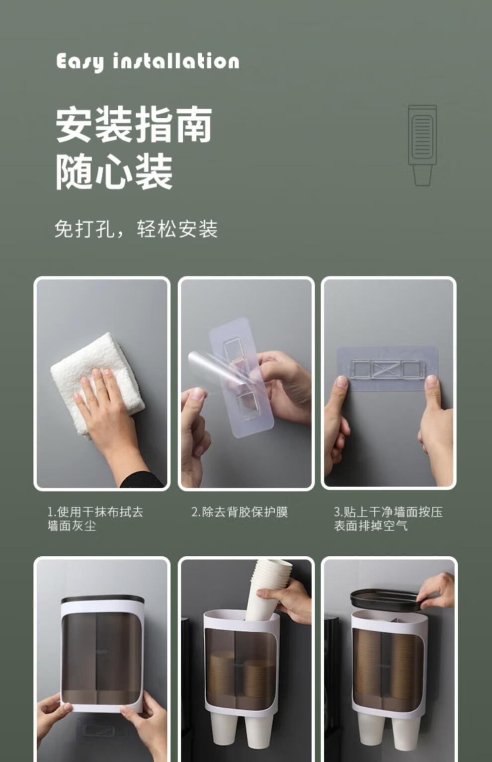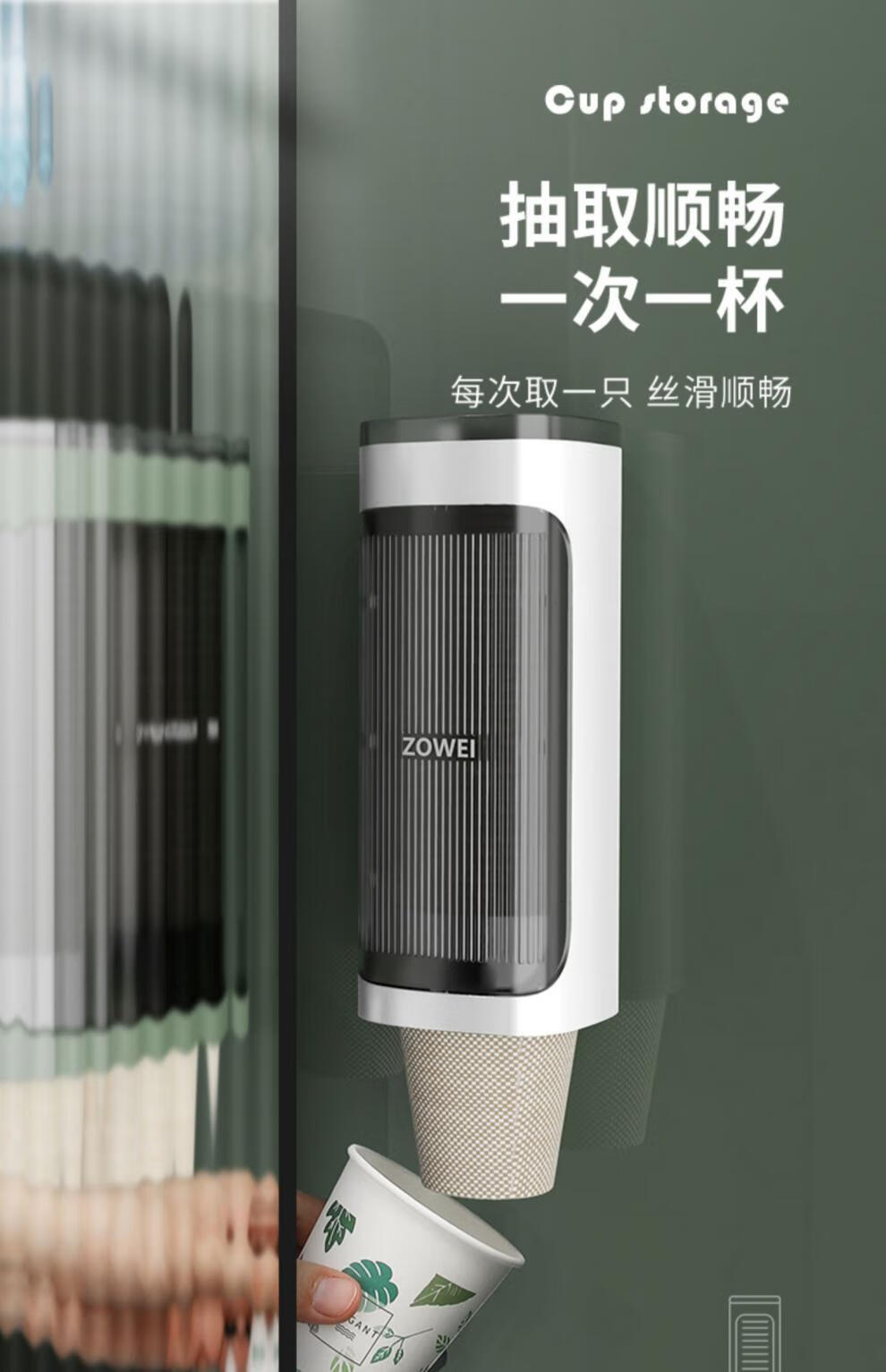 胖东来同款一次性杯子挂架动取杯器家用挂壁式纸杯架创意水杯收纳 升级加厚新款-象牙白(大小纸杯通用)