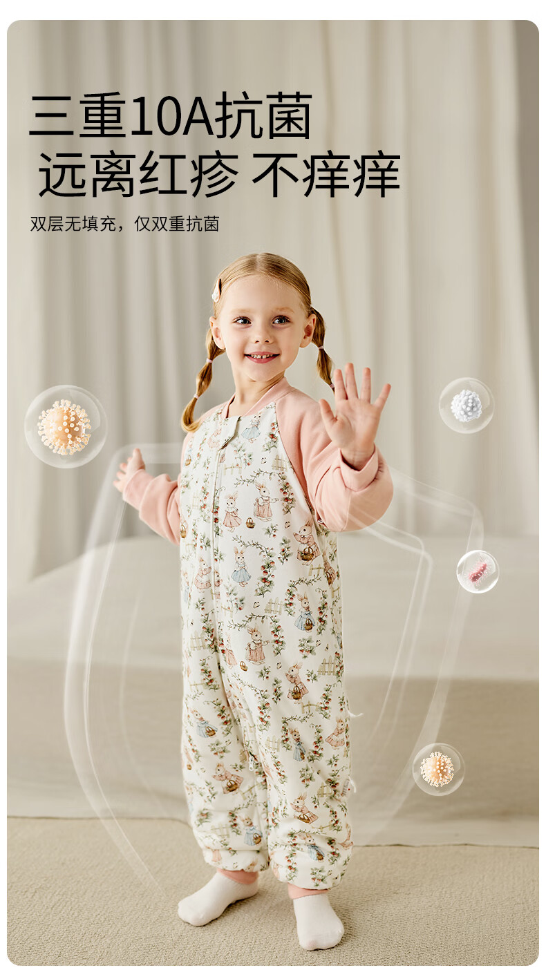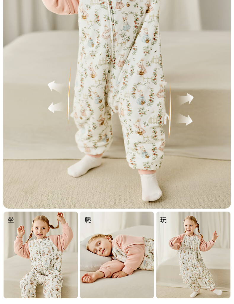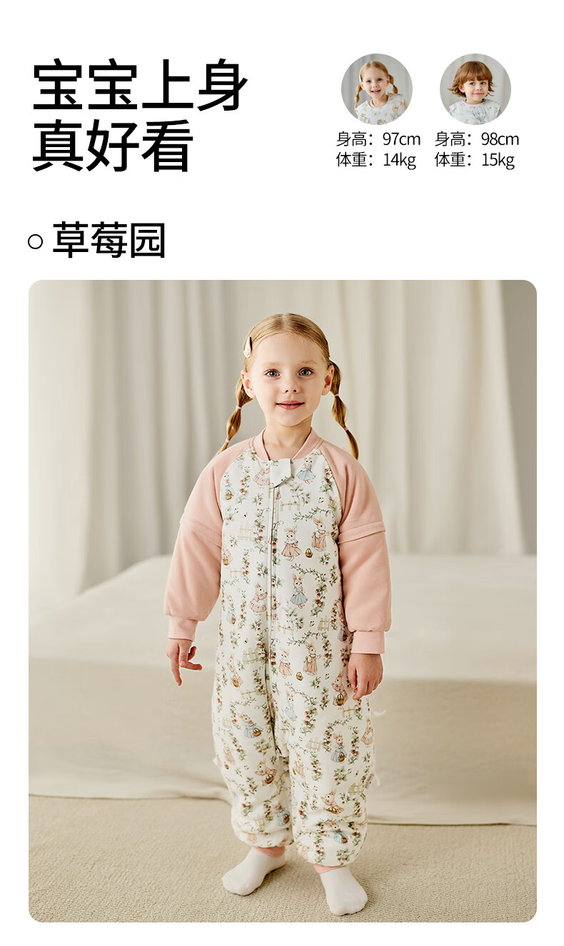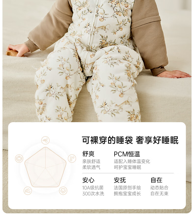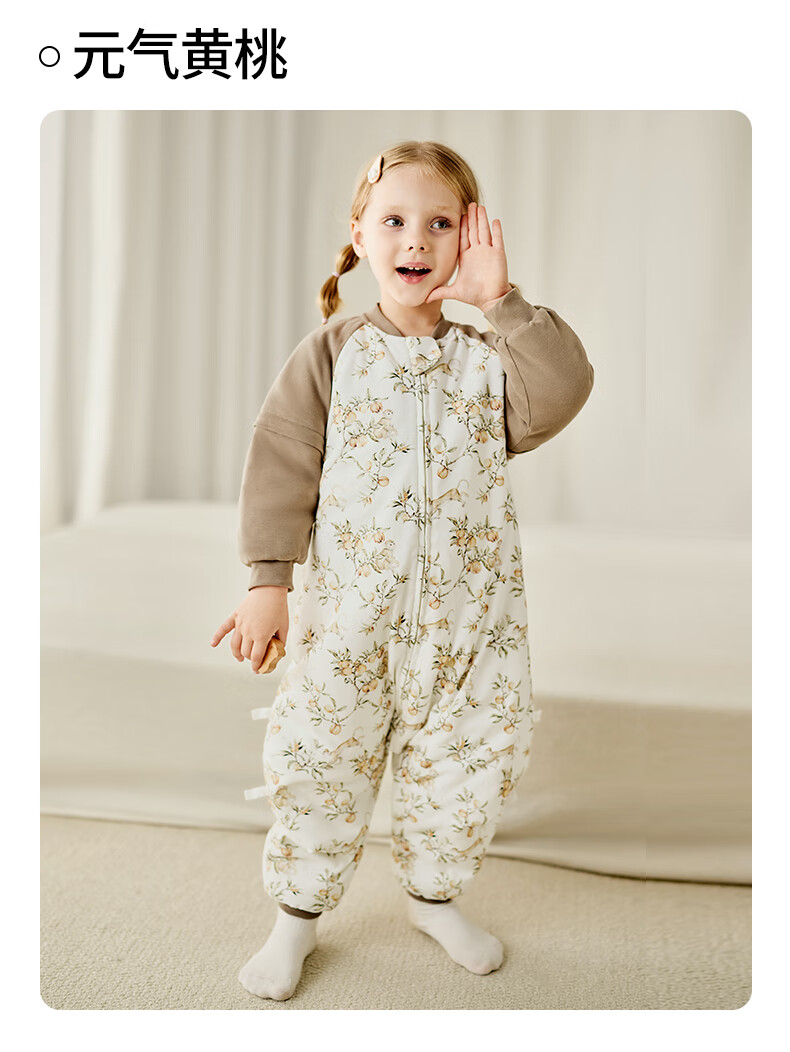 ELLE BABY婴幼儿分腿睡袋儿童睡衣冬日恒温防踢被袖子可拆卸抗菌A类可机洗 原始森林 双层90码