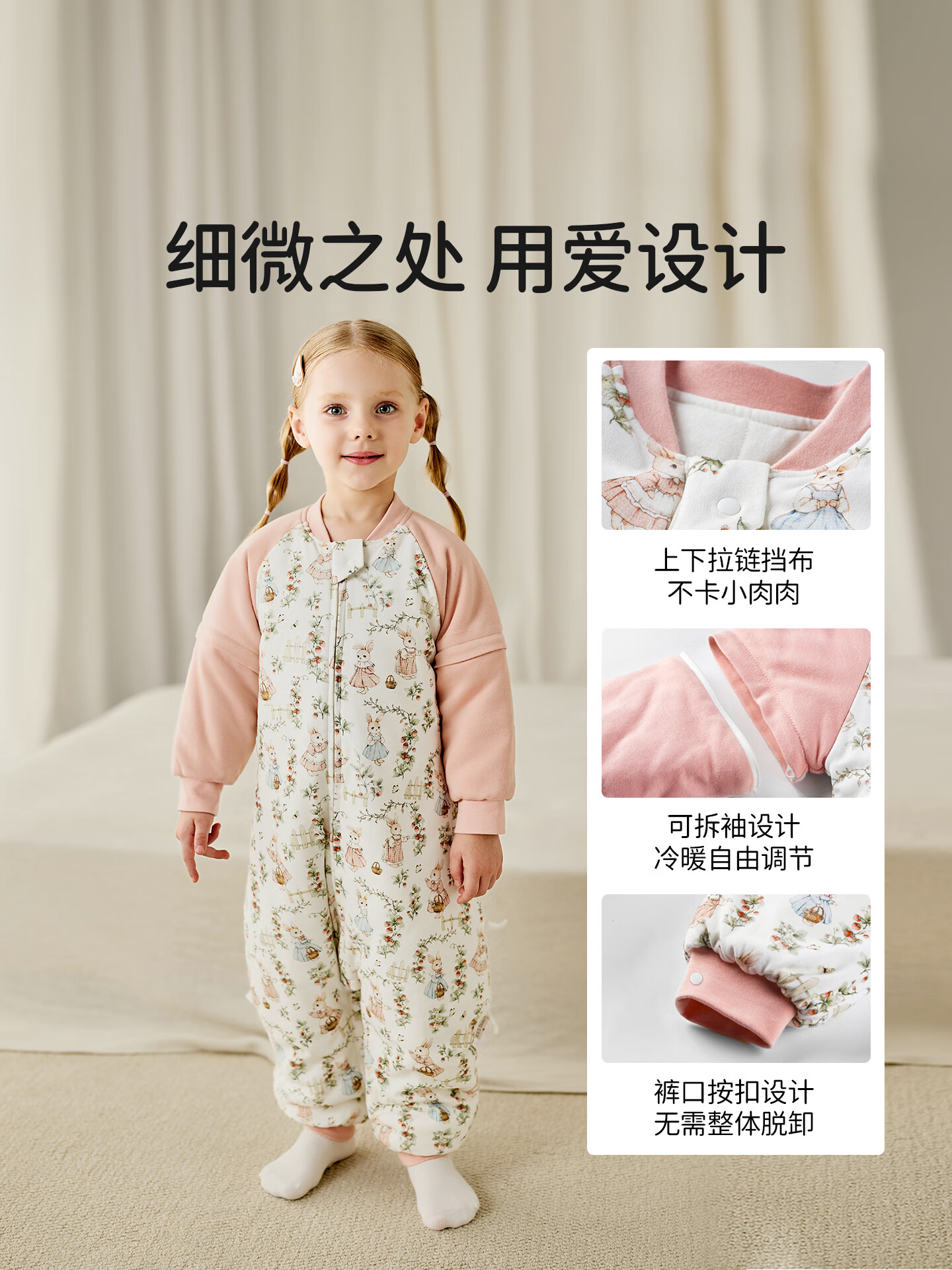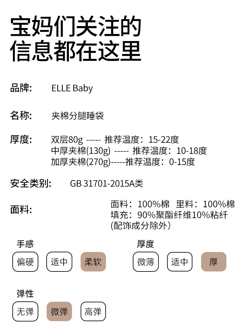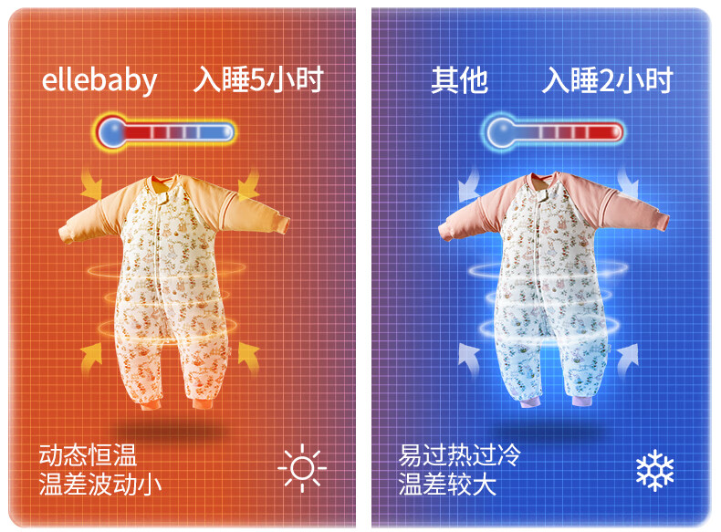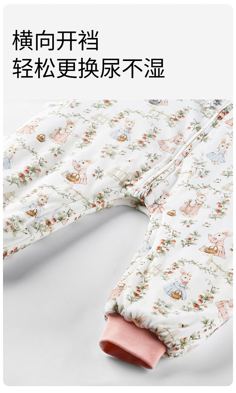 ELLE BABY婴幼儿分腿睡袋儿童睡衣冬日恒温防踢被袖子可拆卸抗菌A类可机洗 原始森林 双层90码