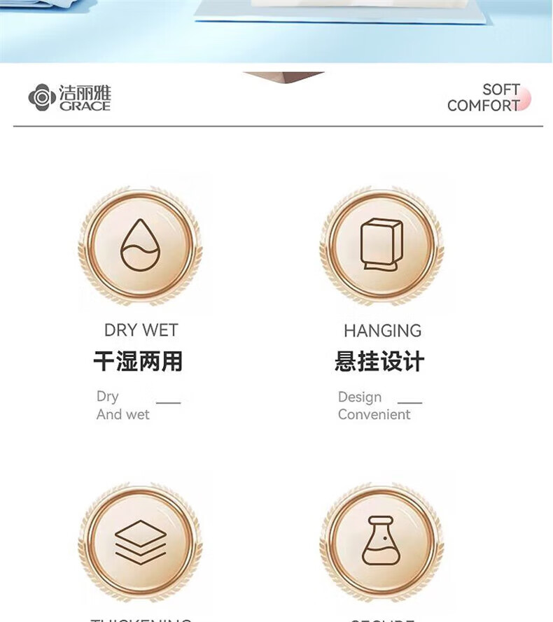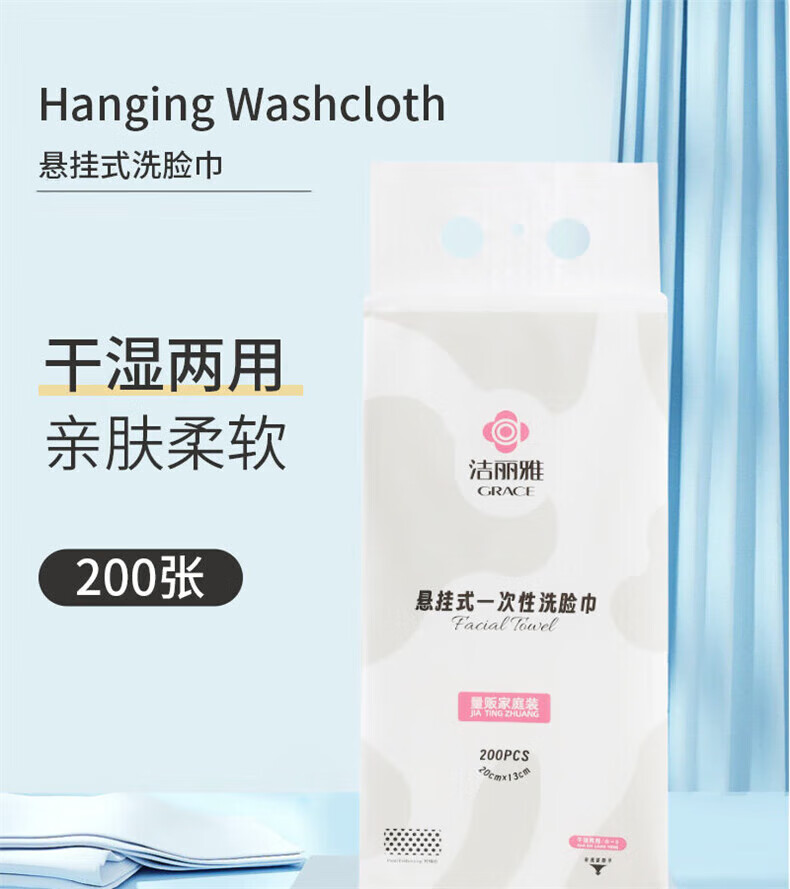 洁丽雅(grace)(Grace)洗脸巾一次性洁面巾悬挂式加大加厚家庭装干湿两用卸妆 2提悬挂抽式【400抽】加厚珍珠纹