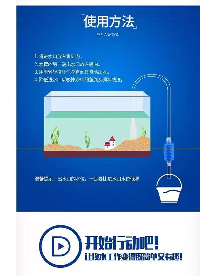 【甄选直发】鱼缸换水器虹吸换水管抽水清洗砂便手动清理洁非吸水 鱼缸换水器-1.5m-灰色-1个