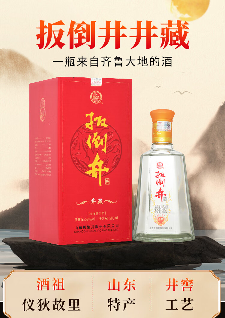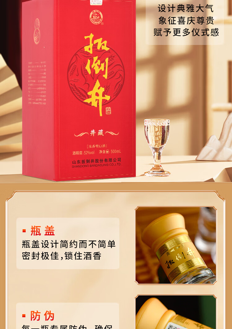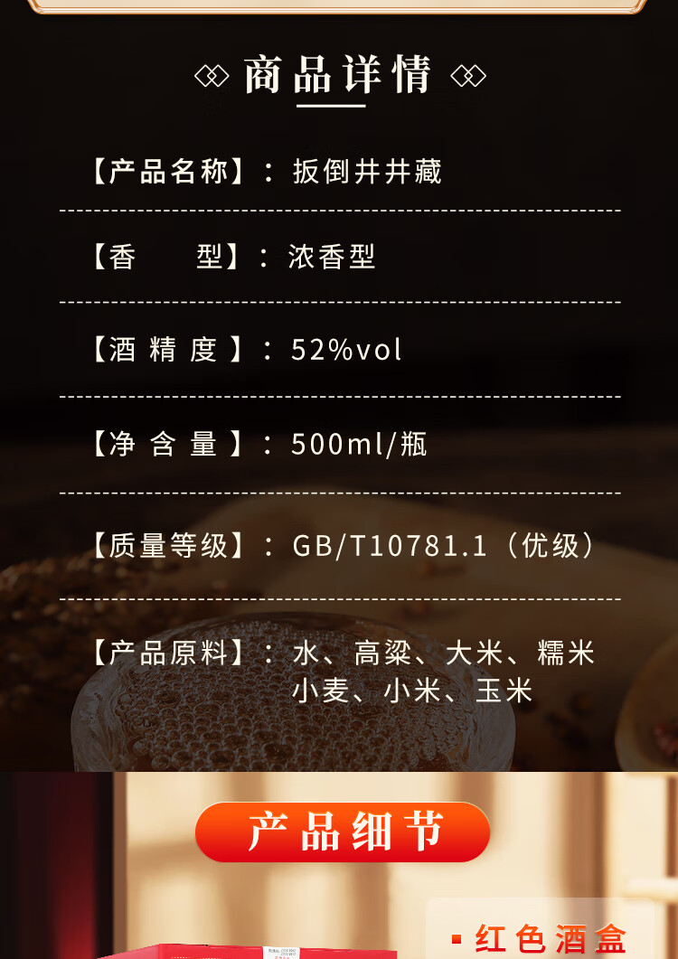 扳倒井 52度白酒 井藏 浓香型 礼盒白酒 纯粮白酒 52度 500mL 6瓶 整箱装