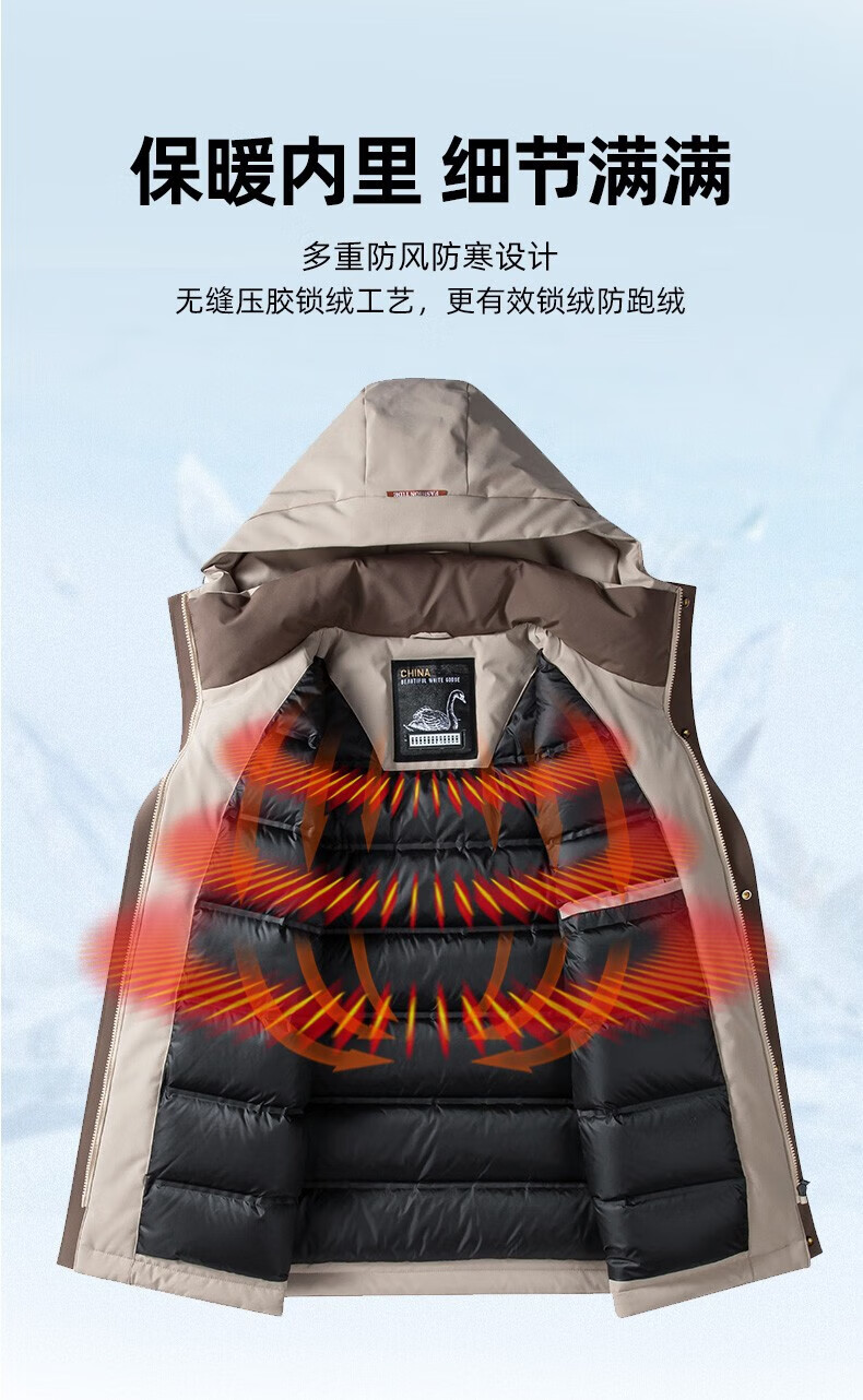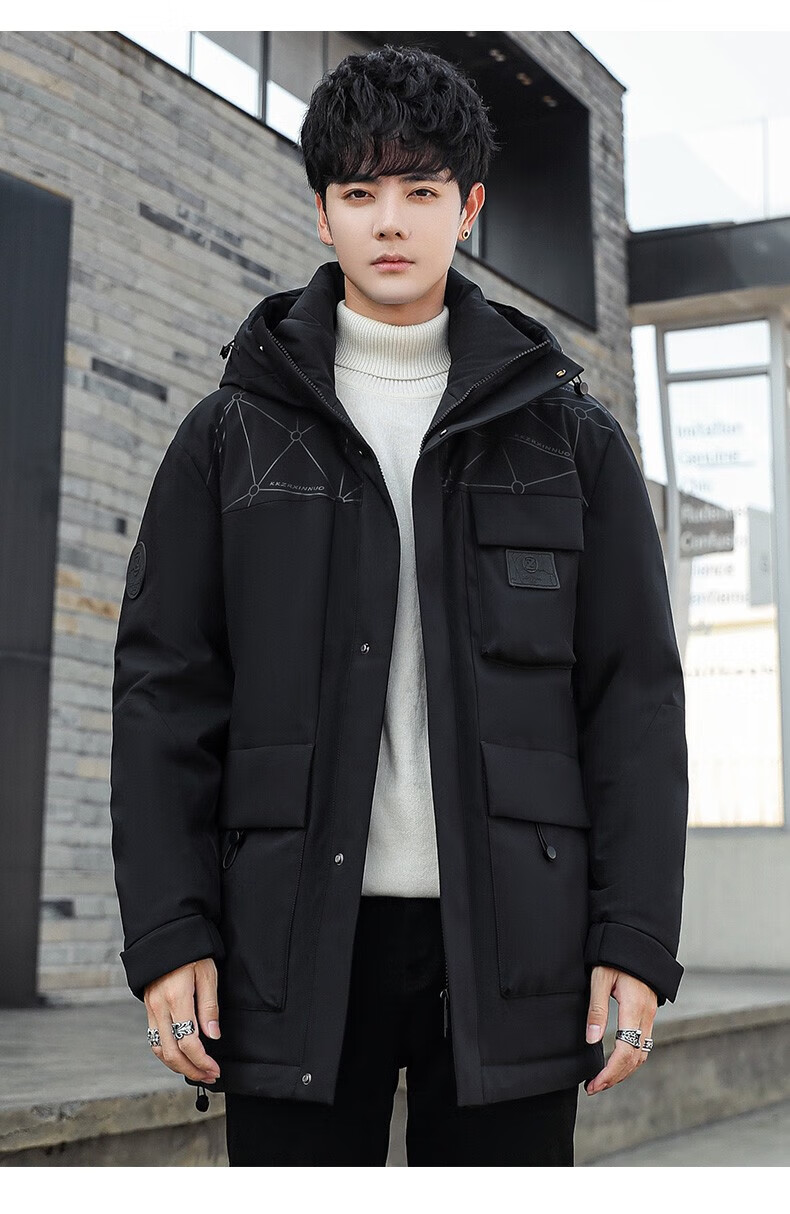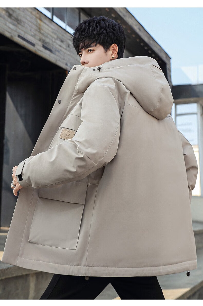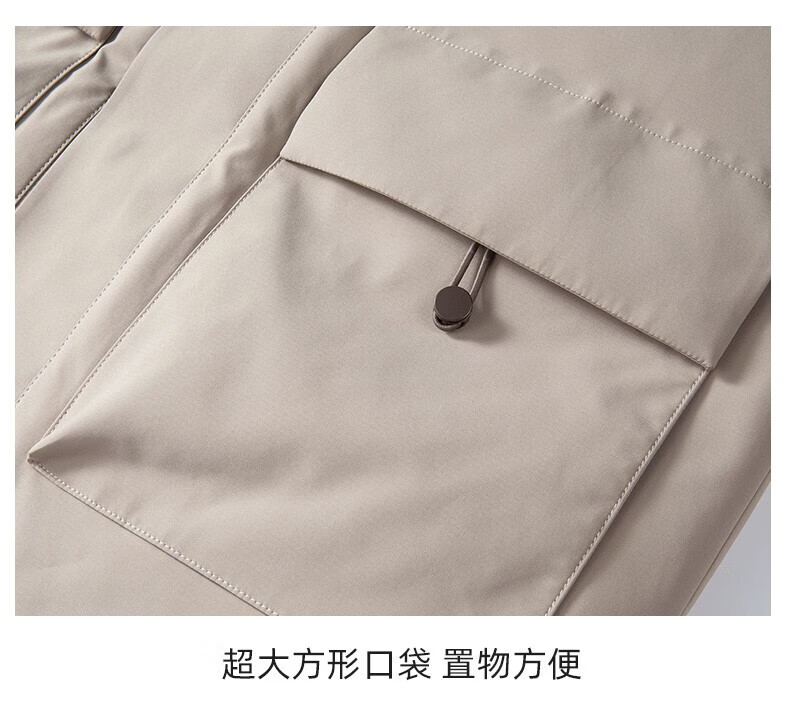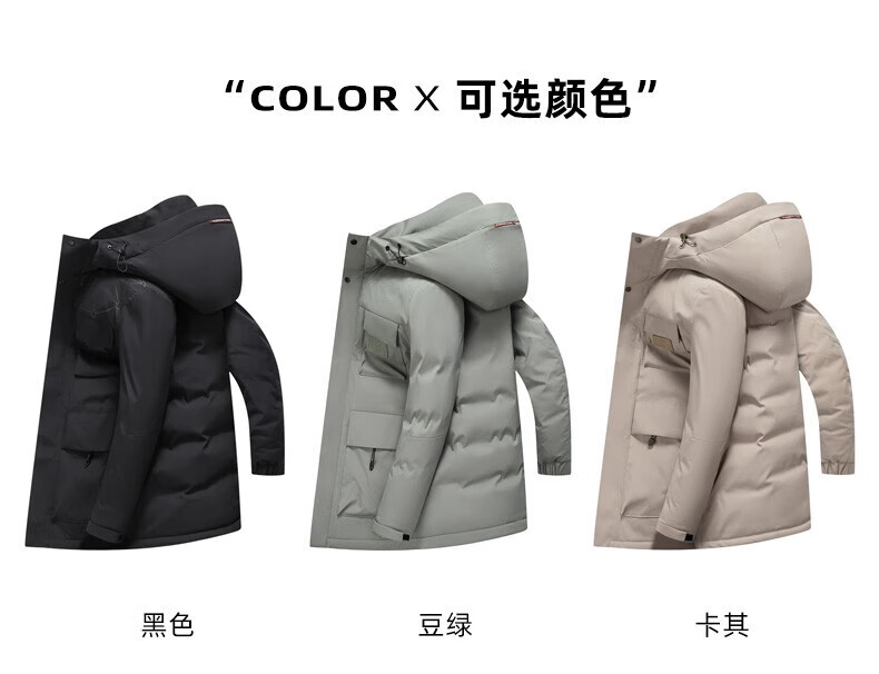鸭鸭(YAYA)鹅绒羽绒服男连帽中长款冬季厚款休闲百搭保暖中青年纯色鹅绒外套 卡其 L 175(建议115-130斤)