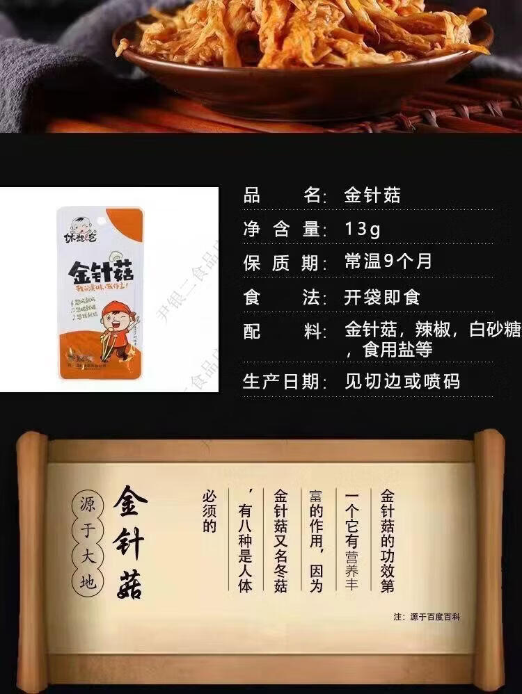 金针菇13g小包装即食下饭菜咸菜网红休闲麻辣零食小吃批发 休想吃金针菇 10包
