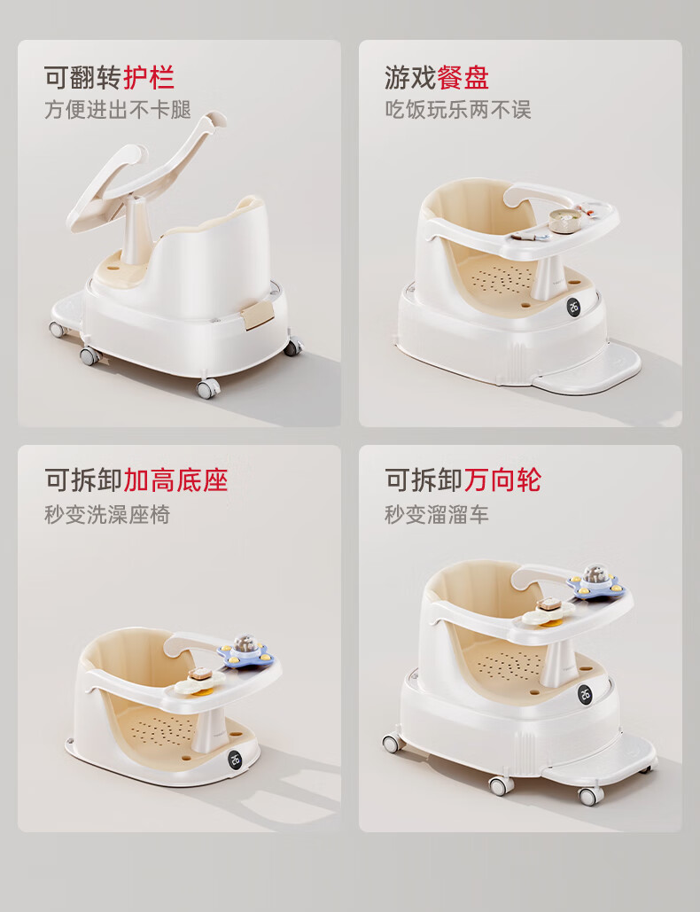 YEESOOM婴儿洗澡坐椅防滑浴凳儿童学坐泡澡神器宝宝洗澡盆坐椅浴桶多功能 全包围豪华款溜溜车【送牵引绳,万向轮,含全部功能】