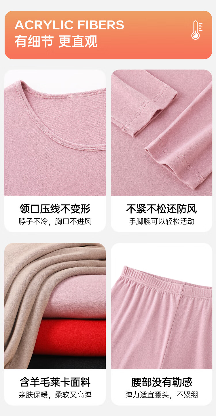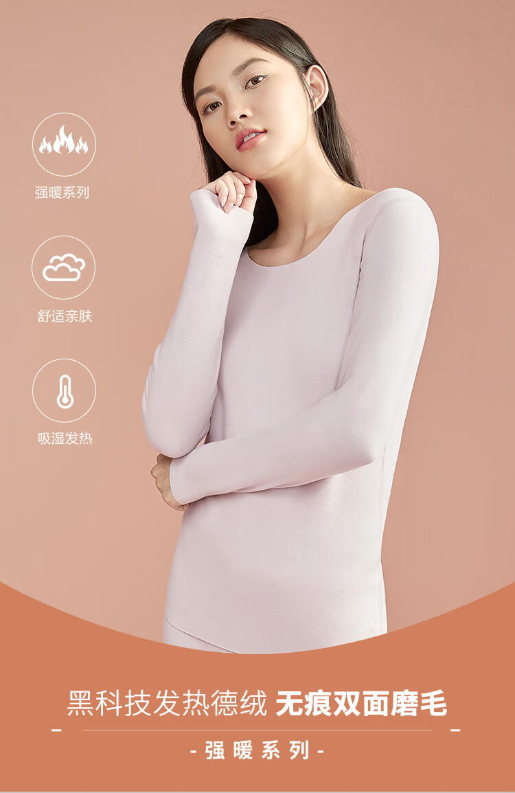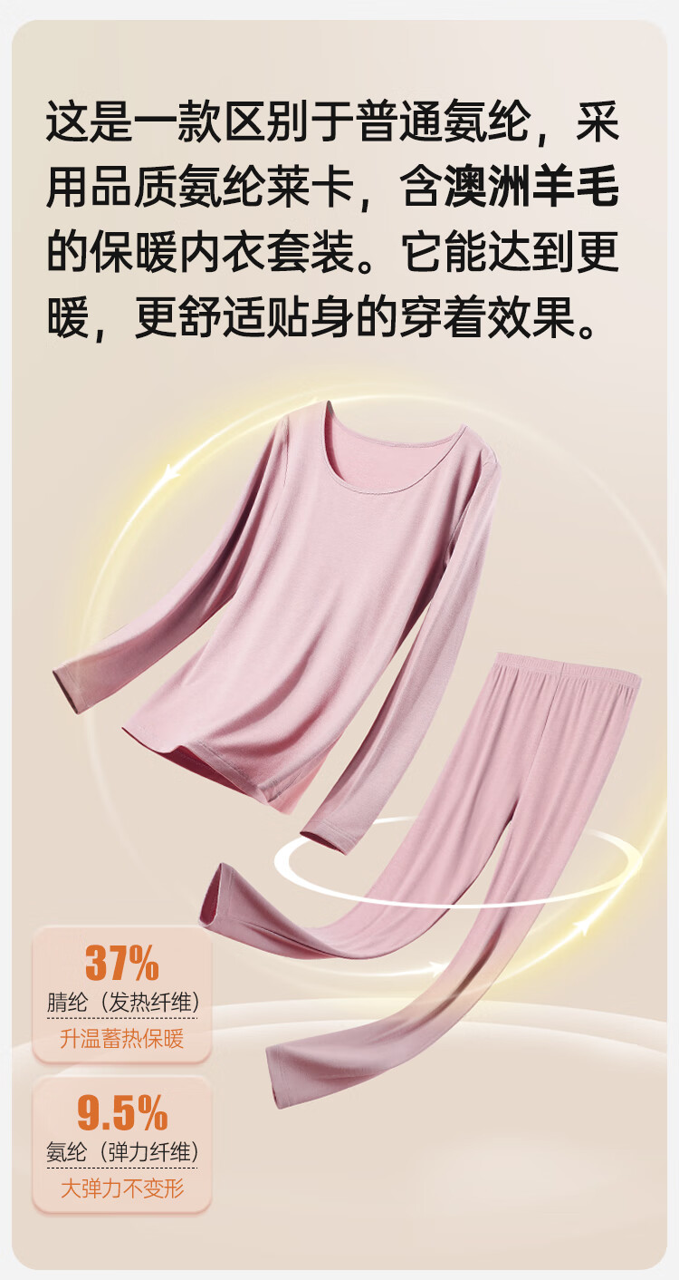 欧迪芬(Ordifen)羊毛德绒拼款男女保暖内衣情侣款秋衣秋裤绒暖莱卡高弹保暖套装 【羊毛保暖】甜藕粉 女款-XW3106 M