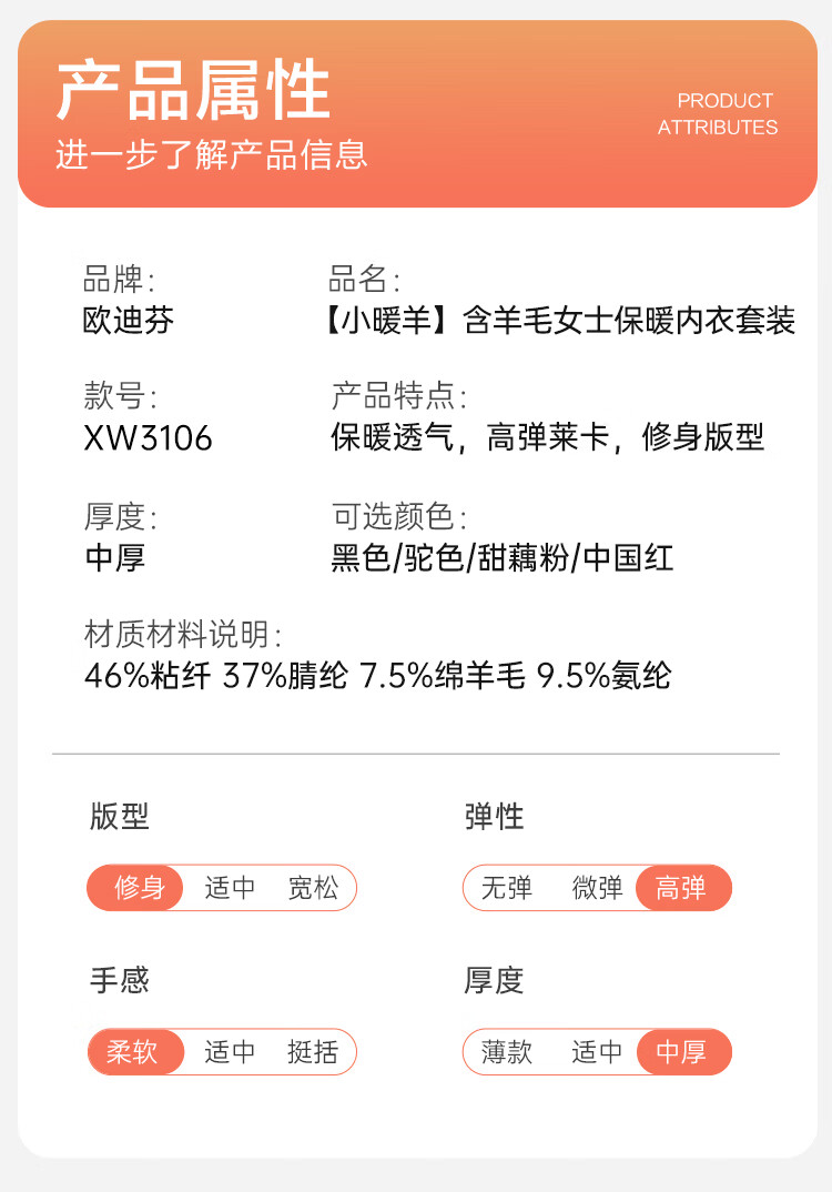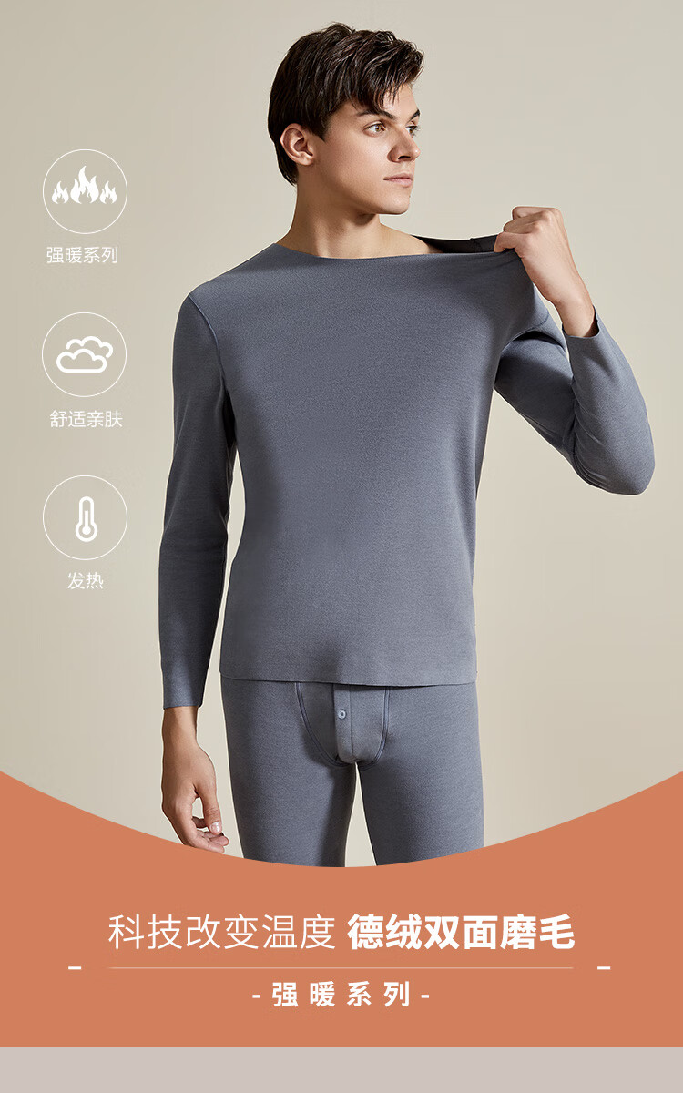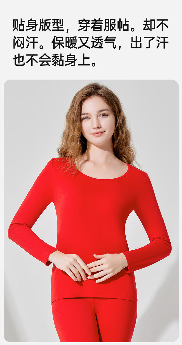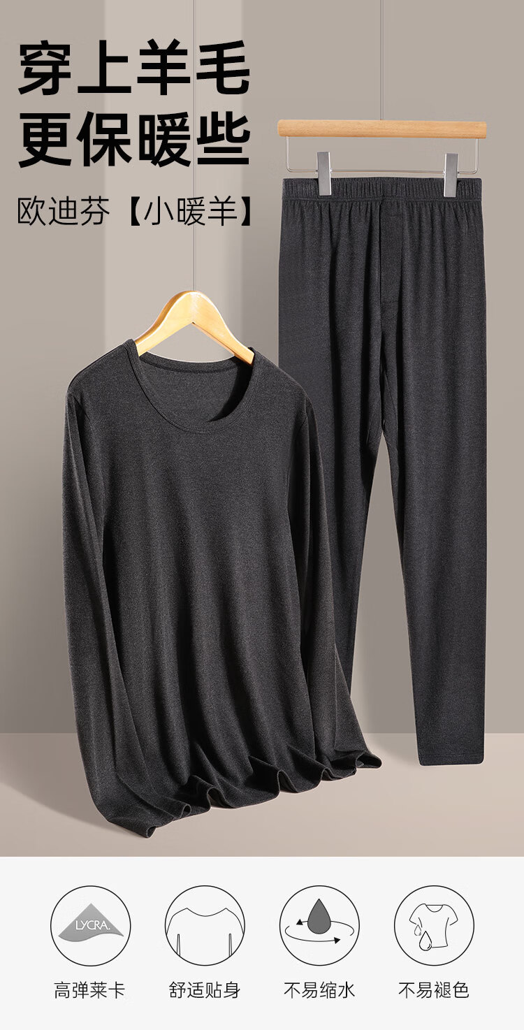 欧迪芬(Ordifen)羊毛德绒拼款男女保暖内衣情侣款秋衣秋裤绒暖莱卡高弹保暖套装 【羊毛保暖】甜藕粉 女款-XW3106 M
