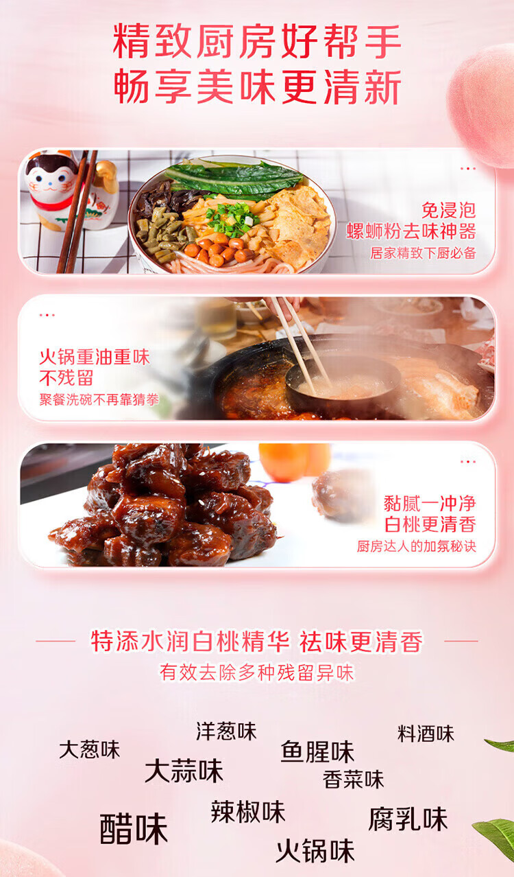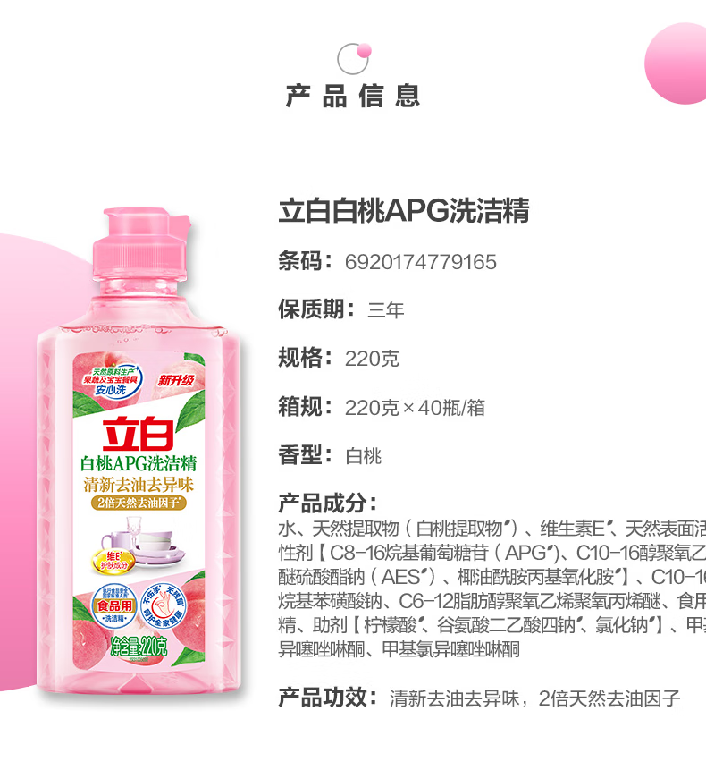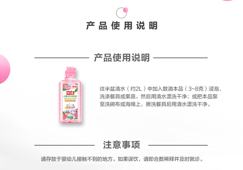 立白洗洁精白桃APG洗碗液宝宝餐具果蔬洗洁剂高效去油不伤手除味家用 【祛油净味】白桃洗洁精220g*3瓶
