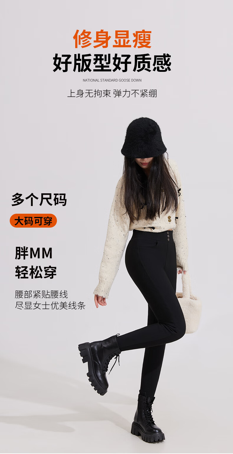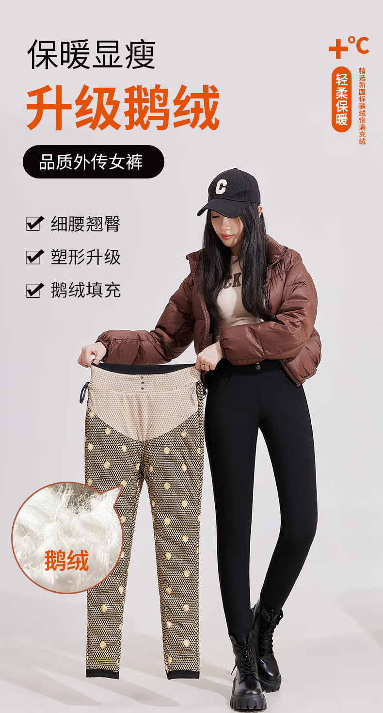 浪莎羽绒裤女外穿冬季新款加绒加厚棉裤东北零下30度保暖鹅绒裤子 黑色 【抗寒零下30度】 L 【建议:95-110斤】