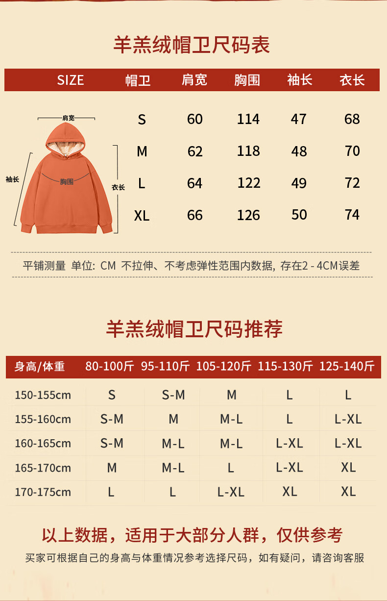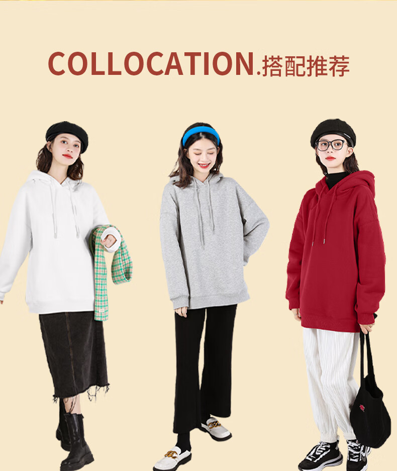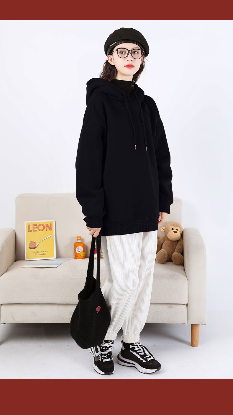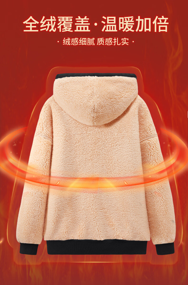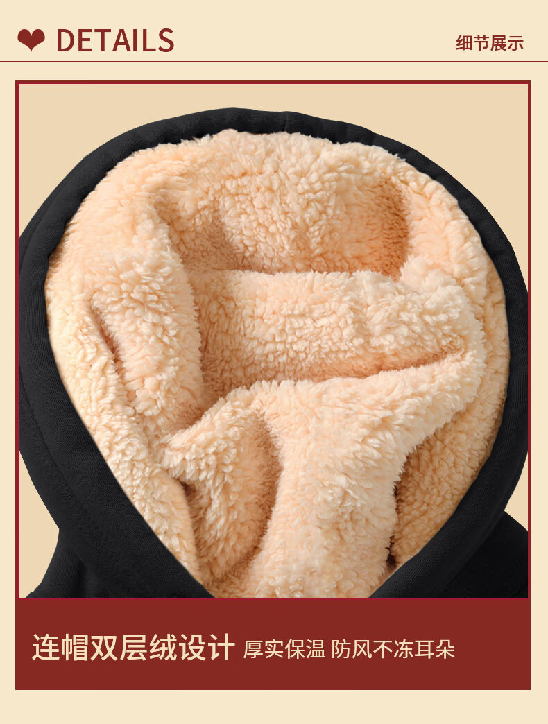 班尼路S&K系列加绒卫衣女装加厚羊羔绒连帽上衣秋冬保暖重磅摇粒绒外套8 杏#纯色 【重磅摇粒绒】 S