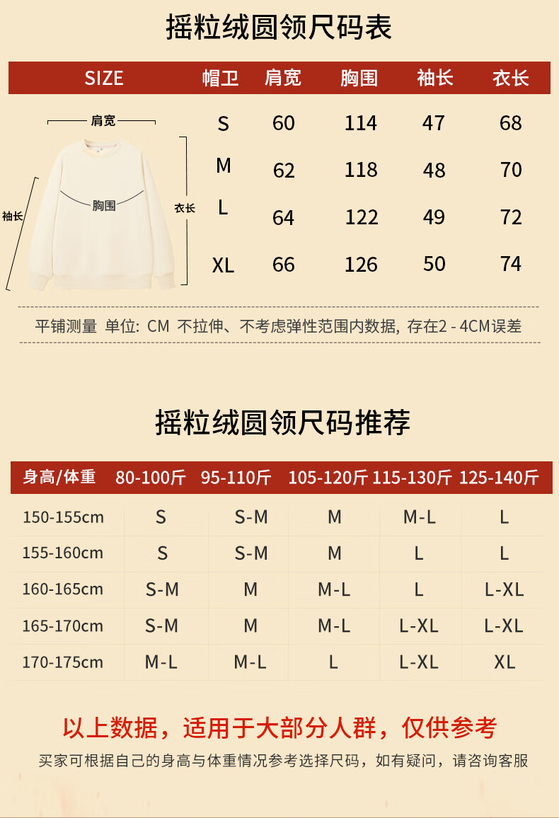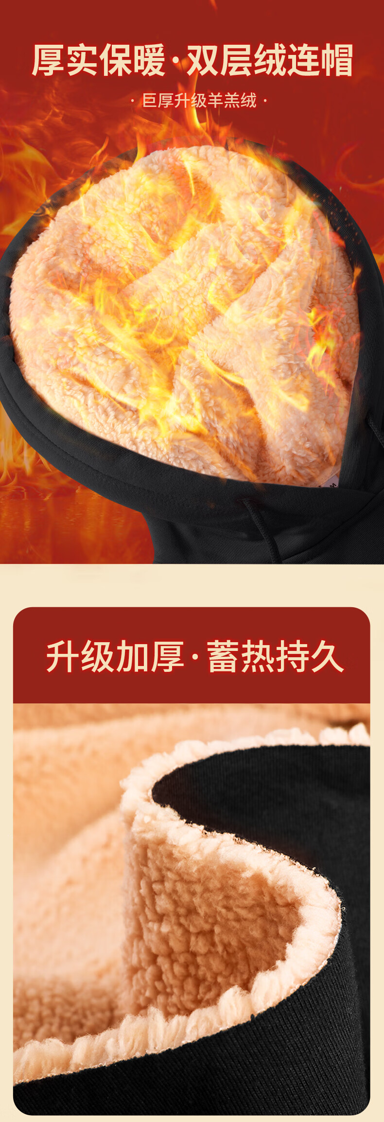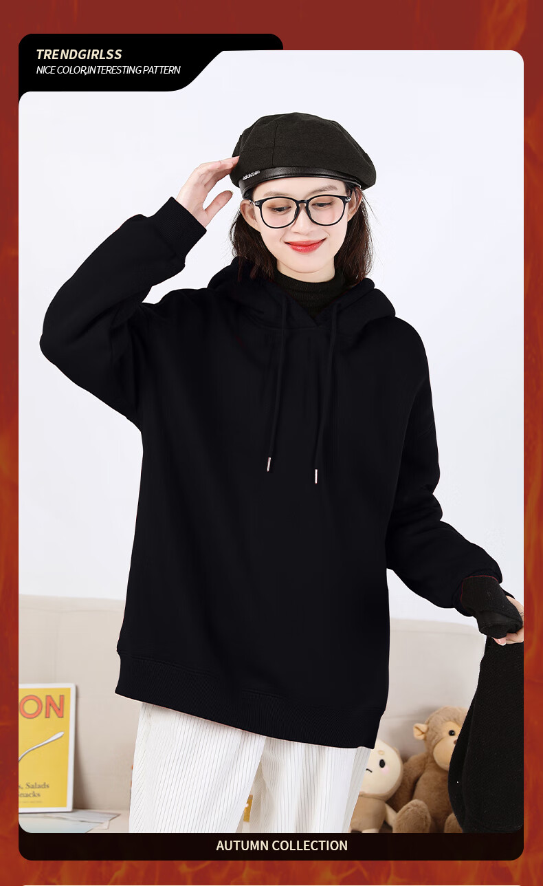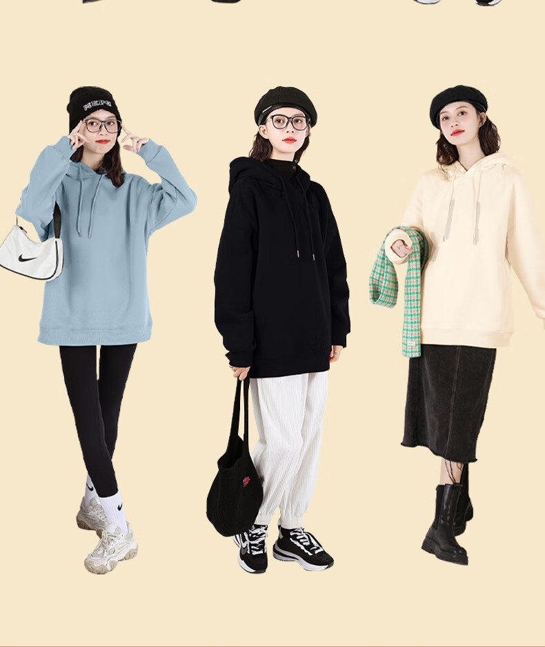 班尼路S&K系列加绒卫衣女装加厚羊羔绒连帽上衣秋冬保暖重磅摇粒绒外套8 杏#纯色 【重磅摇粒绒】 S