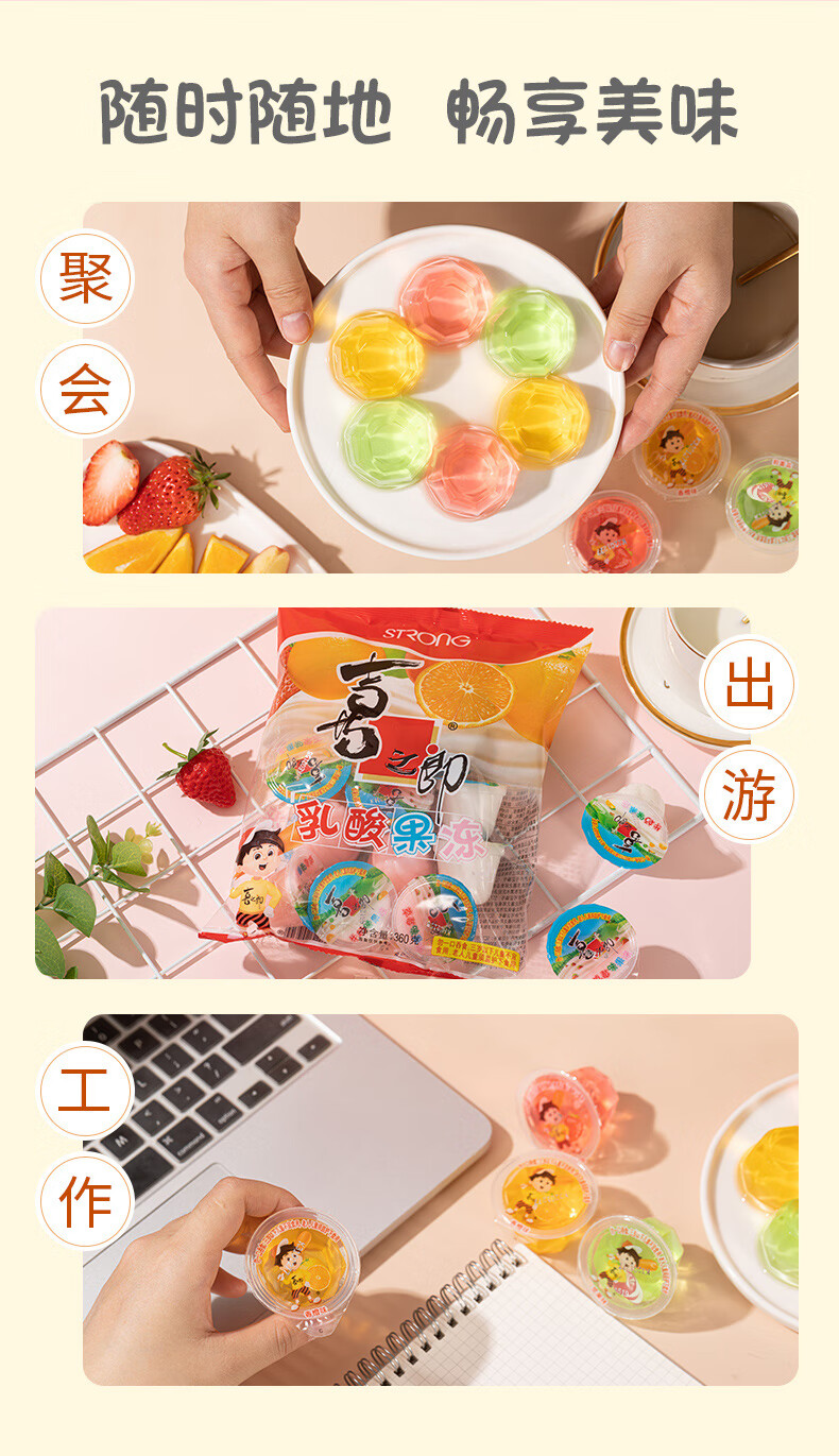 喜之郎 经典果冻什锦乳酸360克*3袋 休闲零食 儿童解馋小零食 下午茶